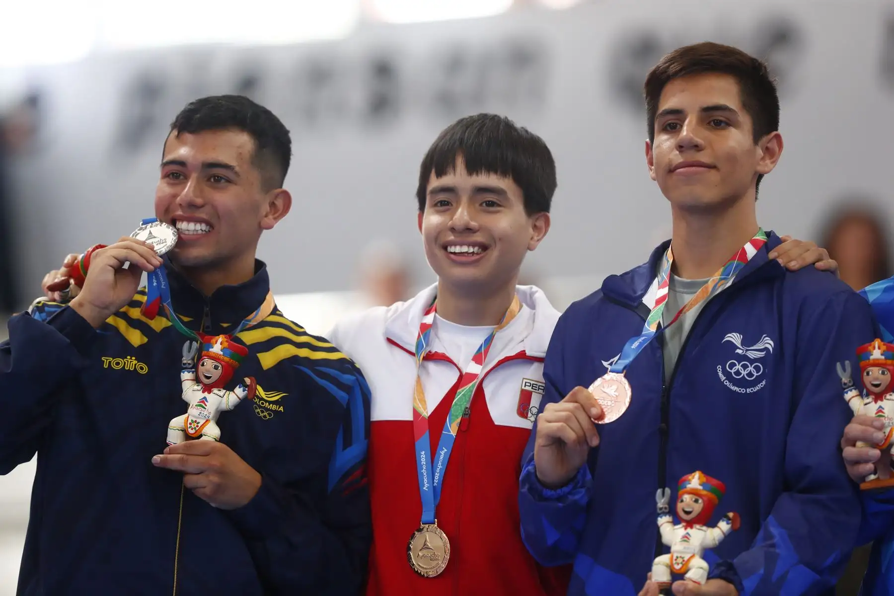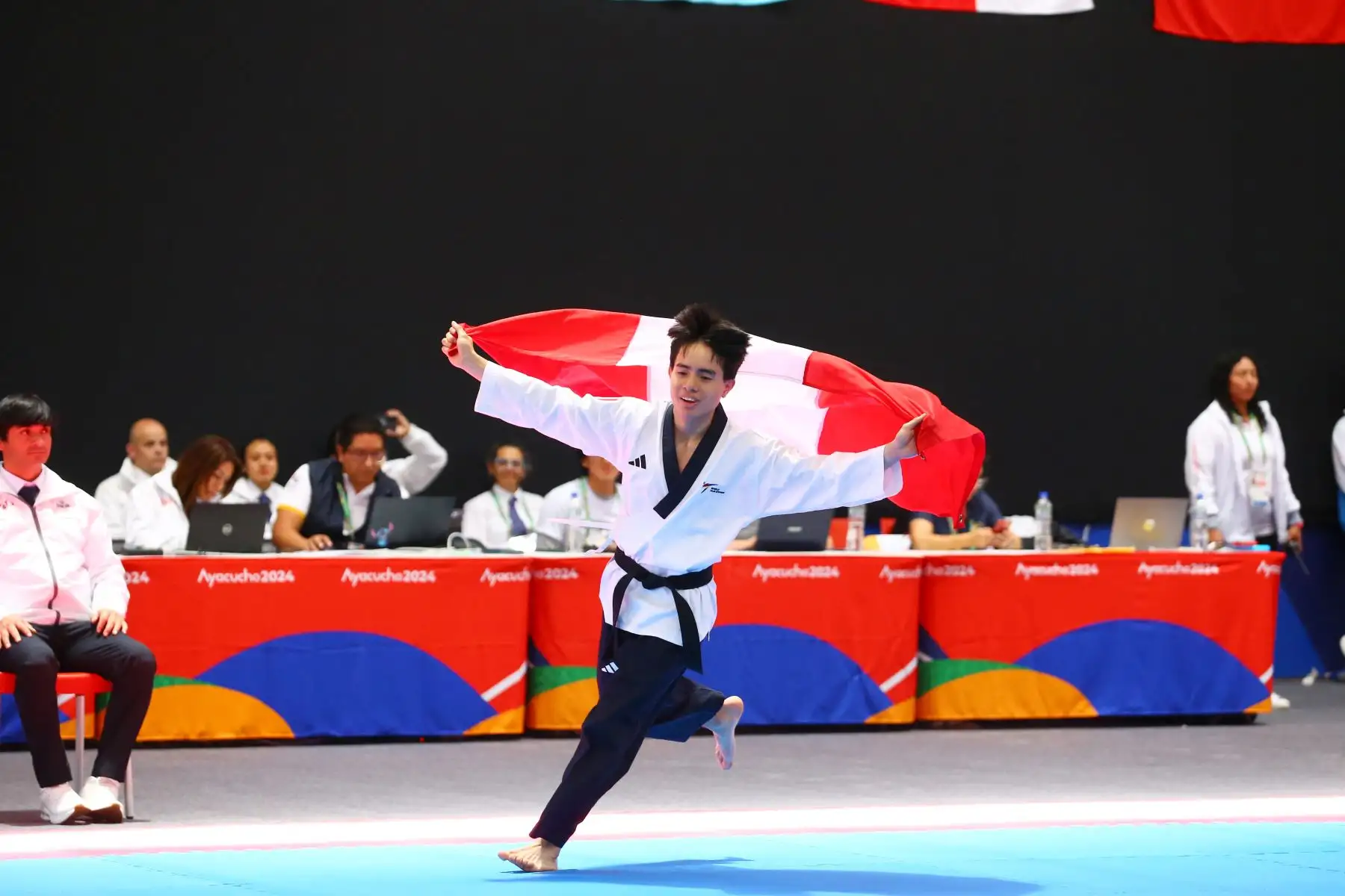01/12/2024 Ceremonia oficial de premiación a los tres primeros lugares en taekwondo categoría freestyle individual masculino de los Juegos Panamericanos Bicentenario Ayacucho 2024 , en la que el representante de Perú, Mateo Sebastián Argomedo Perea, conquistó la medalla de oro. Foto: Eddy Ramos