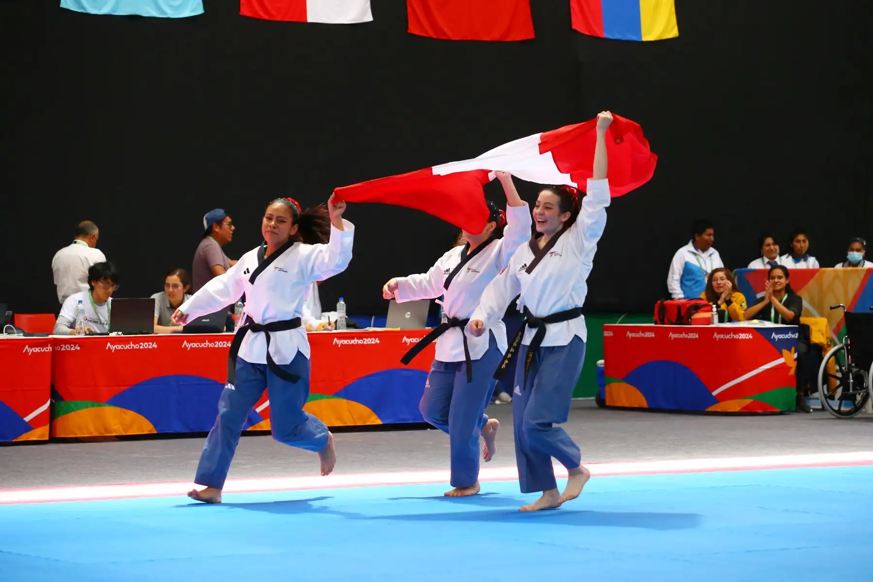 01/12/2024 Participación y ceremonia oficial de premiación en taekwondo categoría team freestyle femenino de los Juegos Panamericanos Bicentenario Ayacucho 2024, en donde las peruanas Carmela Angeli De la Barra, Karla Martínez y Alexandra Pimentel conquistaron la medalla de oro. Foto: ANDINA/Eddy Ramos