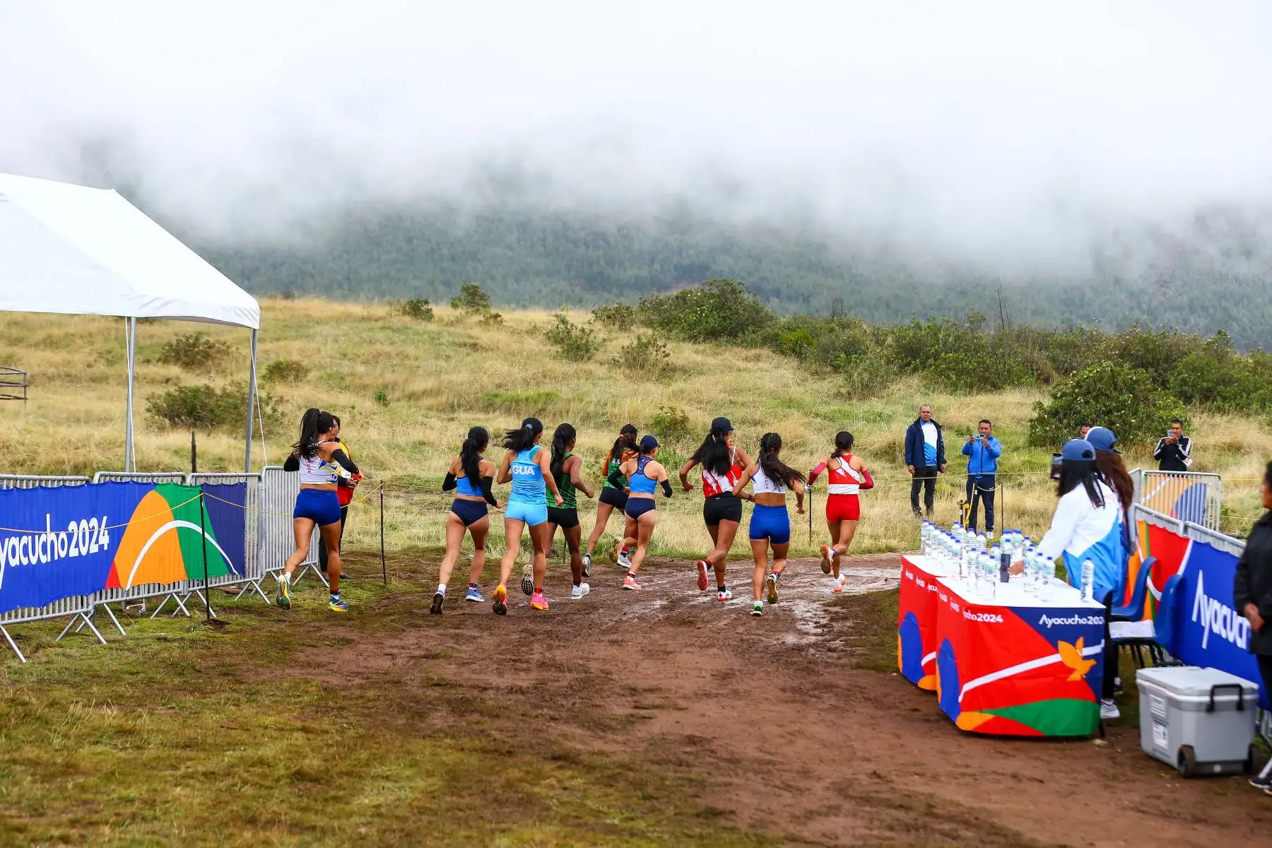 29/11/2024 Las atletas peruanas Gladys Tejeda y Johana de la Cruz participan representando a nuestro país en la carrera cross country de 8km de los Juegos Bolivarianos Bicentenario Ayacucho 2024, desde la emblemática e histórica Pampa de Ayacucho. Foto: ANDINA/Eddy Ramos
