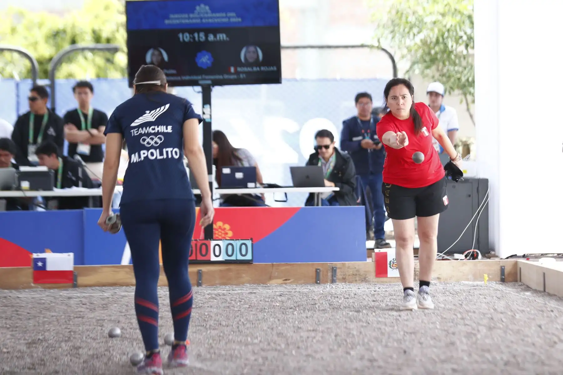 28/11/2024 Se iniciaron las competencias de bochas de los Juegos Bolivarianos Bicentenario Ayacucho 2024, en las que se enfrentaron Rosalba Rojas Raffo de Perú contra Melisa Elizabeth Polito de Chile en la categoría de petanca individual femenina, desde el Complejo Canaan Alto en la ciudad de Ayacucho. Foto: ANDINA/Daniel Bracamonte