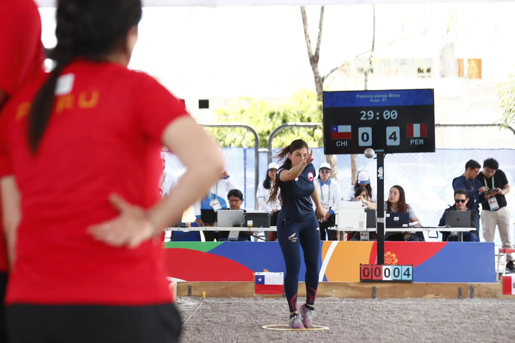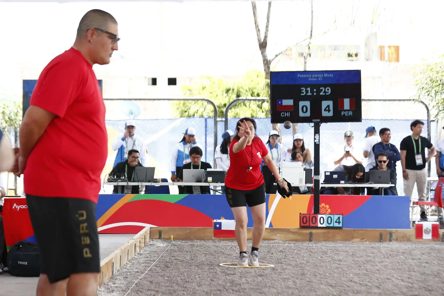 28/11/2024 Se iniciaron las competencias de bochas de los Juegos Bolivarianos Bicentenario Ayacucho 2024, en las que se enfrentaron Erik Américo Bardelli y Rosalba Rojas de Perú contra Renato Alberto Donoso y Melisa Polito de Chile en la categoría de petanca pareja mixta, desde el Complejo Canaan Alto en la ciudad de Ayacucho. Foto: ANDINA/Daniel Bracamonte