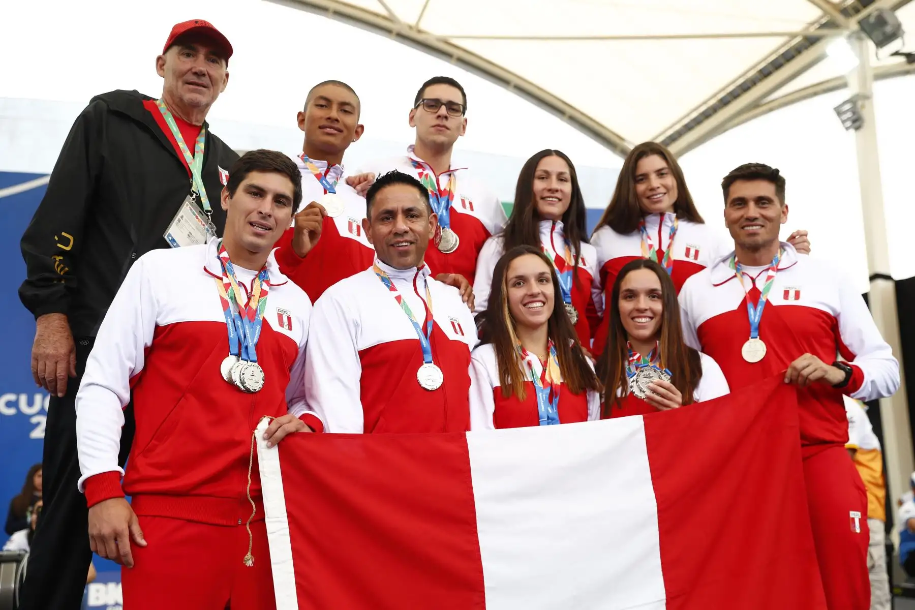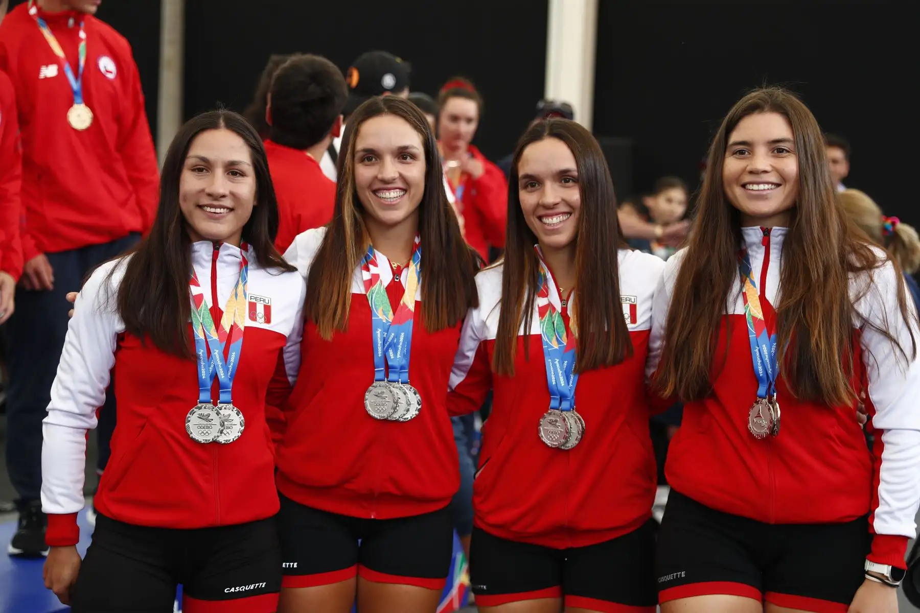 06/12/2024 El equipo peruano de remoergómetro, conformado por las gemelas Alessia y Valeria Palacios, Adriana Sanguineti, Pamela Noya, Vincenzo Giurfa, Renzo Ramírez, Manuel Lama, Manuel del Castillo y Johann Hamann, culminó su participación en los Juegos Bolivarianos Bicentenario Ayacucho 2024 con 3 nuevas medallas de plata en las categorías de cuádruple femenina, cuádruple masculina, y cuádruple mixta. Foto: ANDINA/Daniel Bracamonte
