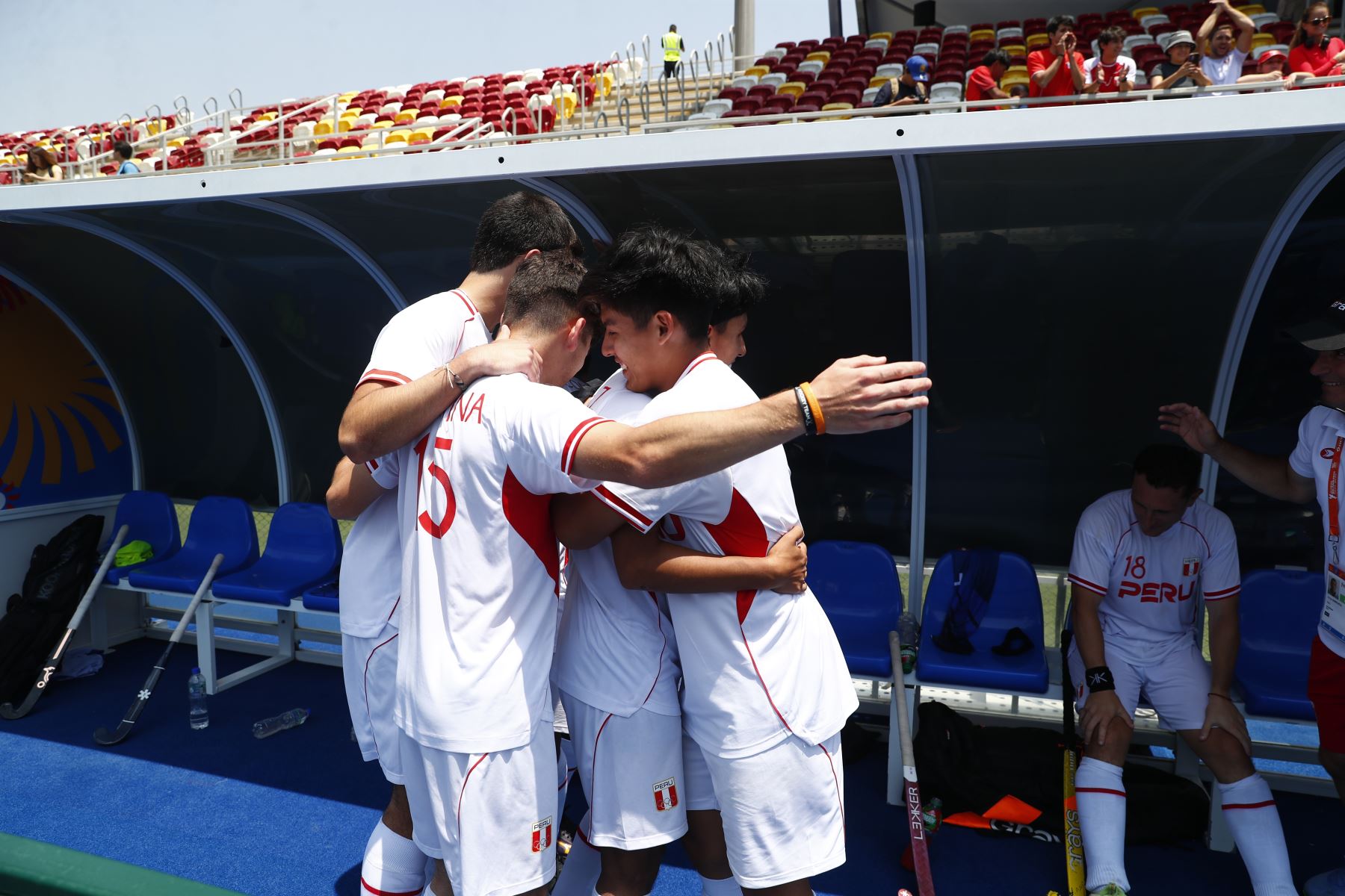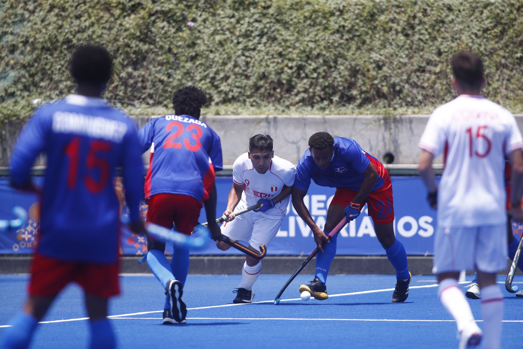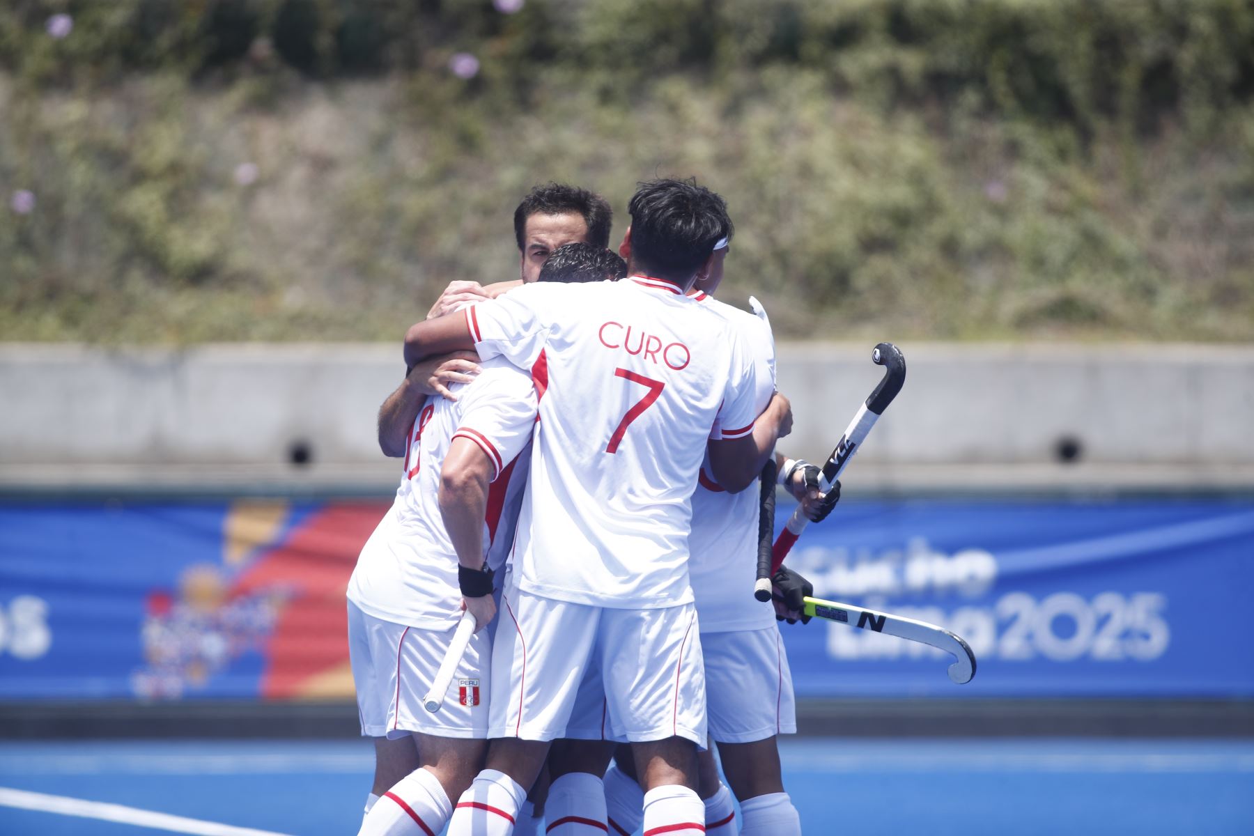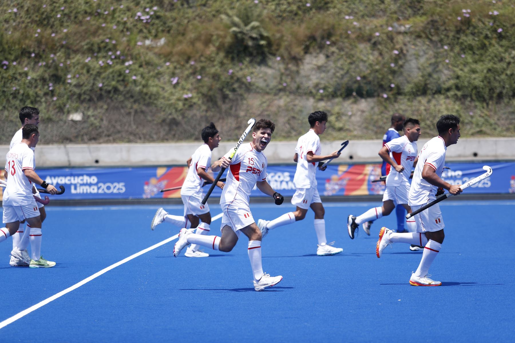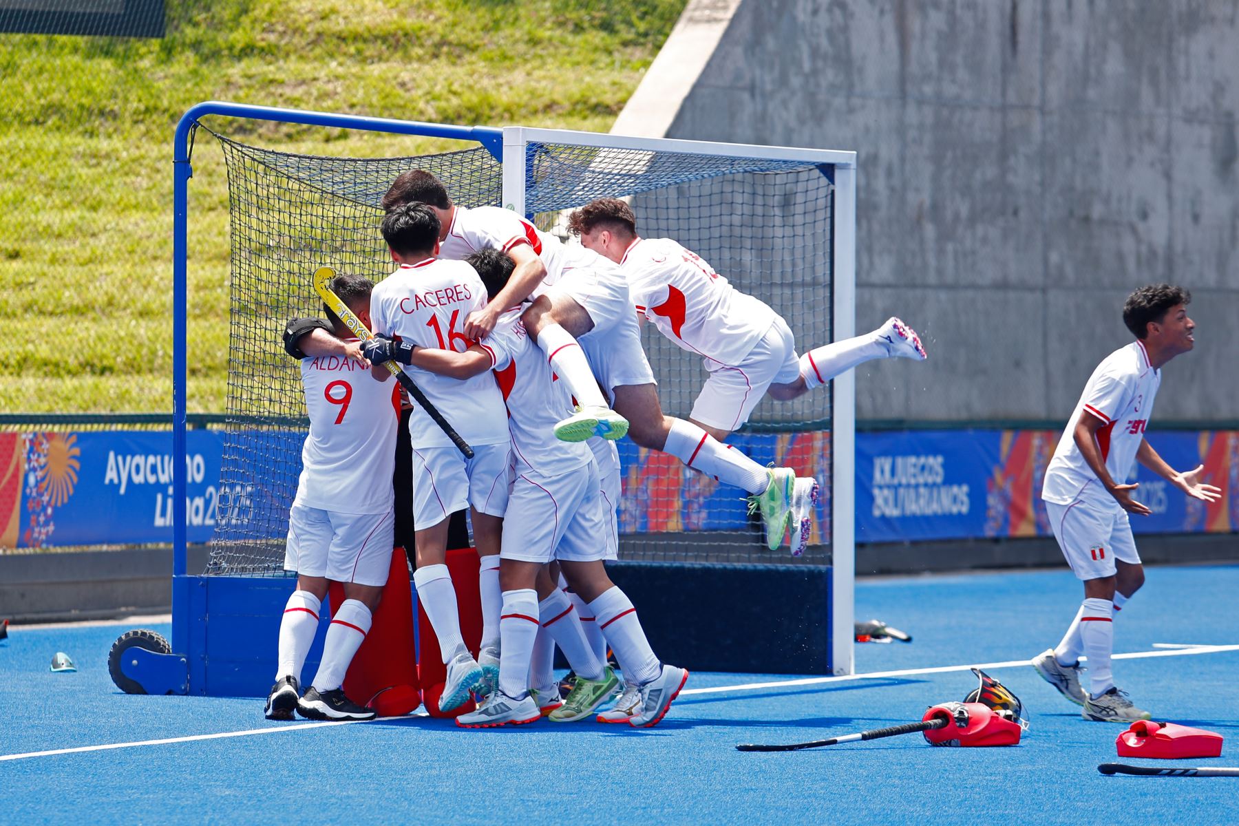 28/11/2025 Tras una tanda de penales, luego de empatar 3-3, la selección de hockey de Perú venció a la de República Dominicana por la mínima diferencia en la final por la medalla de Bronce de la competencia de Hockey categoría Equipo Masculino en los XX Juegos Bolivarianos Ayacucho - Lima 2025, desde el complejo deportivo Andrés Avelino Cáceres de Villa María del Triunfo. Foto: ANDINA/Daniel Bracamonte