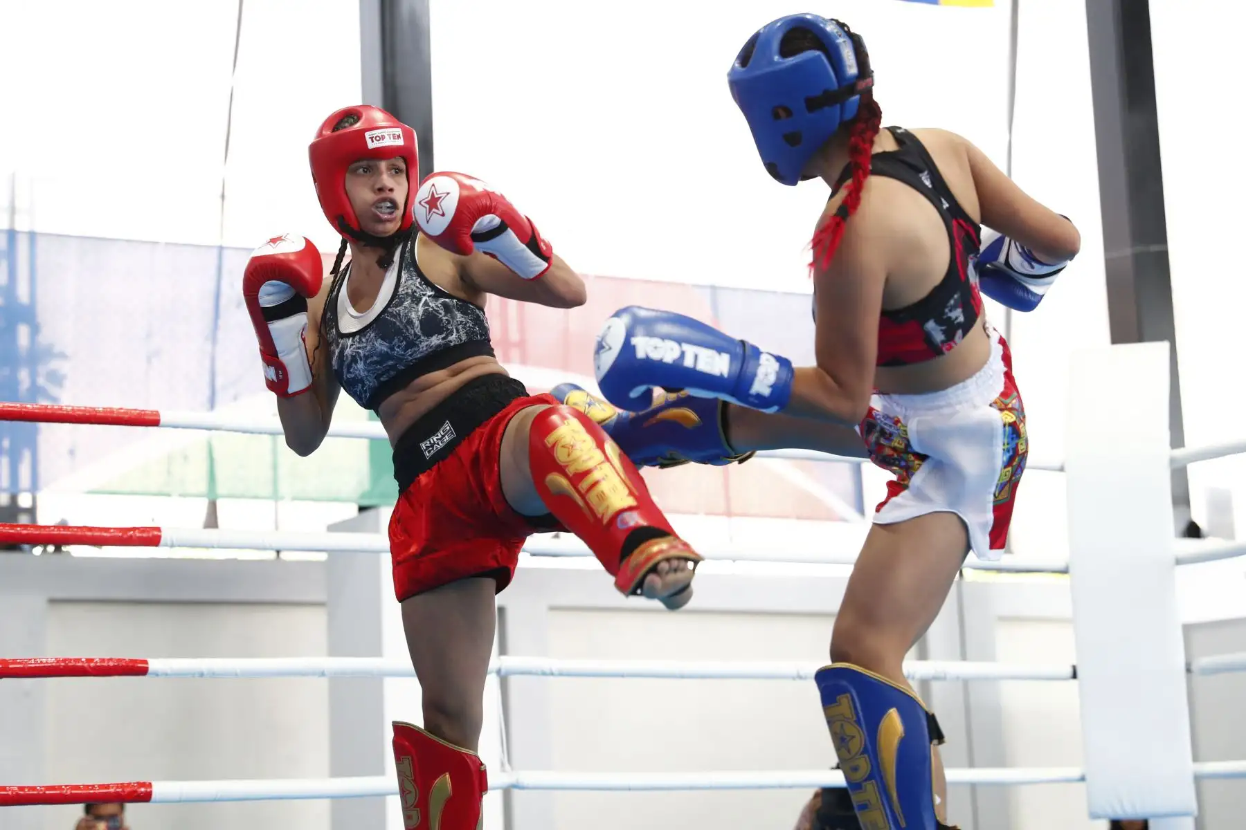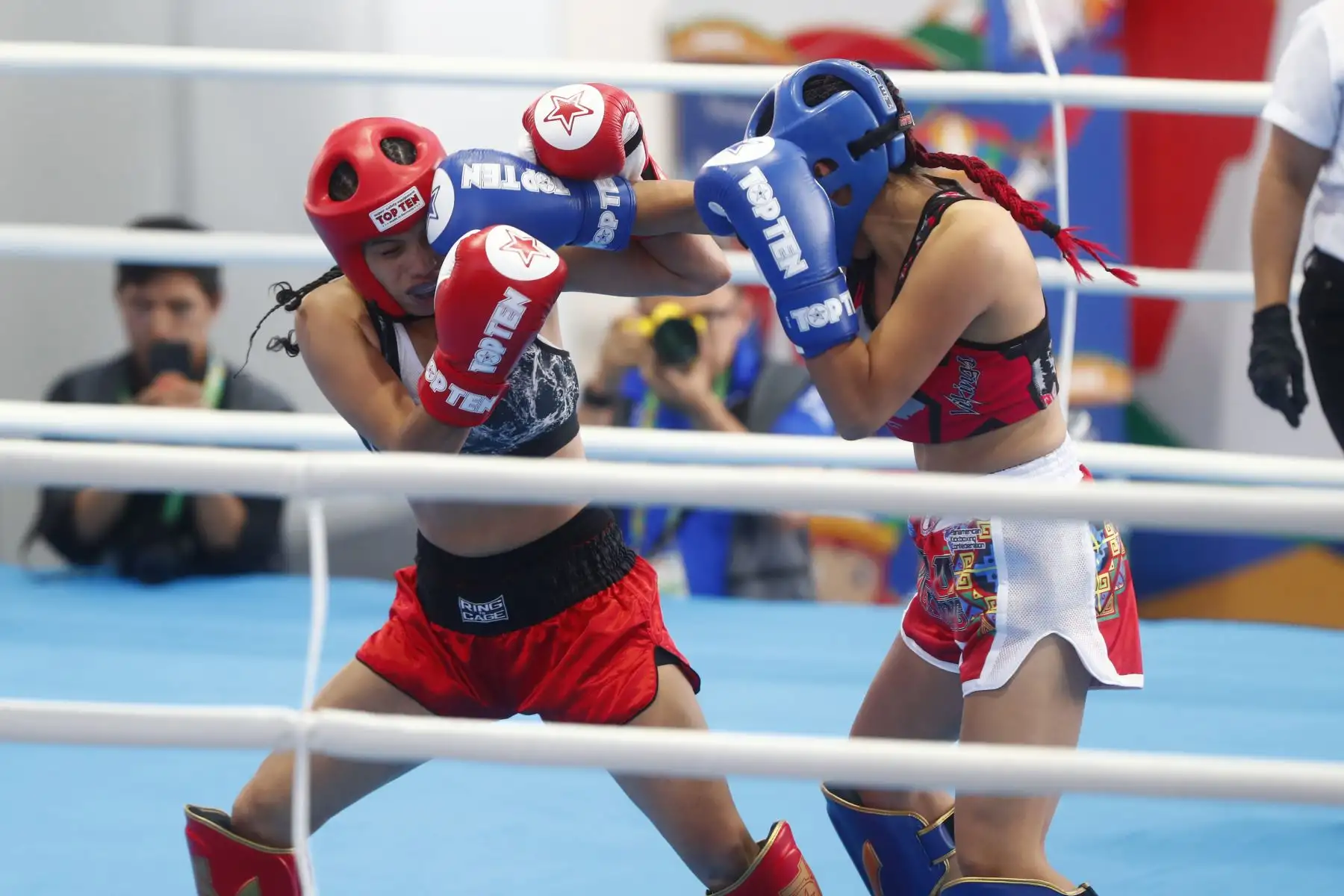 05/12/2024 Perú debutó en el torneo de kickboxing de los Juegos Bolivarianos Bicentenario Ayacucho 2024, que se realizó en el colegio Nuestra Señora de las Mercedes, en donde nuestra compatriota Nieves Ramírez Lara se enfrentó a la representante de El Salvador, Yasmín Henríquez Aguiluz, en la categoría 52kg femenina. Foto: ANDINA/Daniel Bracamonte