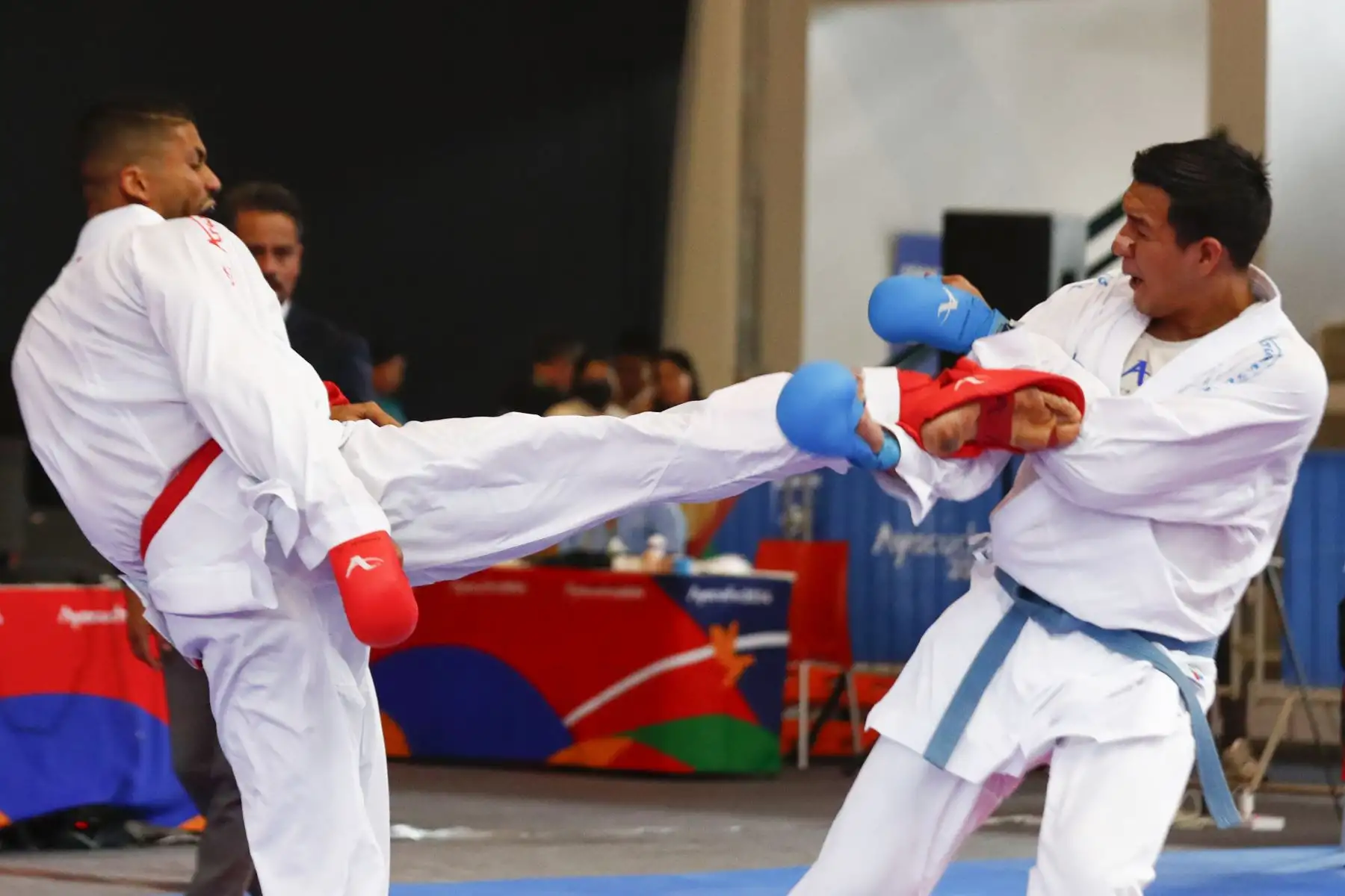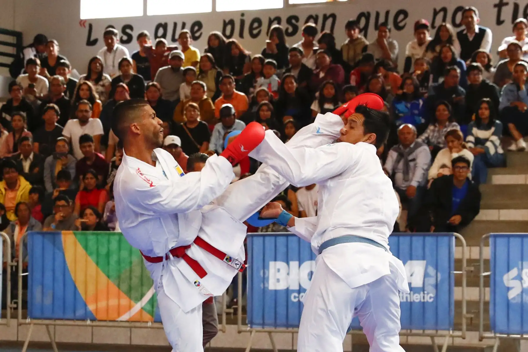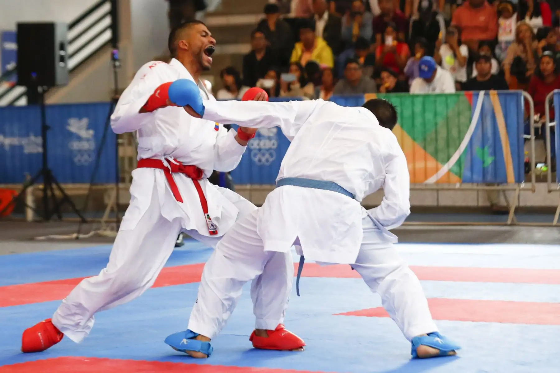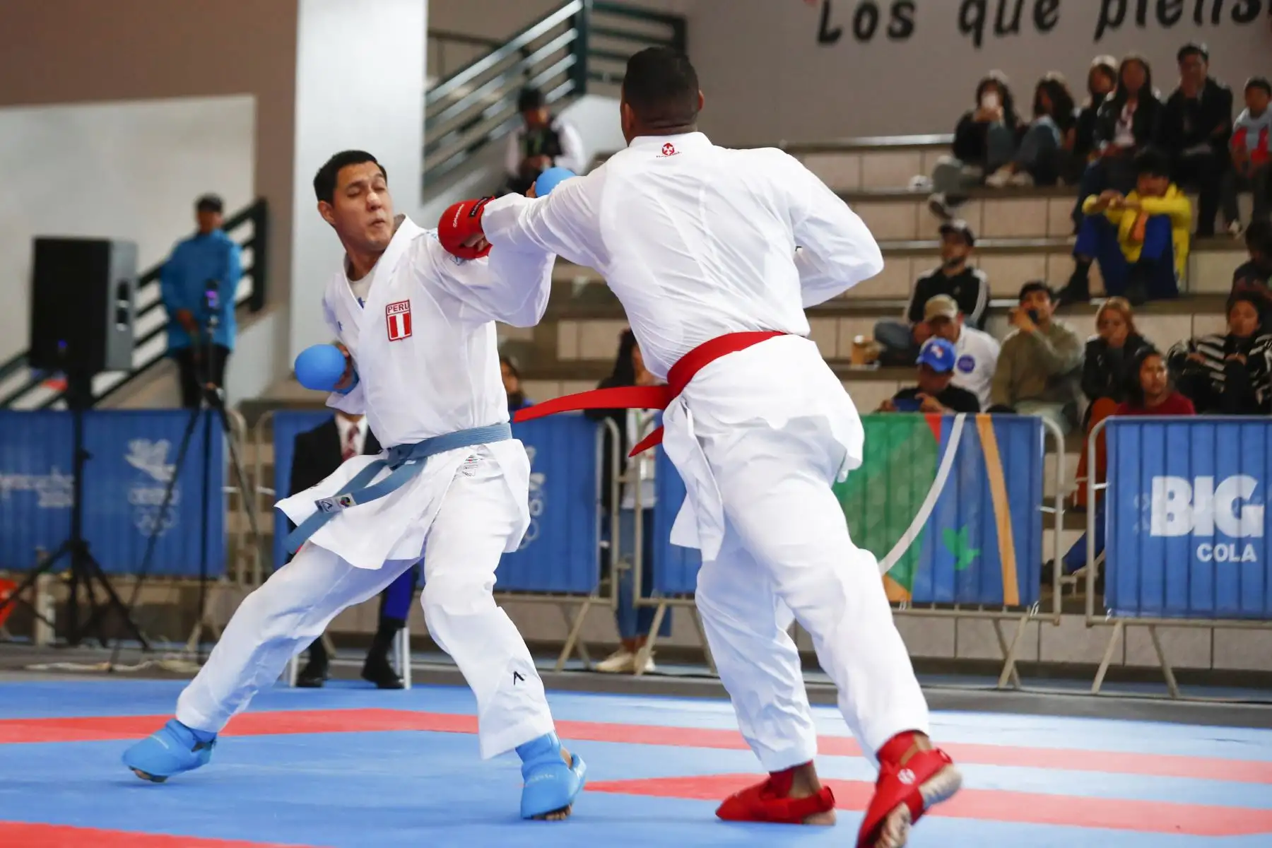 07/12/2024 El peruano César Rojas Valdez participó en la competencia de karate de los Juegos Bolivarianos Bicentenario Ayacucho 2024, en la categoría 75kg masculina, en donde se enfrentó a los representantes de Panamá, Chile y Colombia, desde el coliseo del colegio Mariscal Cáceres de Huamanga el sábado 7 de diciembre. Foto: ANDINA/Daniel Bracamonte