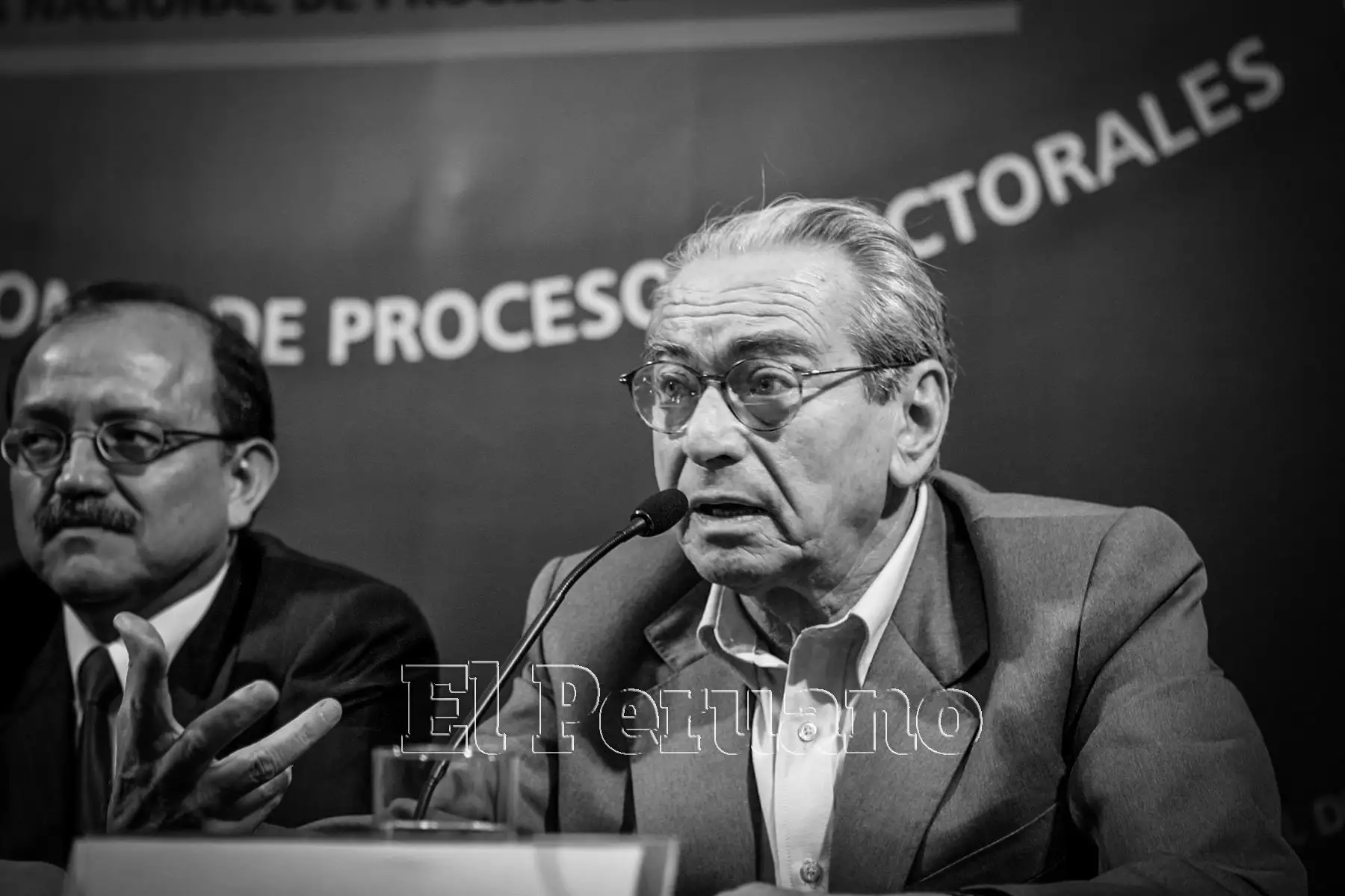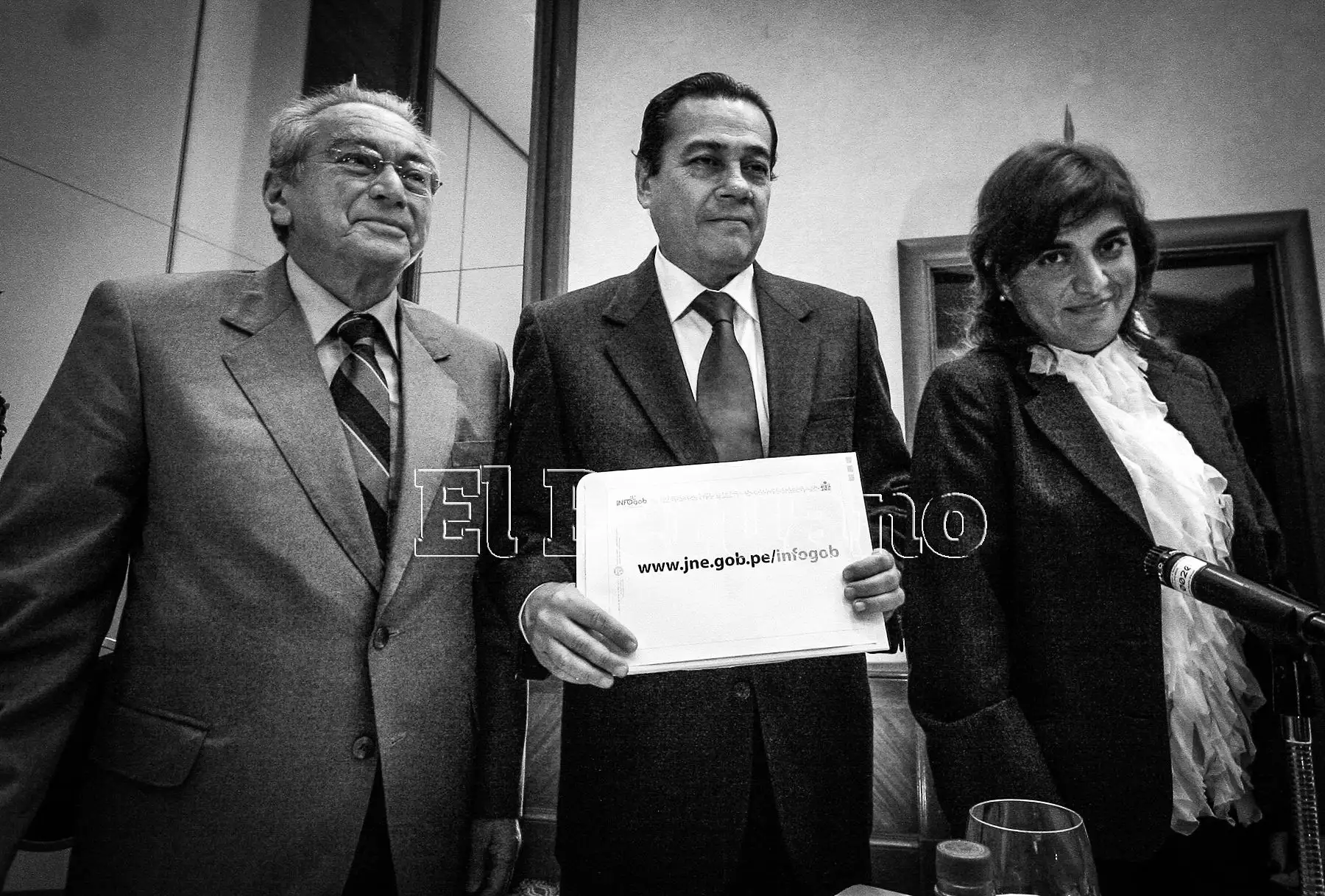 05/04/2019 Lima - 22 octubre 2008 / El sociólogo Julio Cotler y Enrique Mendoza, presidente del Jurado Nacional en el lanzamiento de la página web INFOGOB.