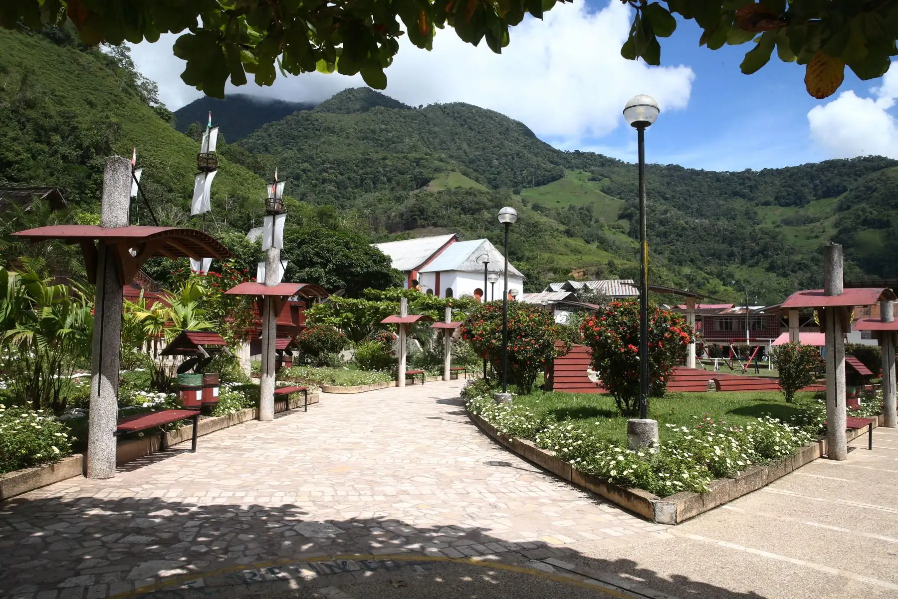 17/11/2021 Como parte de su reactivación económica y luego de obtener el sello Safe Travels, las regiones de Junín y Pasco esperan a los visitantes para que disfruten de su gran biodiversidad y riqueza cultural. En la imagen Plaza de Pozuzo.