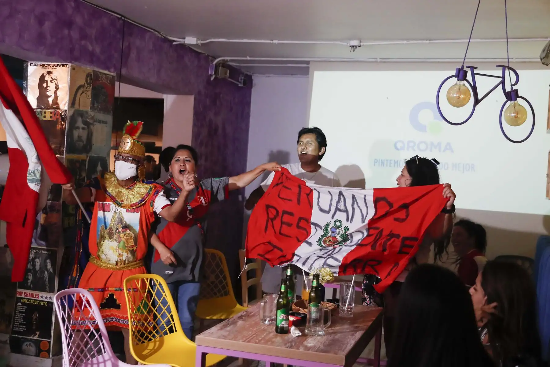 Hinchas de la blanquiroja celebraron el triunfo frente e Colombia, en el pasaje San Ramón de Miraflores. Foto: ANDINA/Renato Pajuelo