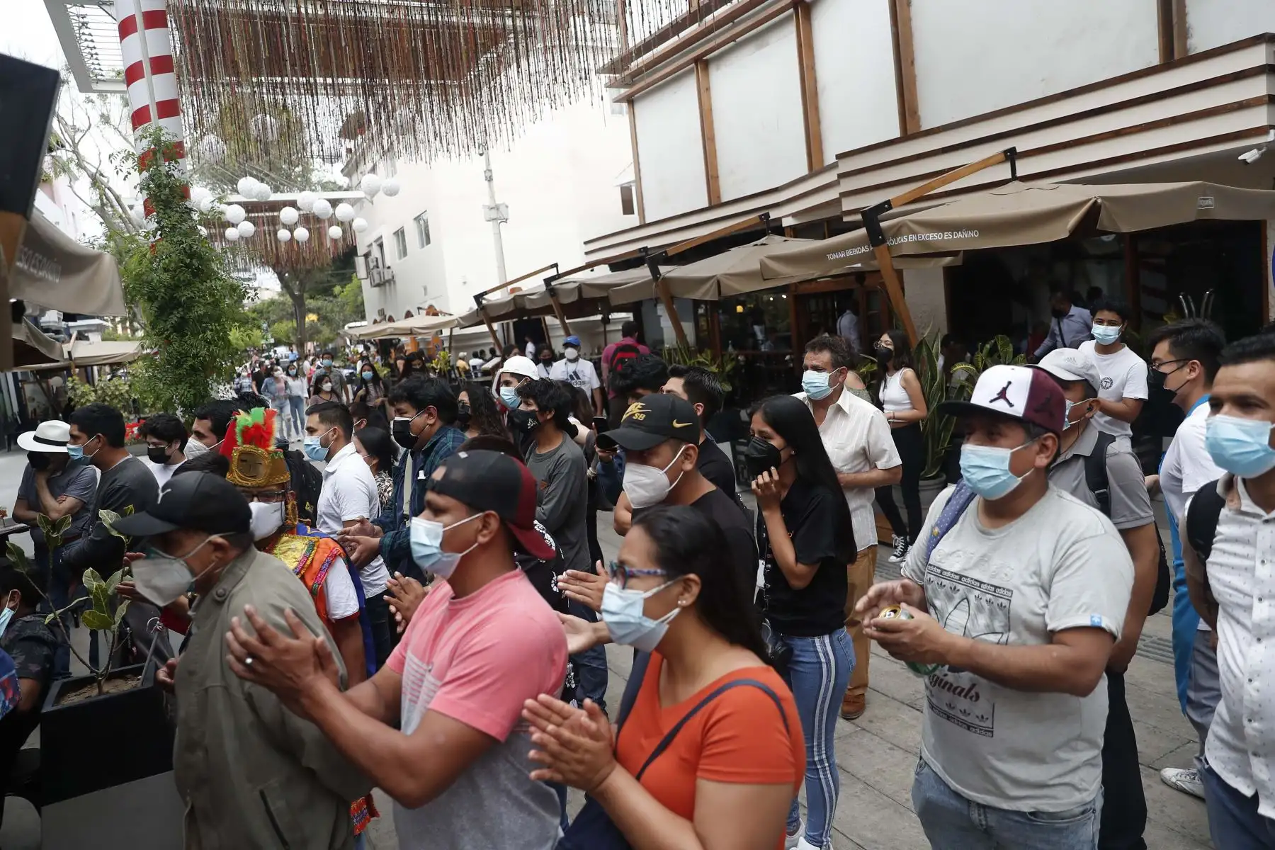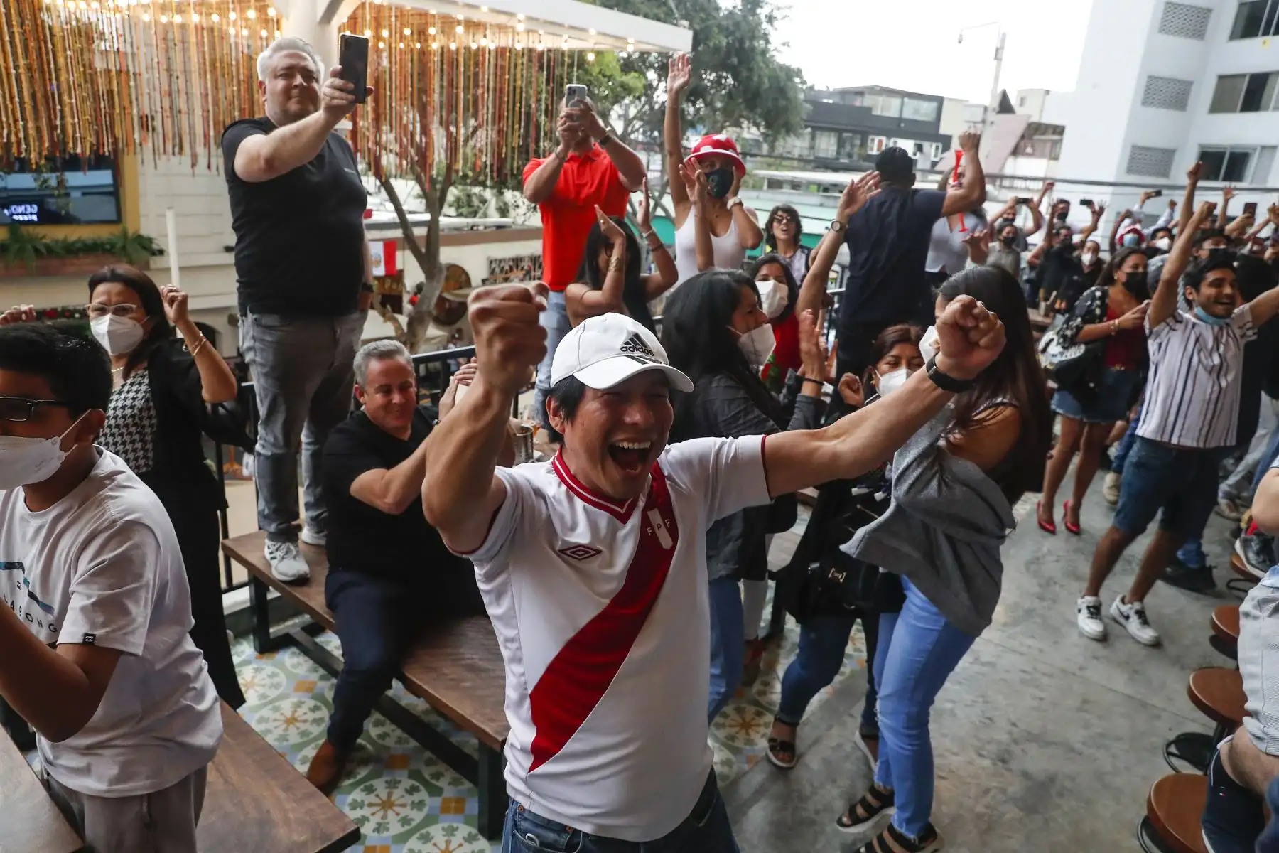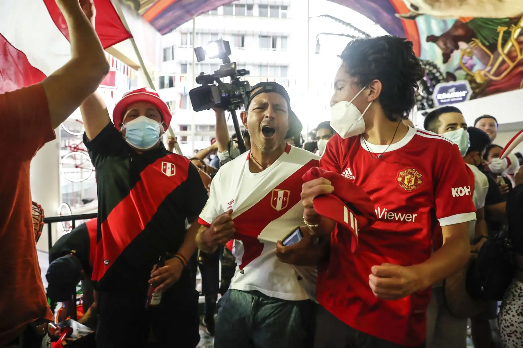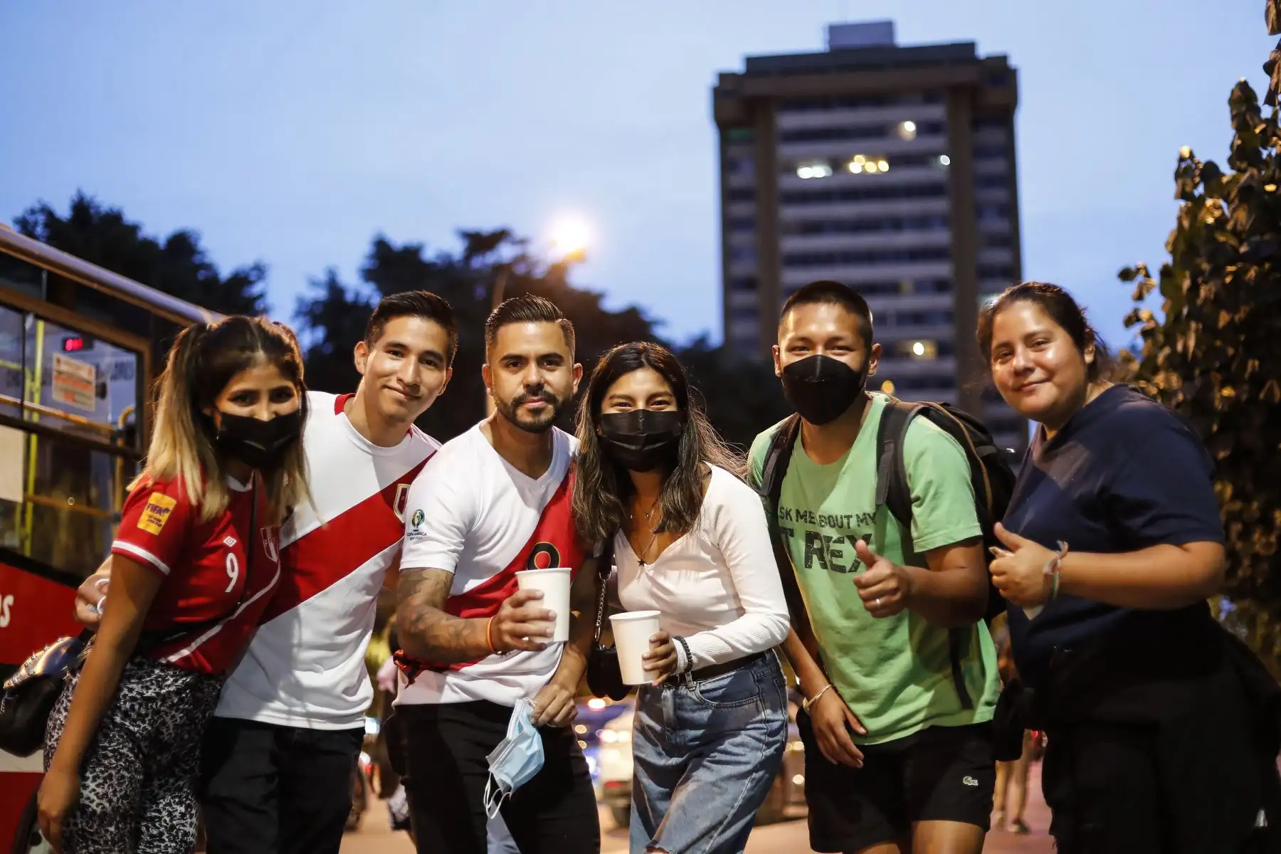 28/01/2022 Hinchas de la blanquiroja celebraron el triunfo frente e Colombia, en el pasaje San Ramón de Miraflores. Foto: ANDINA/Renato Pajuelo