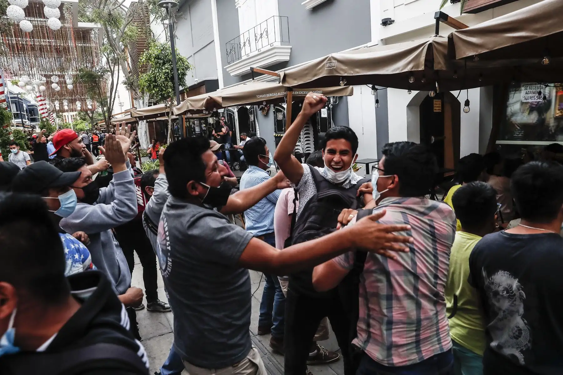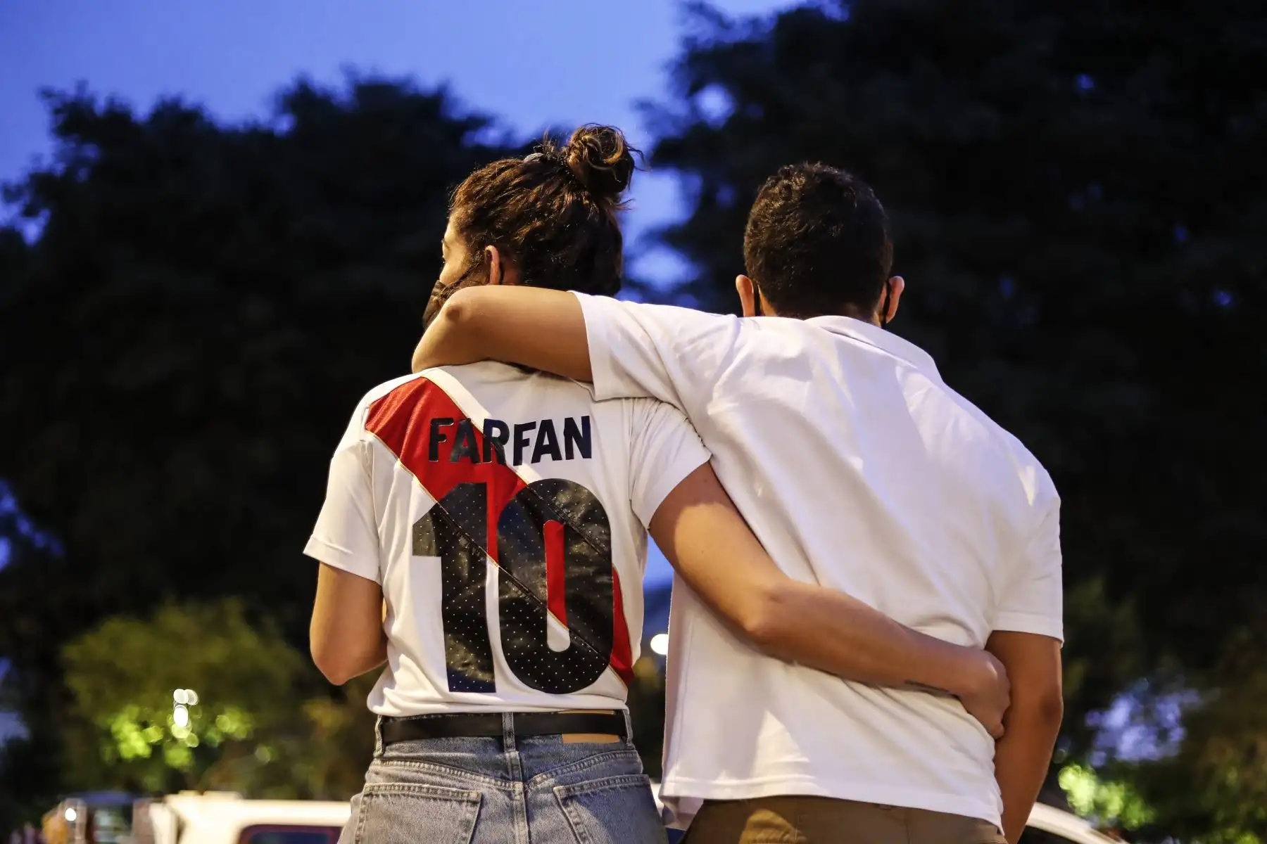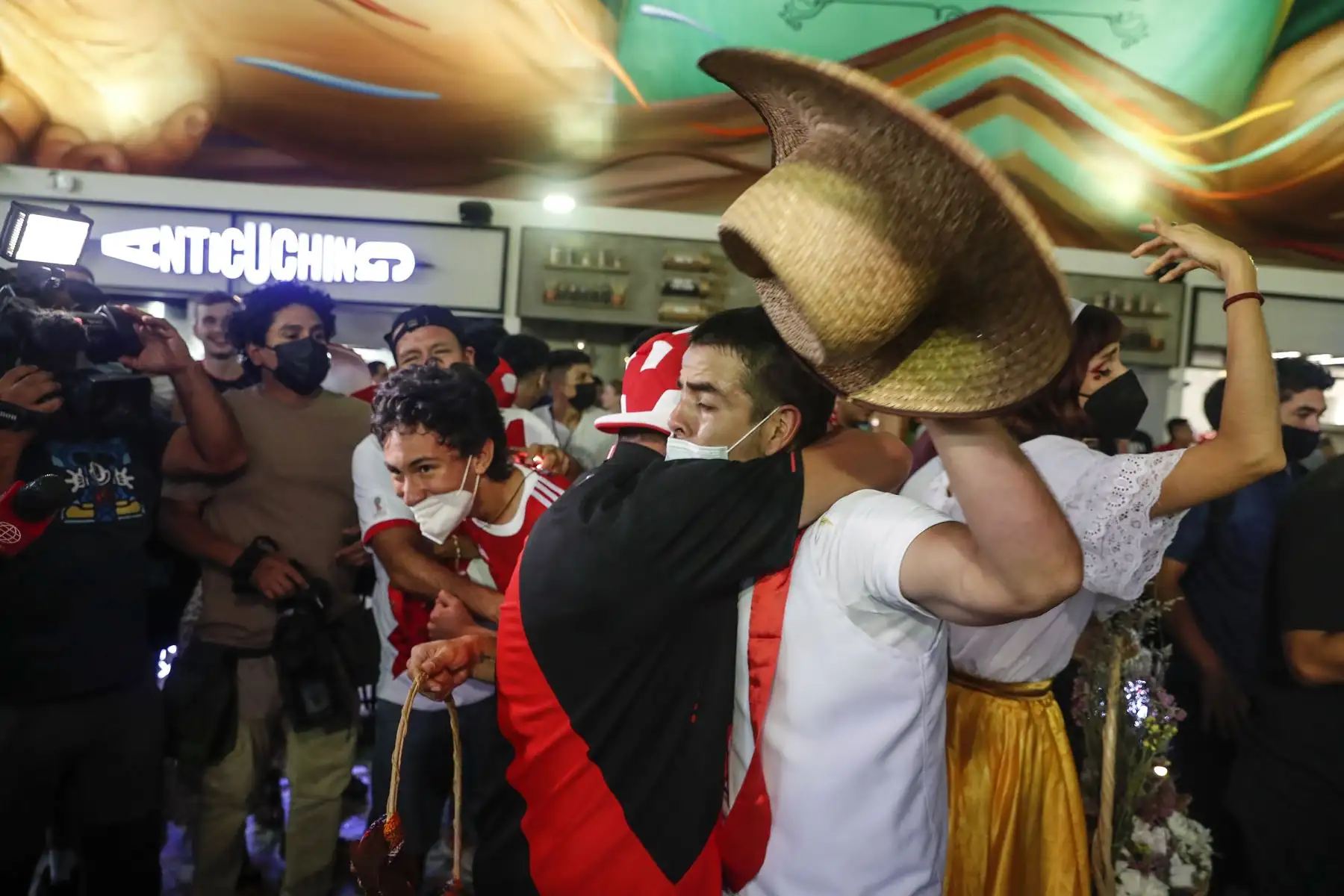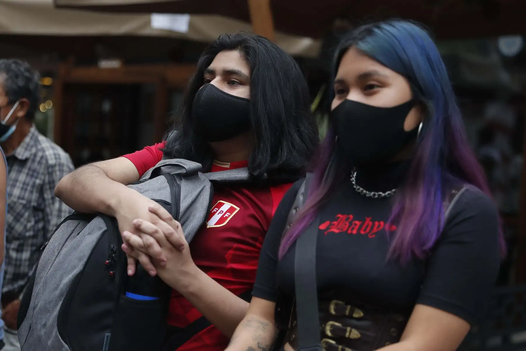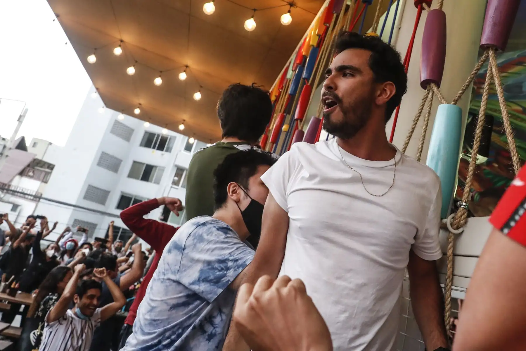 28/01/2022 Hinchas de la blanquiroja celebraron el triunfo frente e Colombia, en el pasaje San Ramón de Miraflores. Foto: ANDINA/Renato Pajuelo