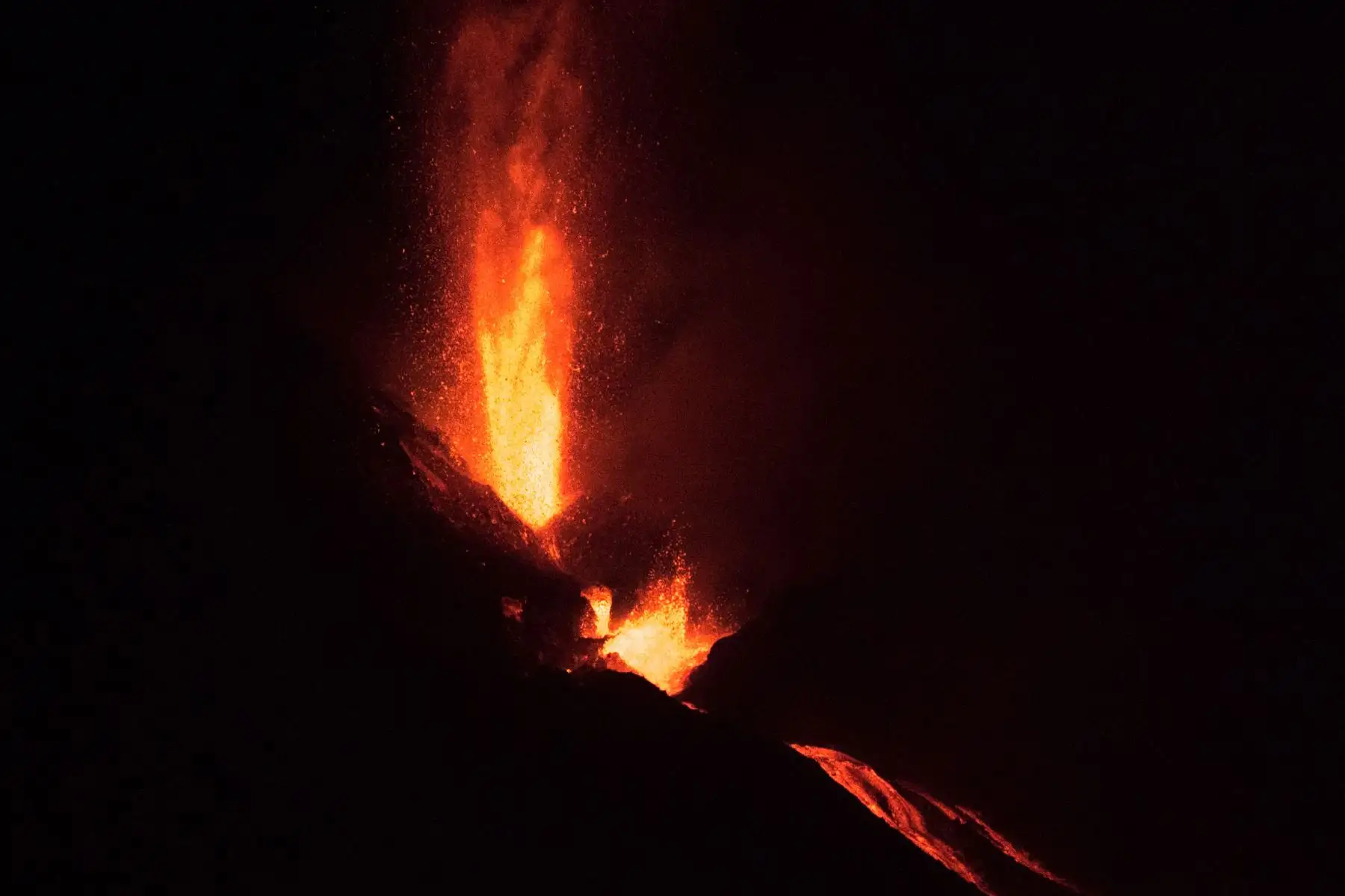 04/10/2021 El volcán de La Palma está a punto de completar su decimoquinto día de erupción tras un derrumbe parcial en el cono principal al que han seguido emisiones más abundantes de lava. Foto: EFE