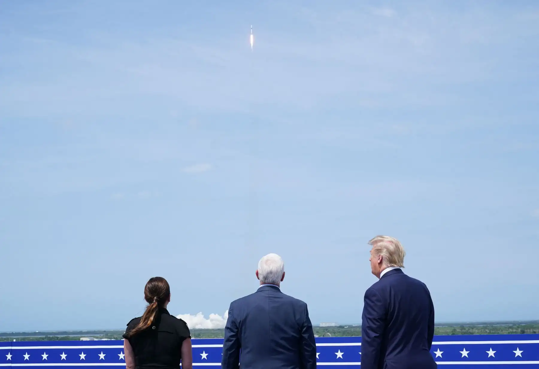 30/05/2020 Karen Pence, el vicepresidente estadounidense Mike Pence y el presidente estadounidense Donald Trump miran el lanzamiento de SpaceX en el Centro Espacial Kennedy en Florida. Foto: AFP