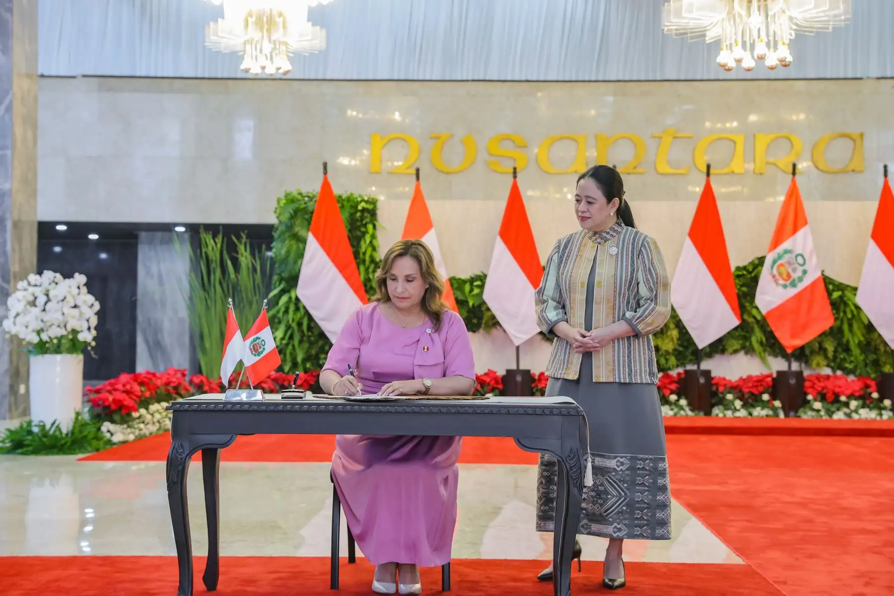 11/08/2025 La presidenta de la República, Dina Boluarte, se reúne con la presidenta (Speaker) de la Cámara de Representantes del Parlamento de Indonesia, señora Puan Maharani. Foto: ANDINA/Prensa Presidencia