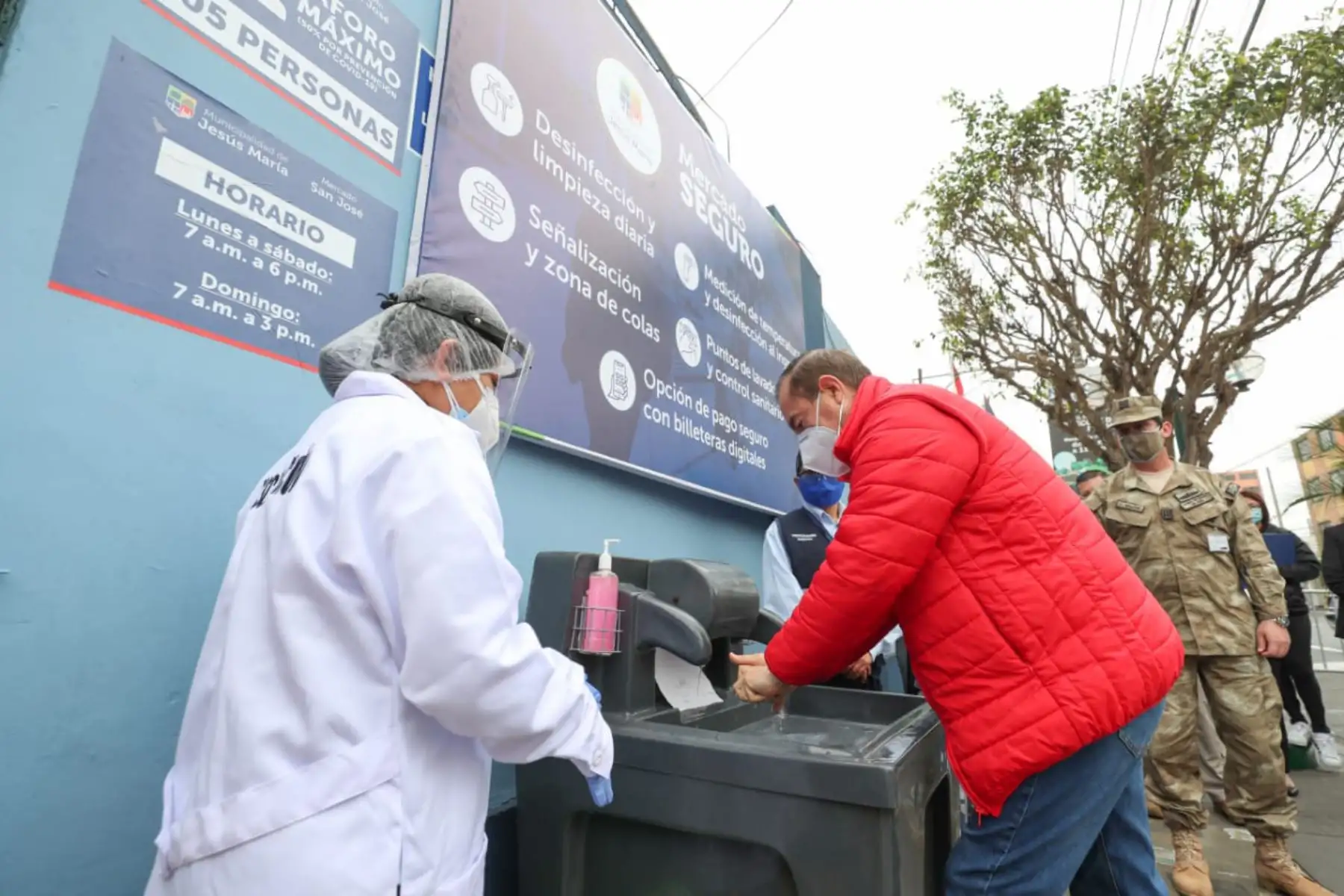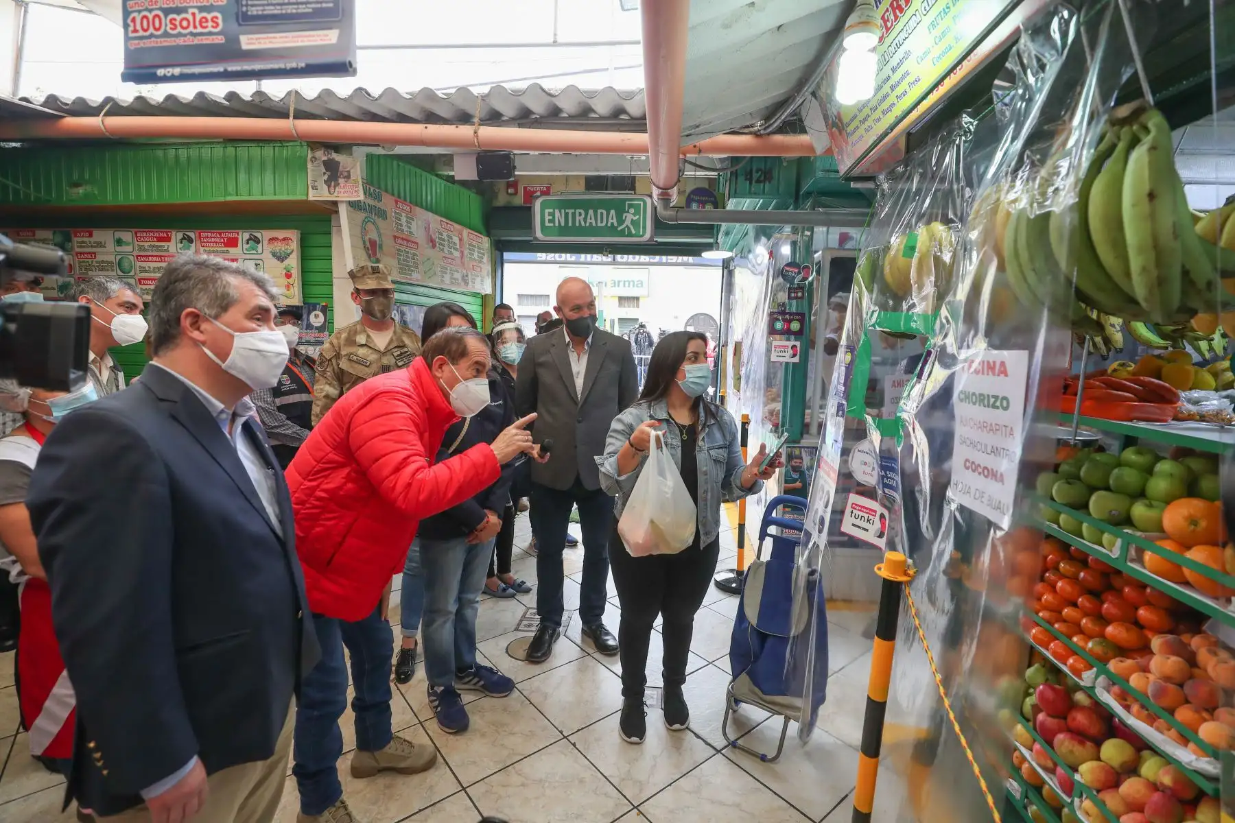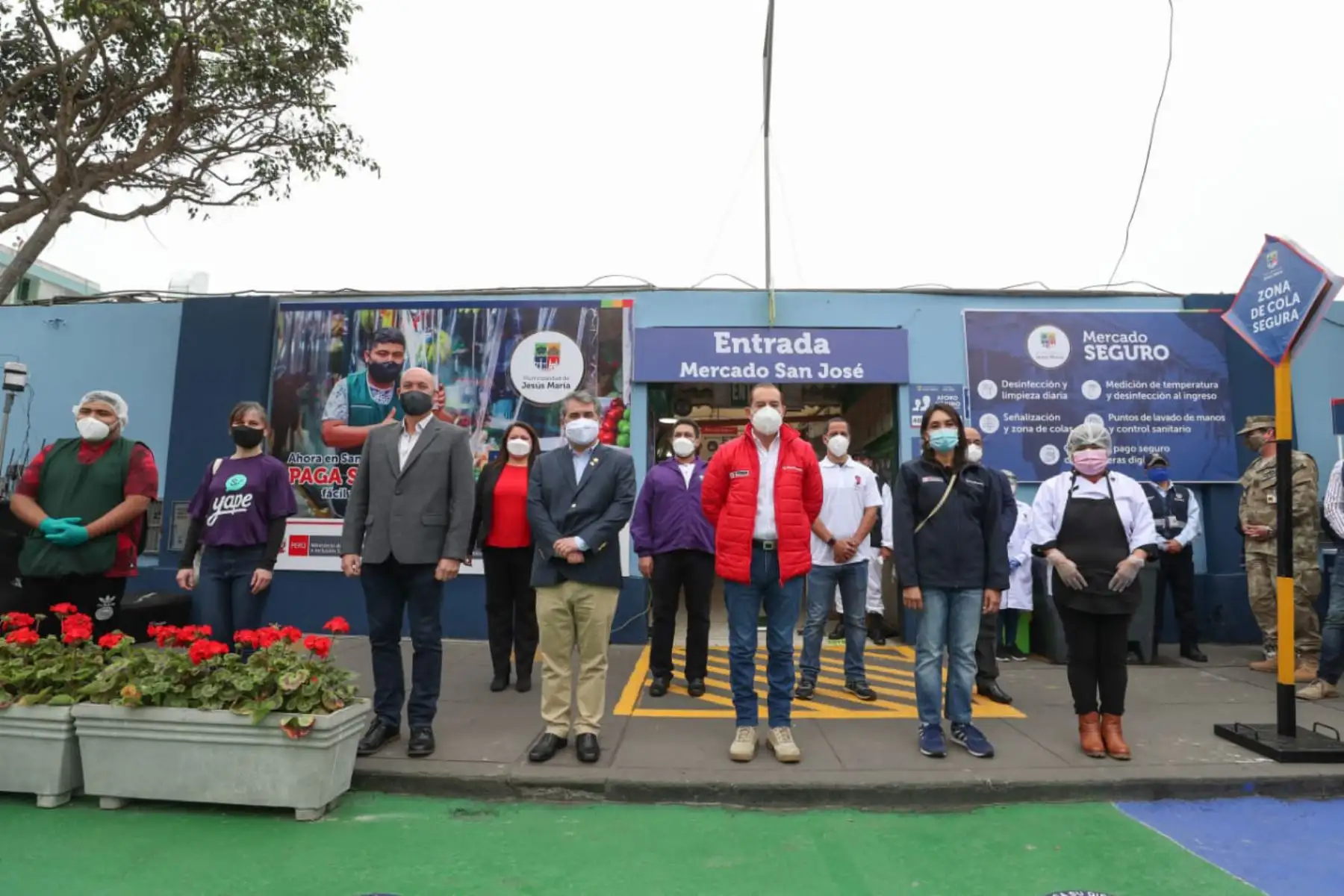 29/09/2020 El jefe del Gabinete Ministerial, Walter Martos, junto a la titular del Midis, el presidente de Asbanc y el alcalde de la Municipalidad de Jesus María, participa en el lanzamiento del piloto de la Billetera Digital en el mercado San José de Jesús María.