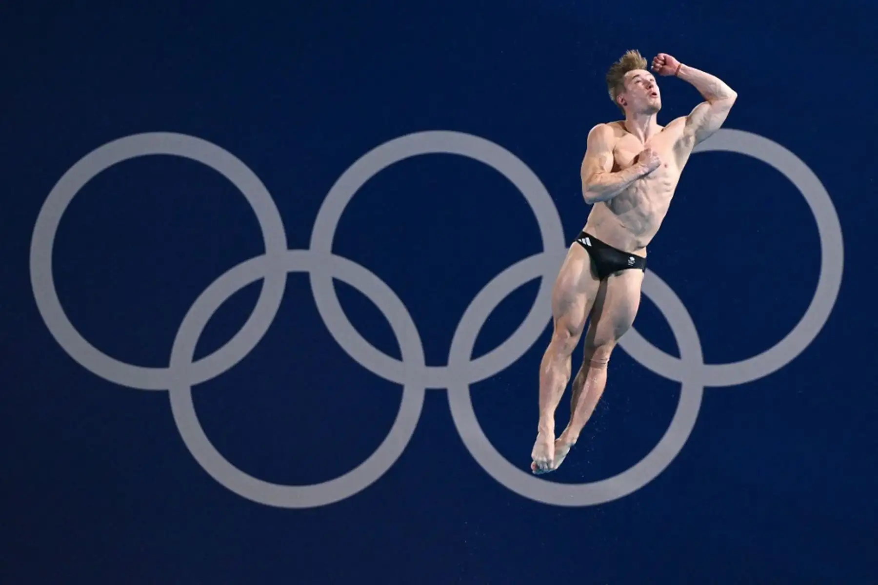 07/08/2024 El británico Jack Laugher compite en la semifinal masculina de trampolín de 3 metros durante los Juegos Olímpicos de París 2024 en el Centro Acuático de Saint-Denis. Foto: AFP