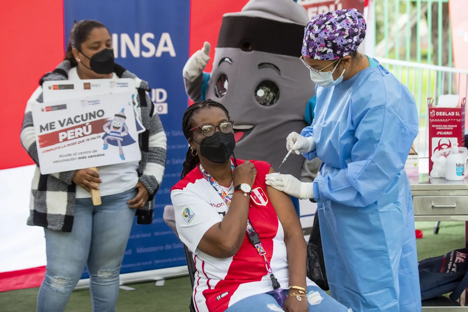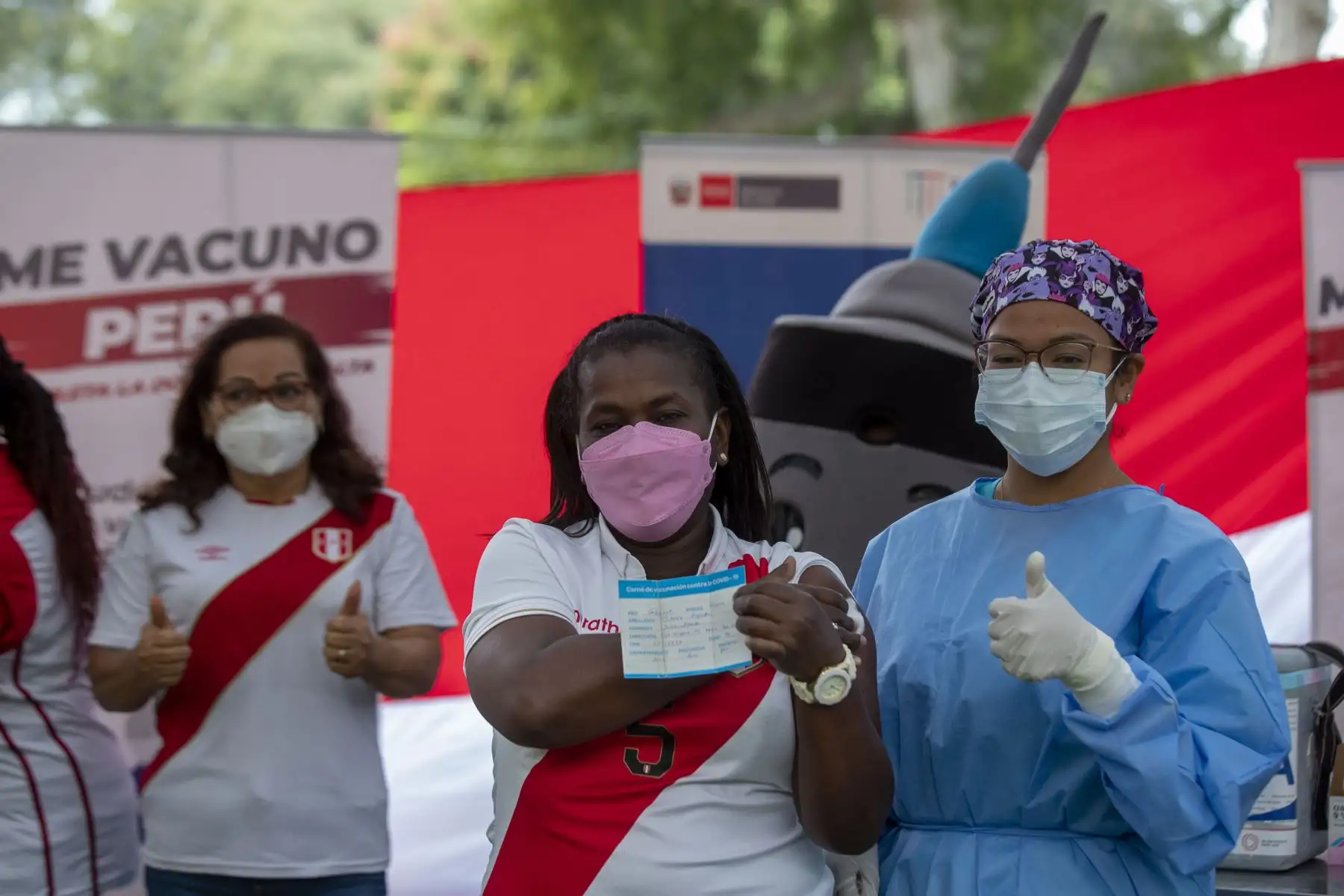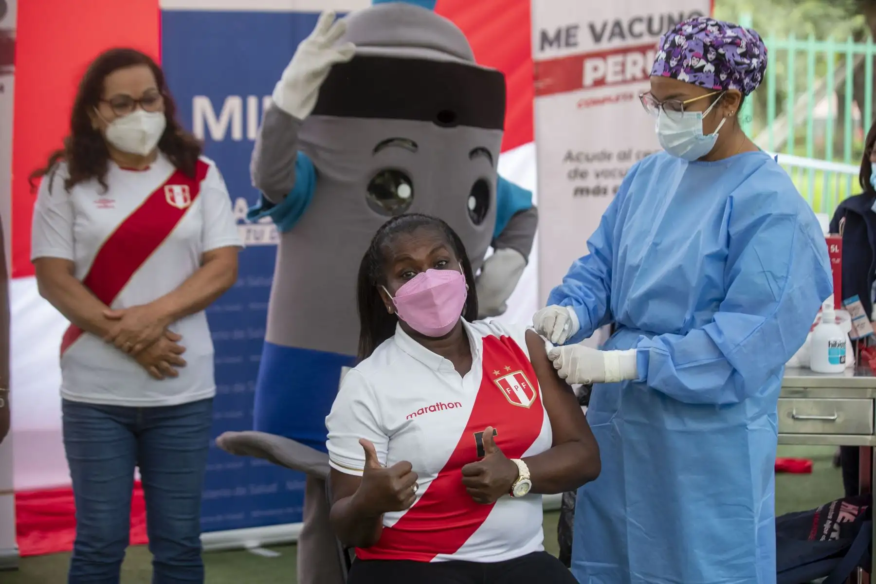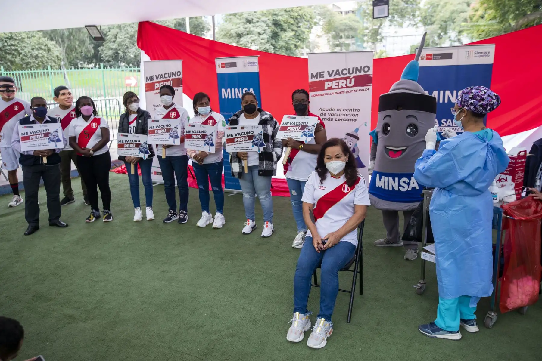 Mamás de seleccionados se suman a vacunación contra la covid-19, en la actividad participaron: Alicia Peralta, mamá de Edison Flores; María Garagay, mamá de Christian Ramos; Susana Sánchez, mamá de Pedro Aquino; María Flores, mamá de Yoshimar Yotún; Noemi Castrillón, mamá de Luis Advíncula; Inés Ollaguez, mamá de Carlos Cáceda; y Marilú Blanco, mamá de Miguel Araujo. Foto: ANDINA/Carla Patiño