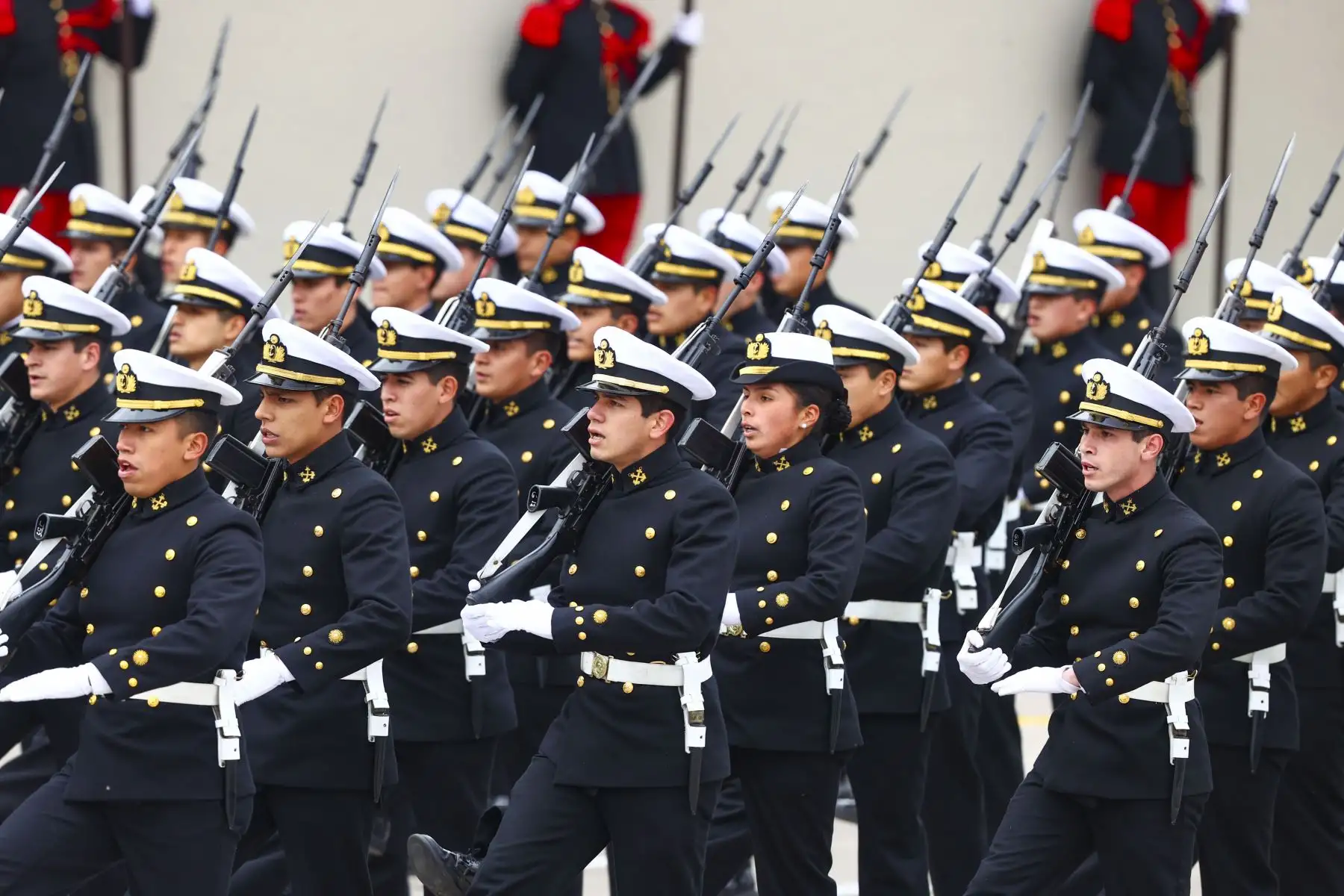 Marina de Guerra en la Gran Parada y Desfile Militar en el Cuartel General del Ejército