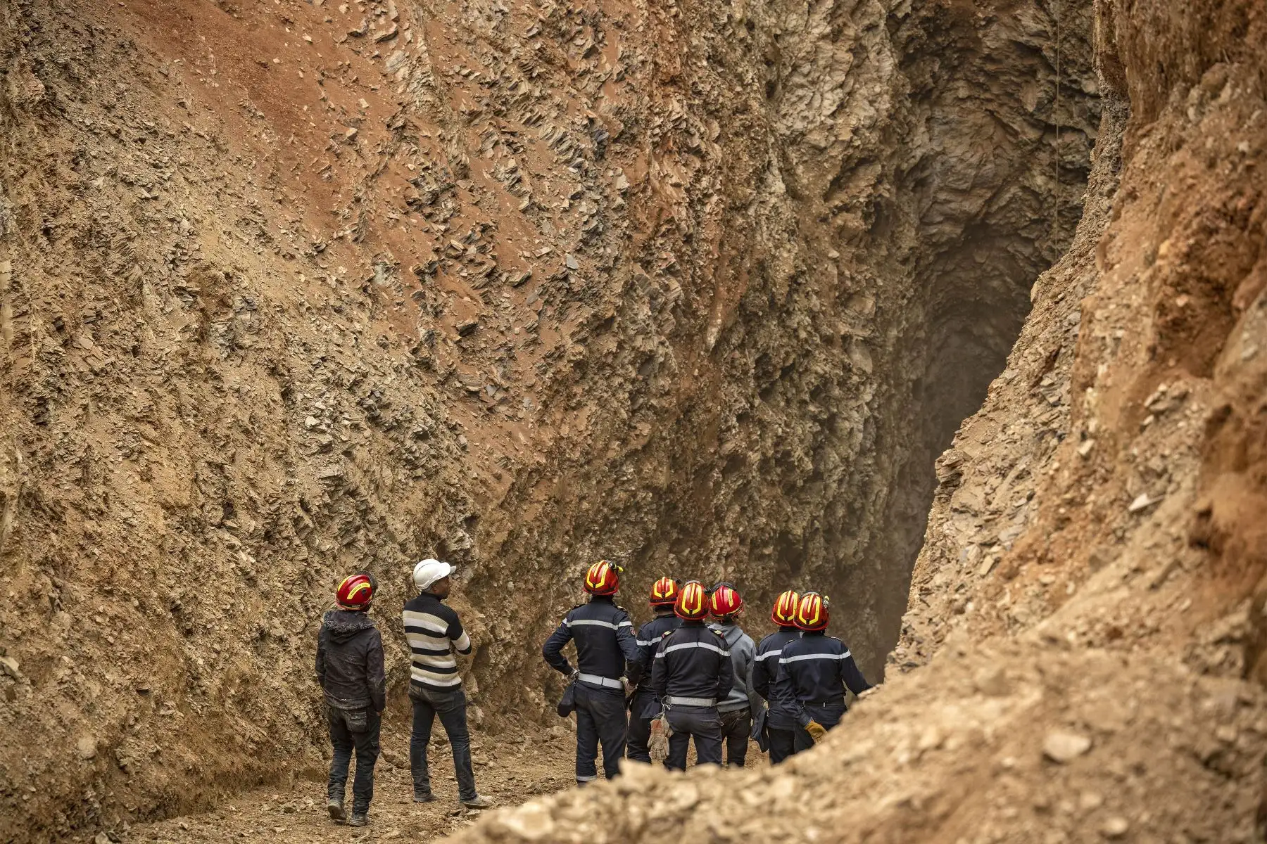 05/02/2022 Los equipos de los servicios de emergencia marroquíes trabajan en el rescate de Rayan, un niño de cinco años, de un pozo en el que cayó el 1 de febrero, en la remota aldea de Ighrane, en la provincia rural del norte de Chefchaouen, en Marruecos.