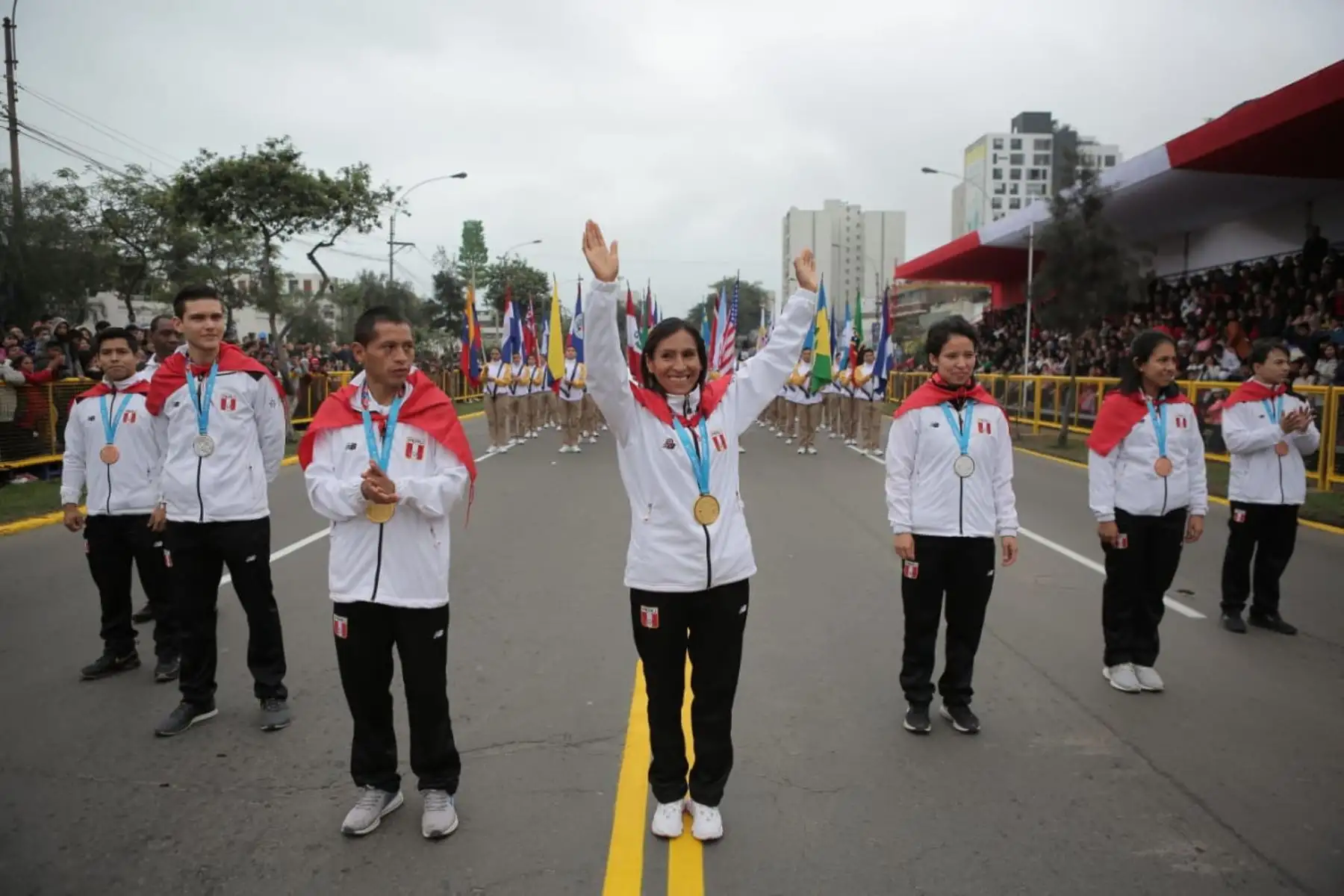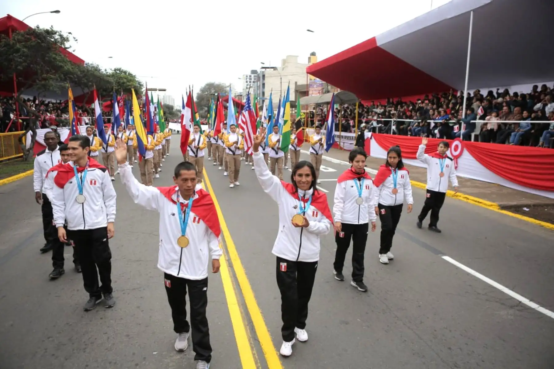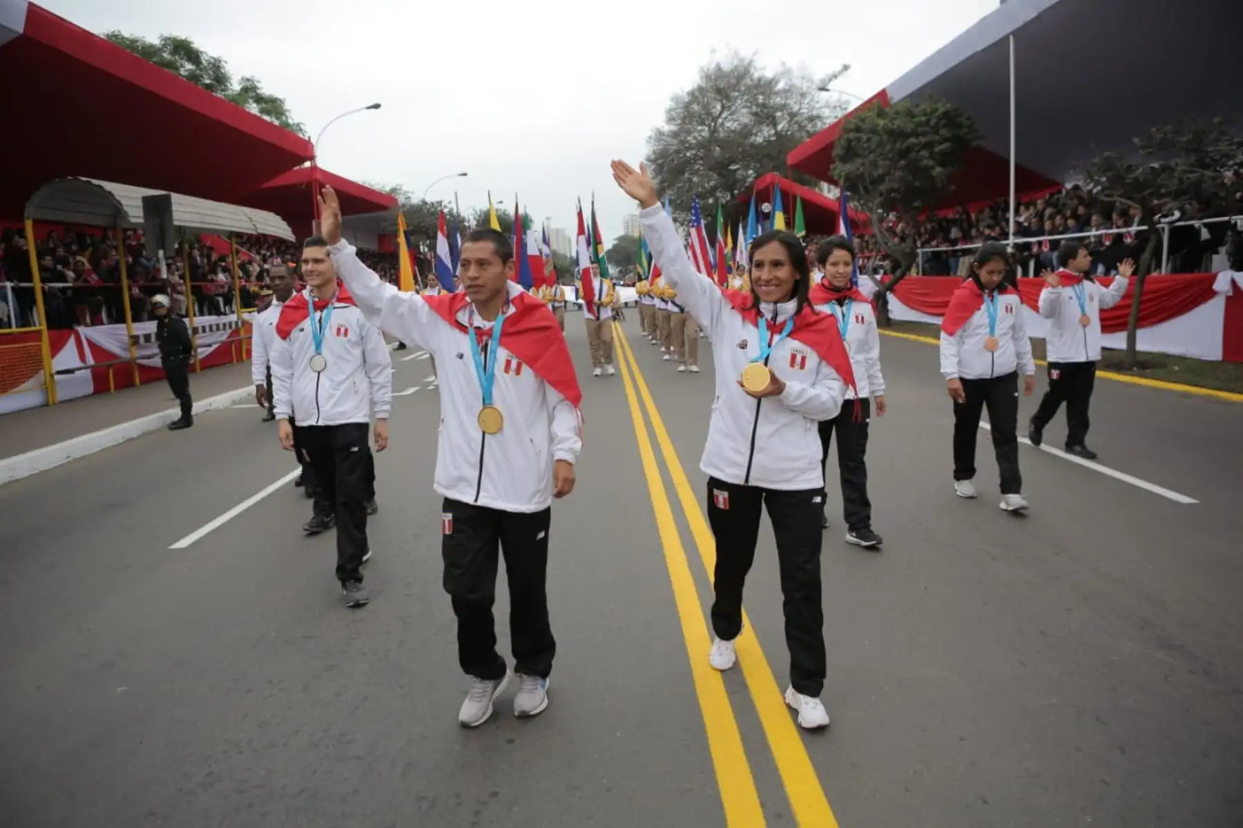 Medallistas peruanos de Lima 2019 en desfile Cívico Militar