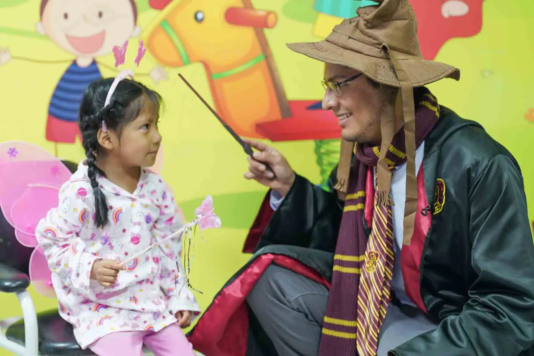 31/10/2024 En un evento lleno de color, música y diversión, médicos y enfermeras sorprendieron a los niños hospitalizados en el Instituto Nacional Cardiovascular INCOR de EsSalud, llegando vestidos de sus personajes favoritos de la película “Intensamente“ y “Harry Potter“, para generar un ambiente de alegría que contribuya a su proceso de recuperación. Foto: ANDINA/ EsSalud