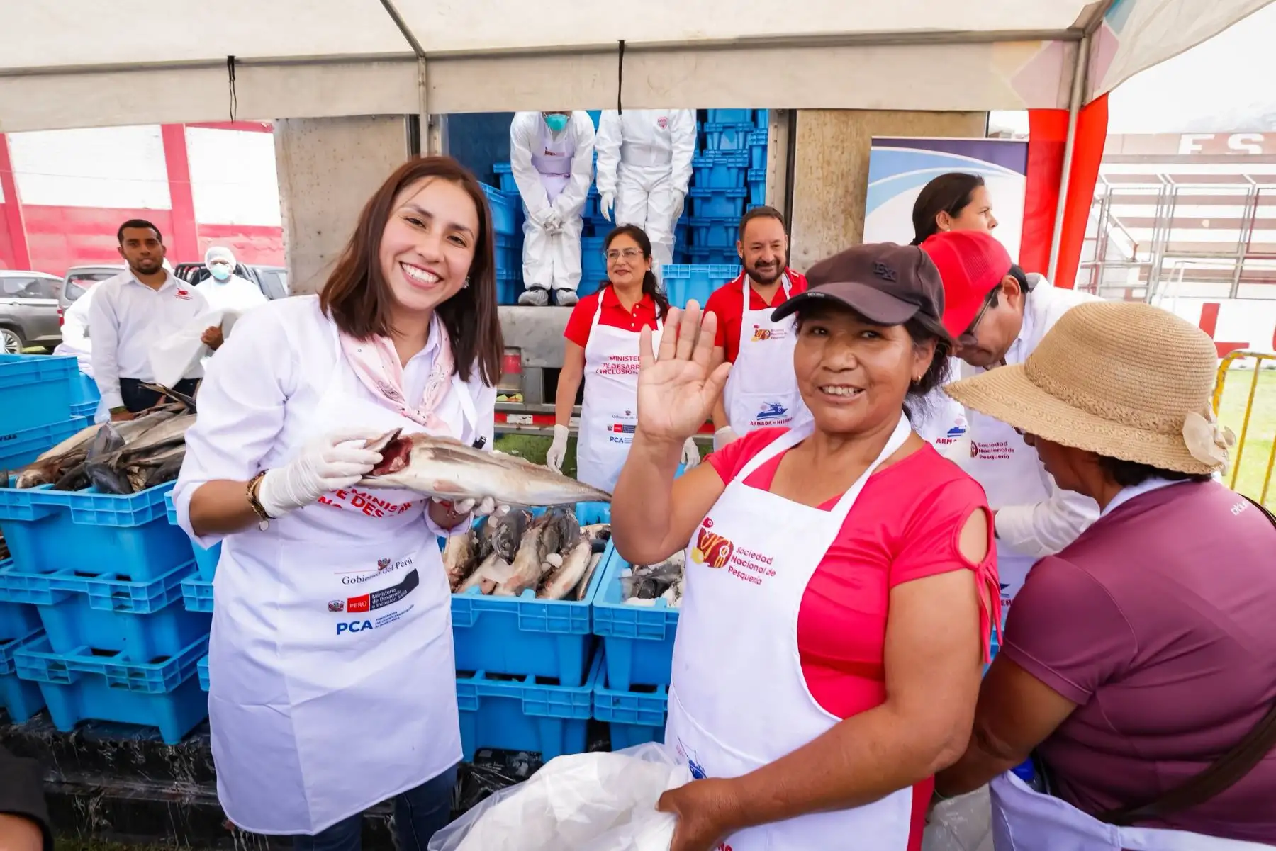 07/11/2025 Ministra Lesly Shica participa en entrega de pescado para ollas comunes y comedores en SJL. Foto:Difusión/MIDIS