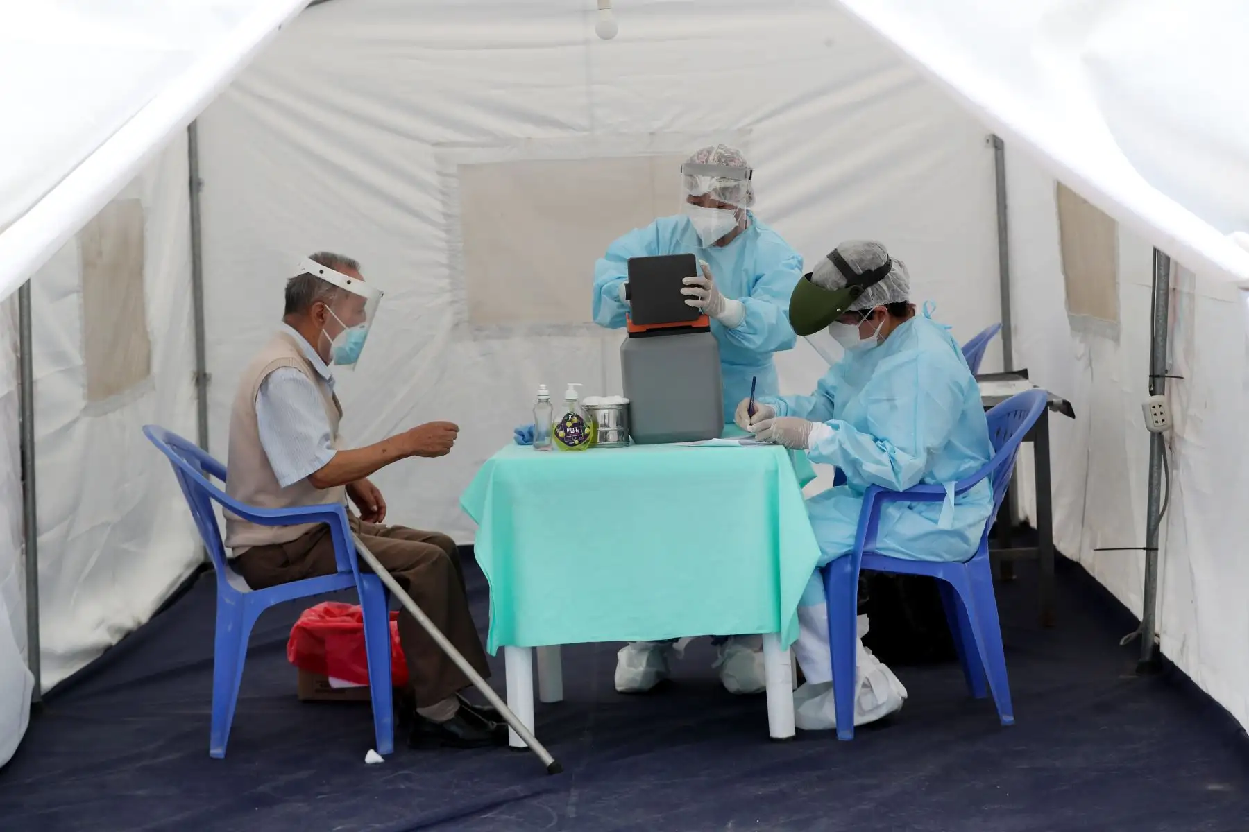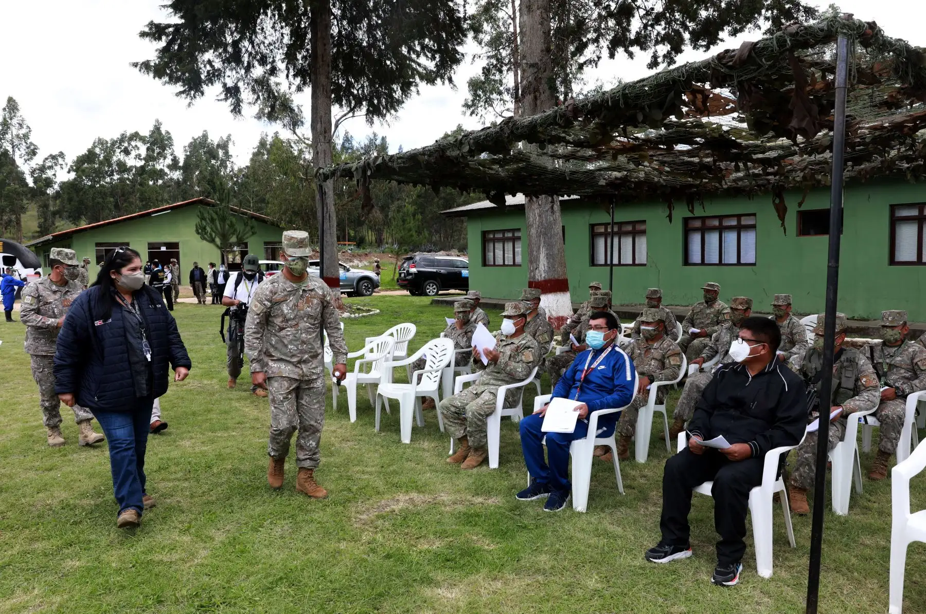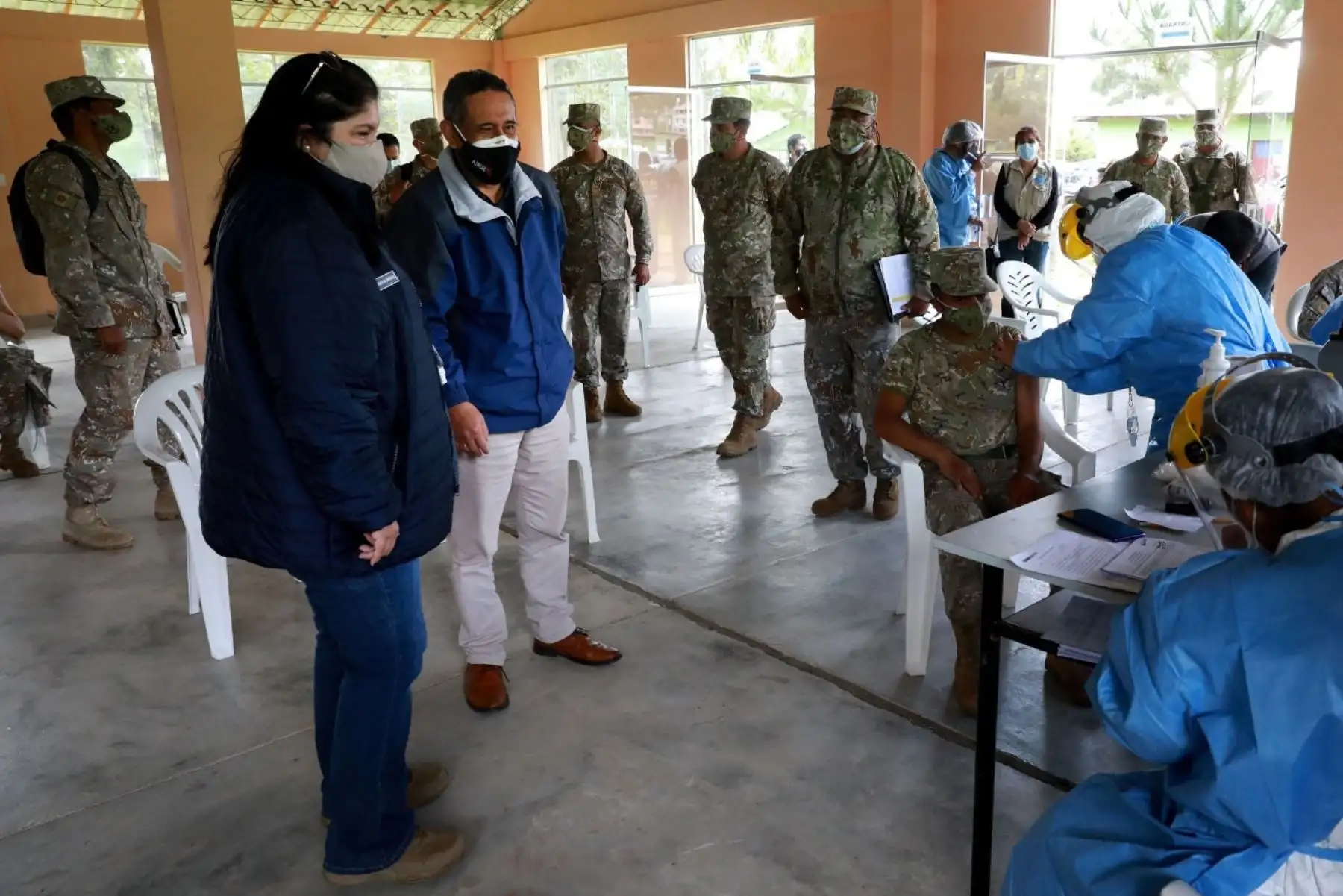 09/04/2021 La ministra de Defensa, Nuria Esparch, supervisó el proceso de vacunación contra la covid-19 del personal militar de las Fuerzas Armadas destacado en el norte del país. Foto: ANDINA/Mindef