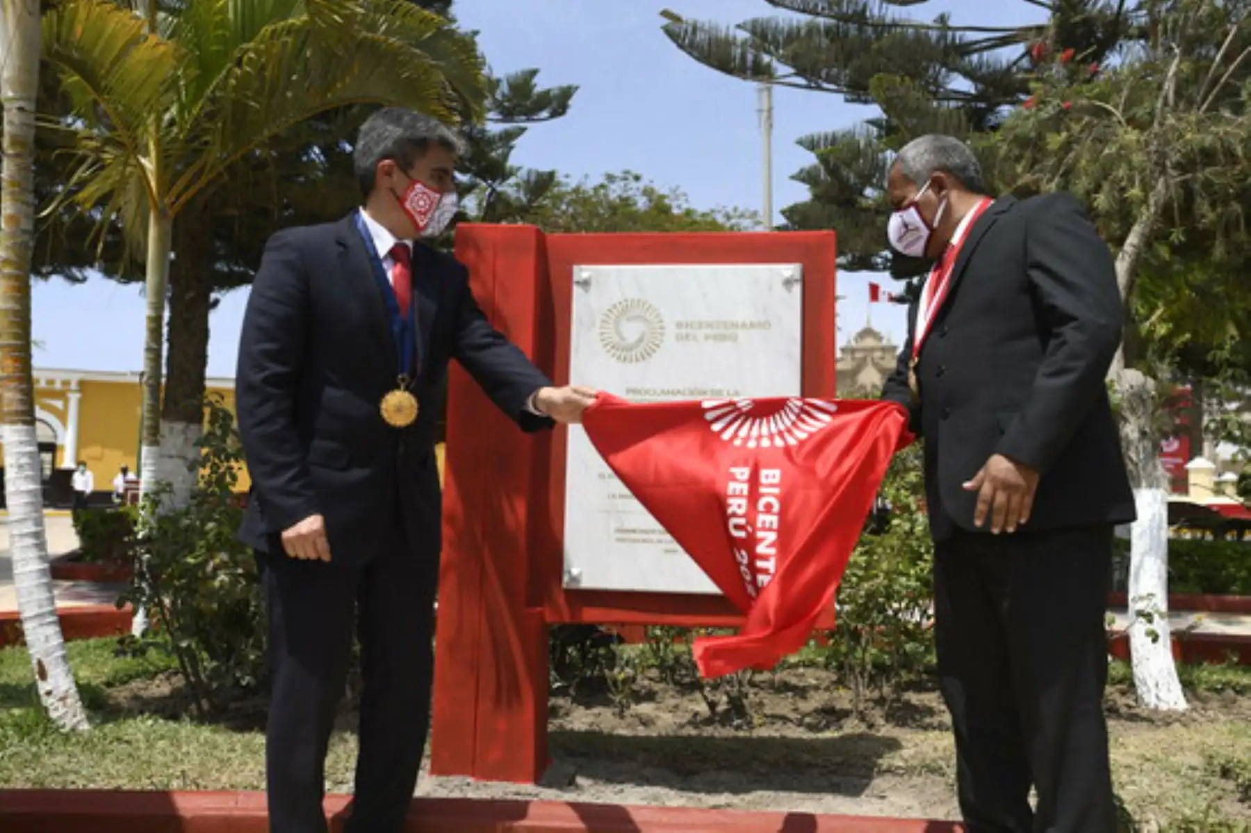 27/12/2020 Ministro de Cultura Alejandro Neyra, encabezó los actos oficiales por los 200 años de la independencia de Lambayeque. Se develó la placa conmemorativa en la Plaza 27 de Diciembre. Foto: ANDINA/Mincult