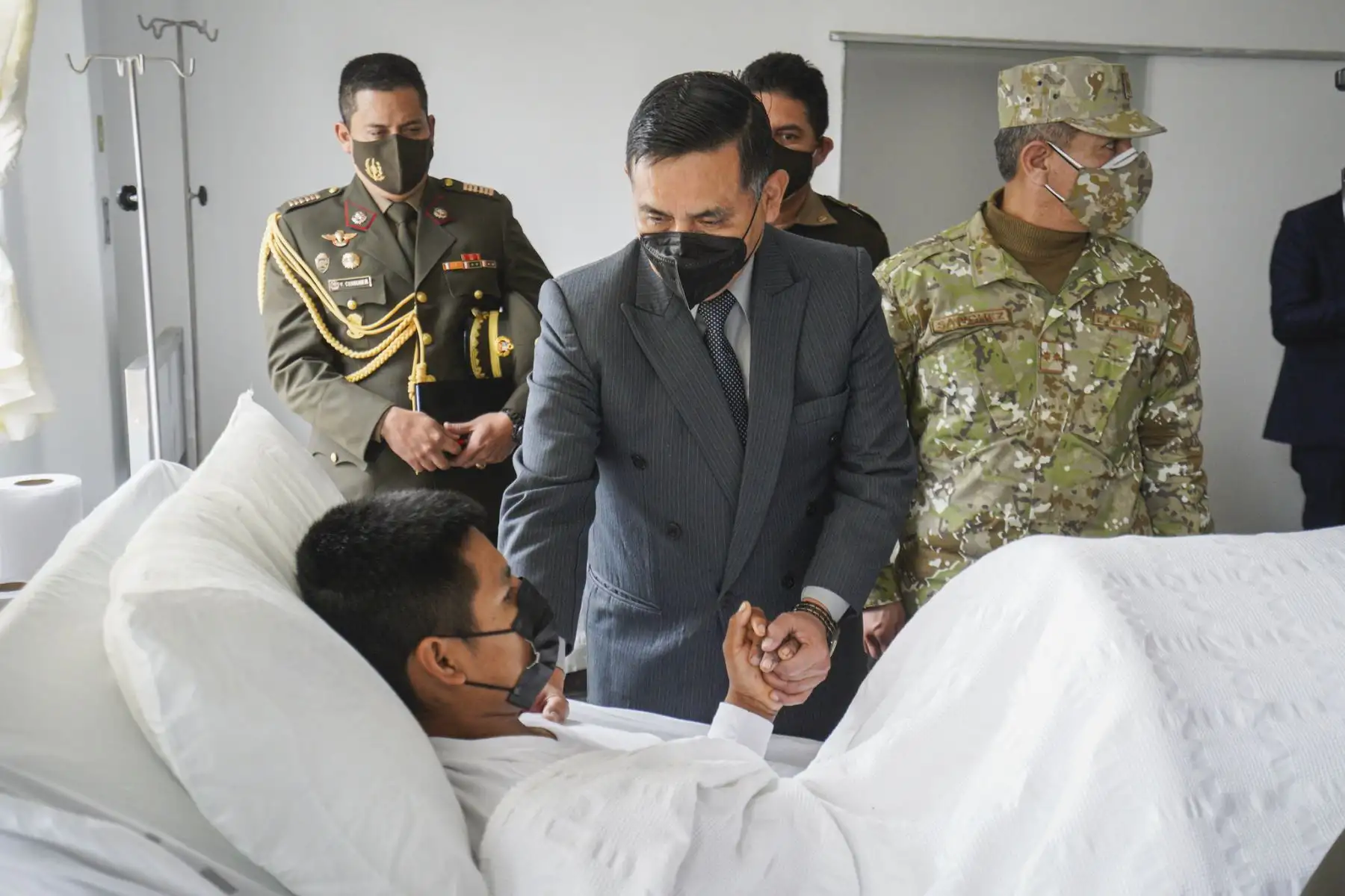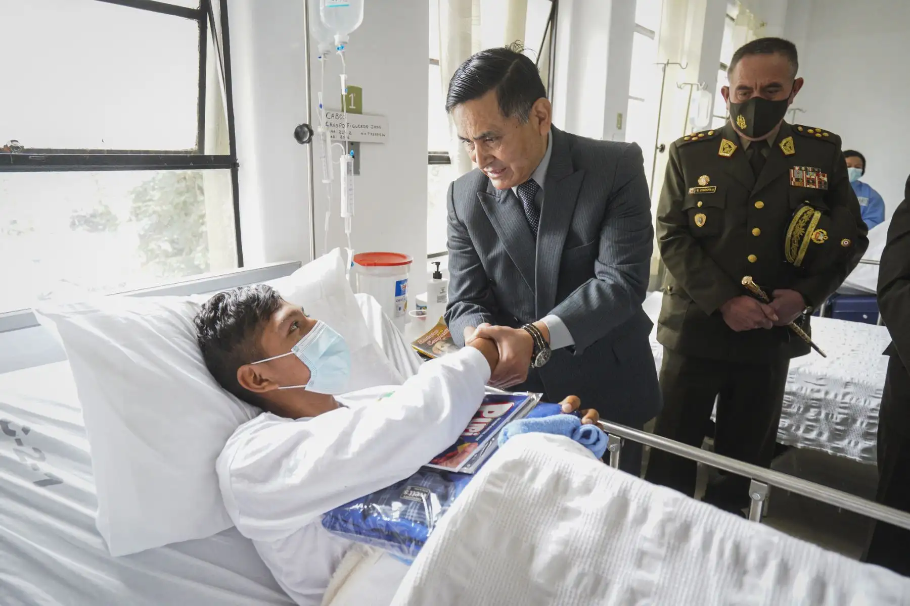 26/08/2022 El ministro de Defensa, Richard Tineo Quispe visita a los soldados que resultaron heridos en la operación " Patriota ", en el VRAEM.