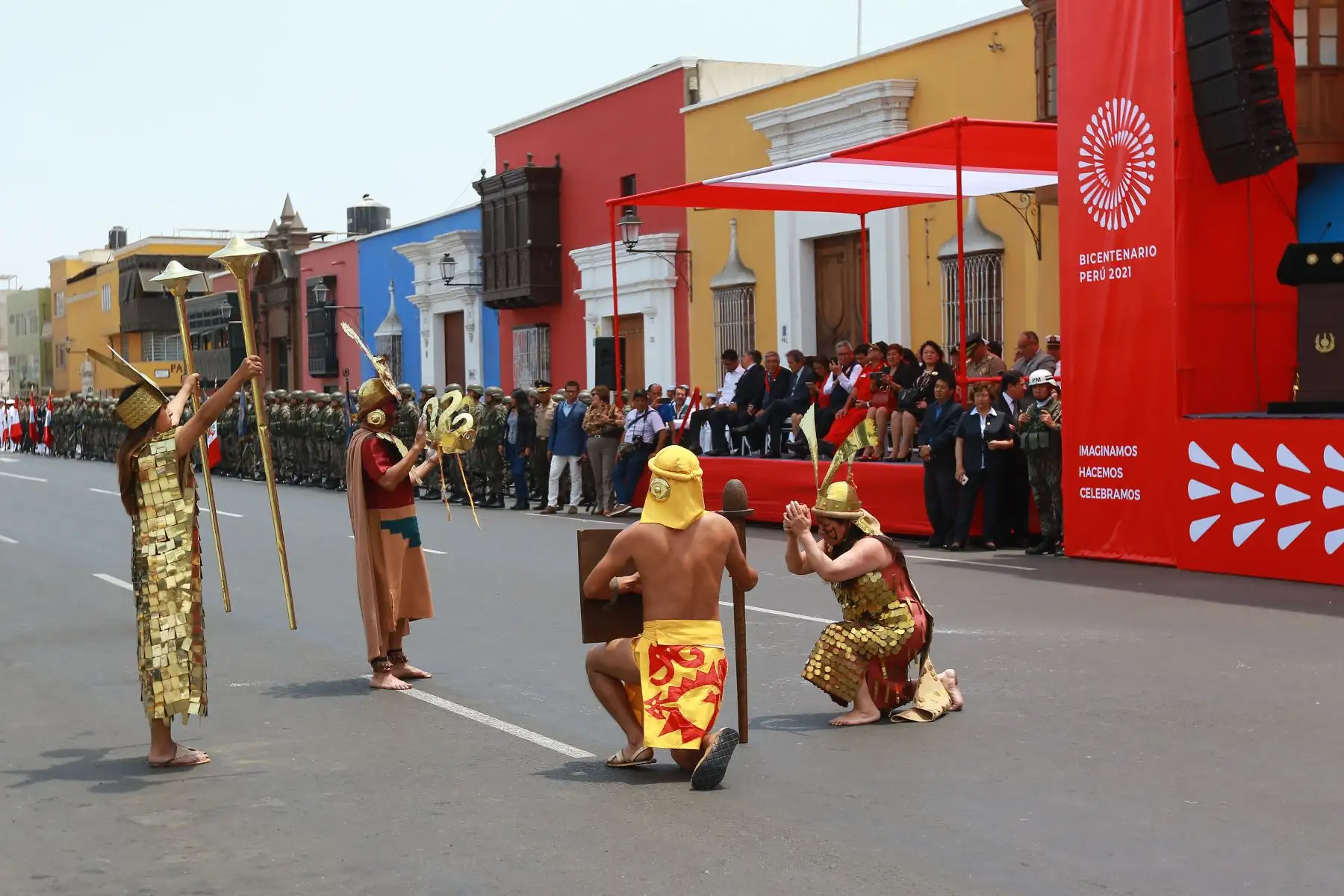 10/11/2018 La plaza de armas de Trujillo es el epicentro de un colorido pasacalle, danzas y un show artístico, programados con motivo del lanzamiento de la Agenda Bicentenario. Los actos fueron presididos por el ministro de Agricultura Gustavo Mostajo. Foto: ANDINA/Celso Roldan