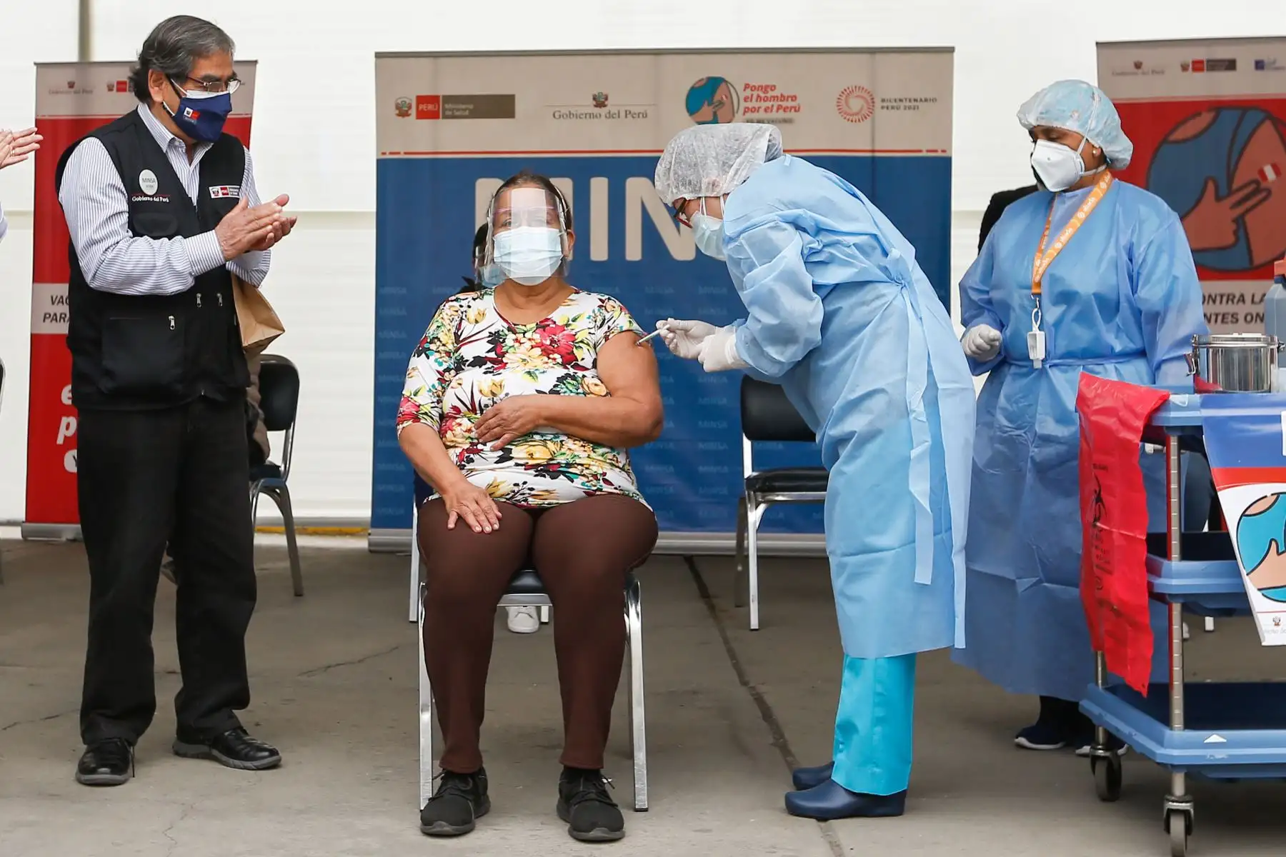 Ministro de Salud, Óscar Ugarte participa en el inicio de vacunación contra la covid - 19 a pacientes oncológicos.
