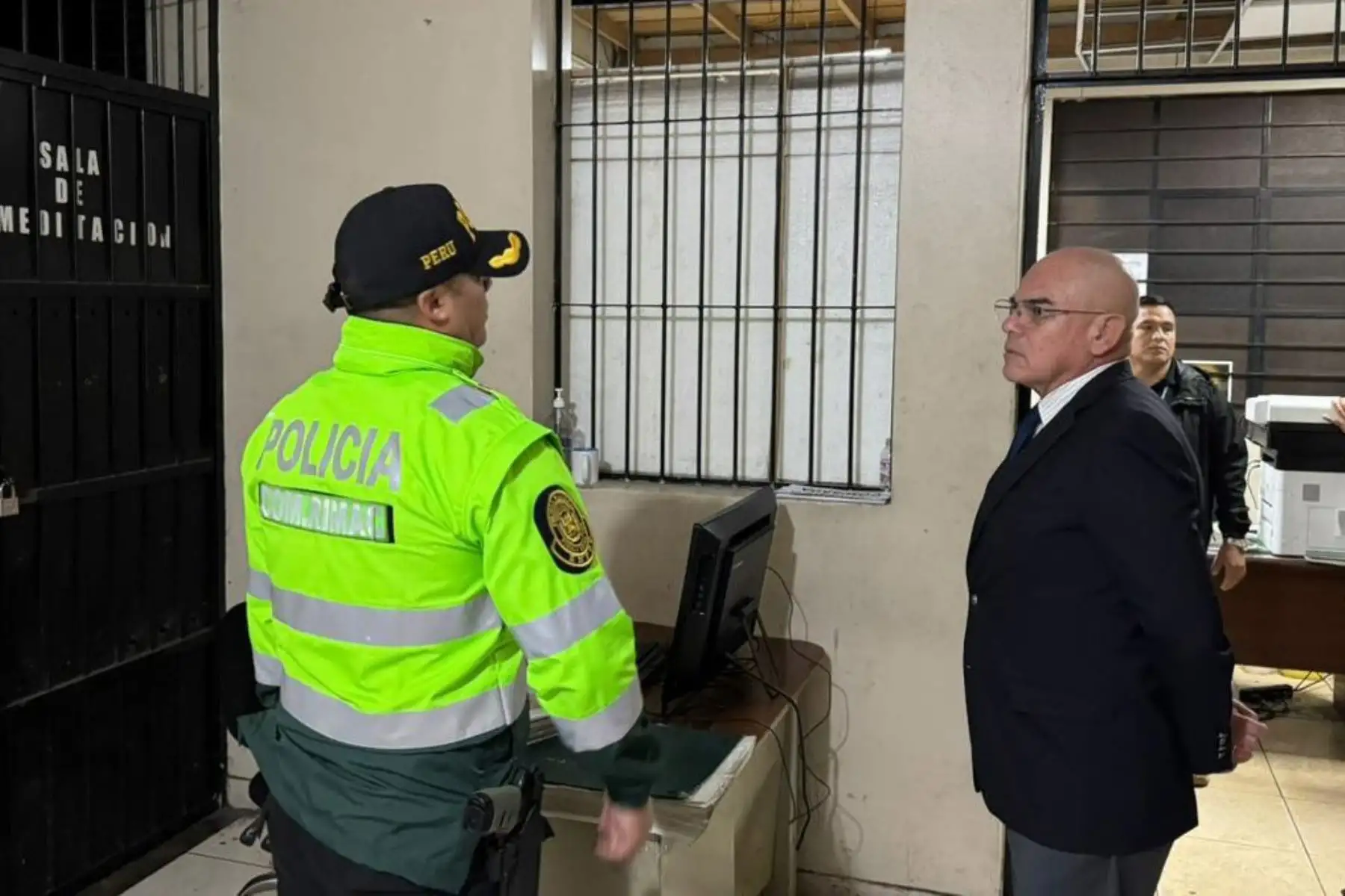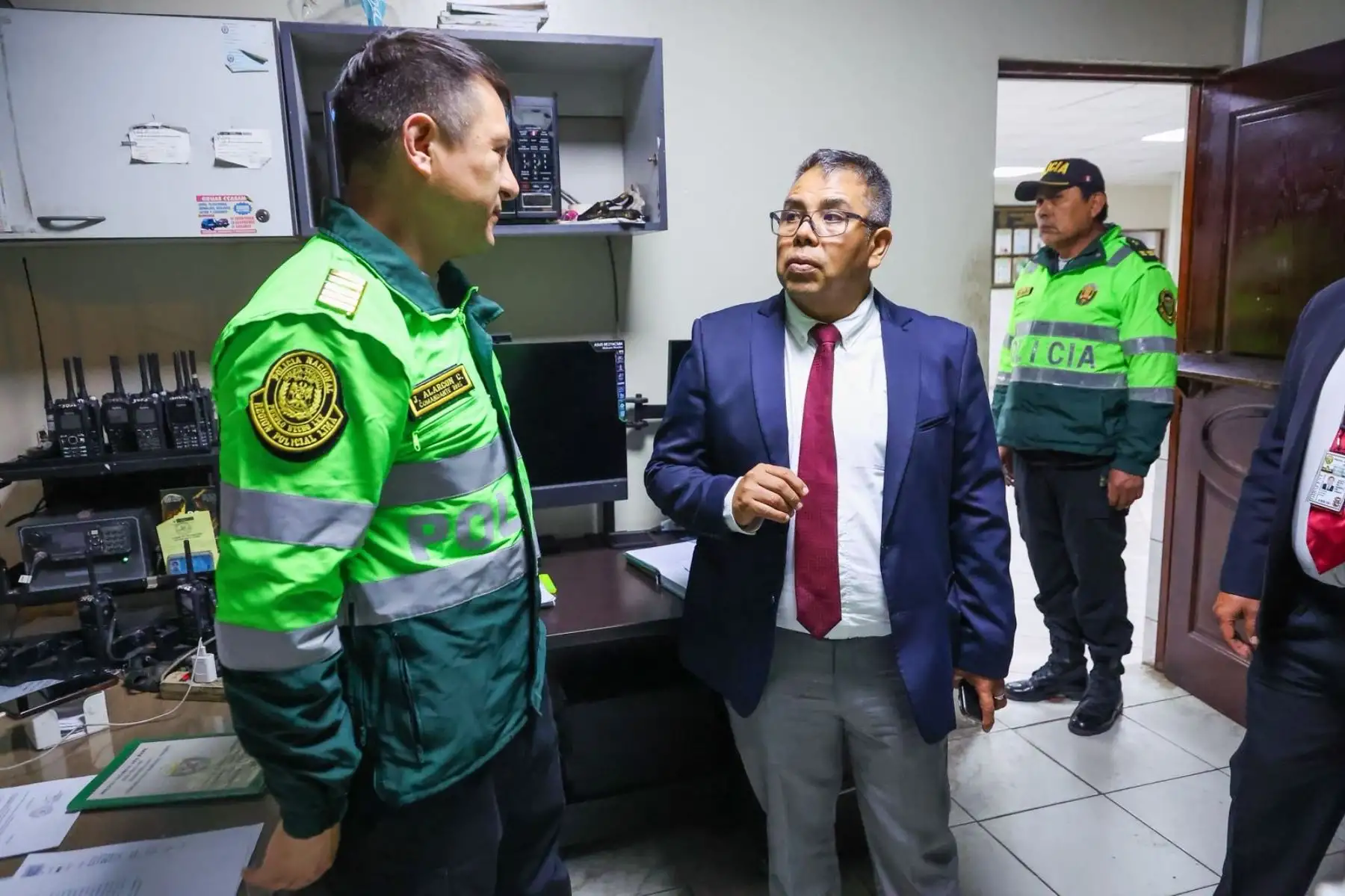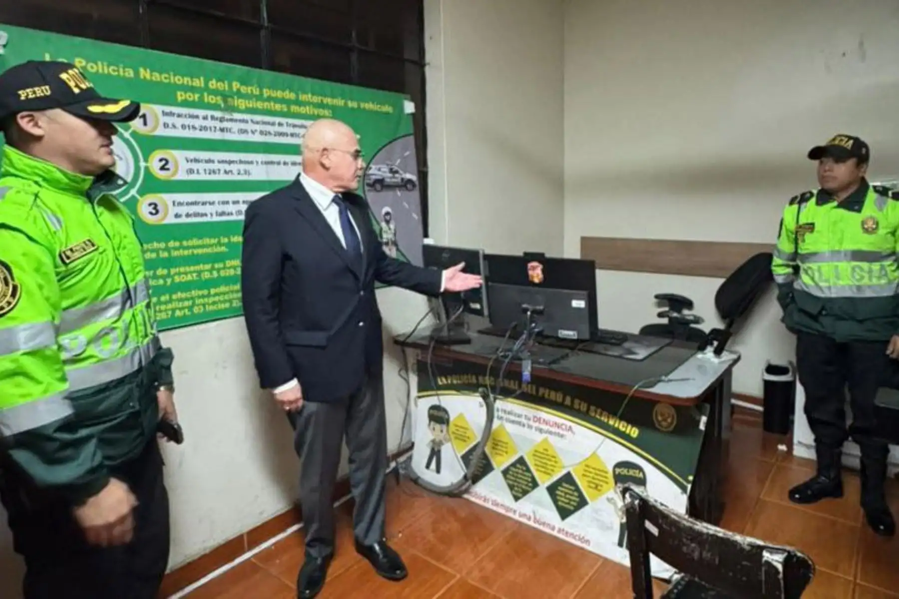 17/10/2025 Como parte del operativo simultáneo, dispuesto por el presidente José Jerí, el canciller Hugo de Zela llegó a la Comisaría de Petit Thouars para conocer las necesidades reales del personal, tanto de equipamiento como del estado de las instalaciones. Fue recibido por el comandante PNP Ricardo Alfredo Vargas Rodríguez. Foto: ANDINA/Difusión
