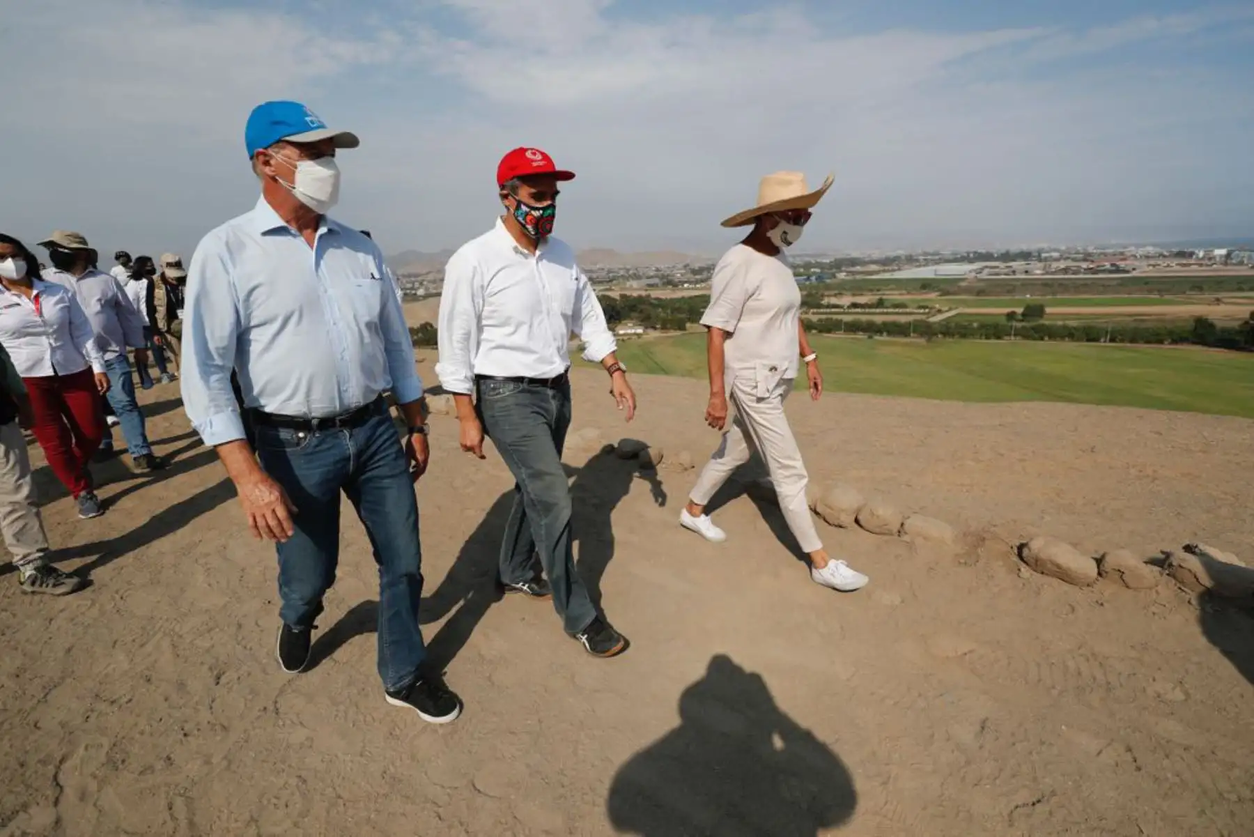 23/03/2021 Los ministros de Vivienda, Construcción y Saneamiento, Solangel Fernández; de Ambiente, Gabriel Quijandría ; y de Cultura, Alejandro Neyra , realizaron una inspección técnica al Santuario Arqueológico de Pachacamac, a fin de evaluar en el campo los posibles efectos del Reajuste Integral de Zonificación (RIZ) del valle de Lurín aprobado por el Concejo Metropolitano de Lima.
