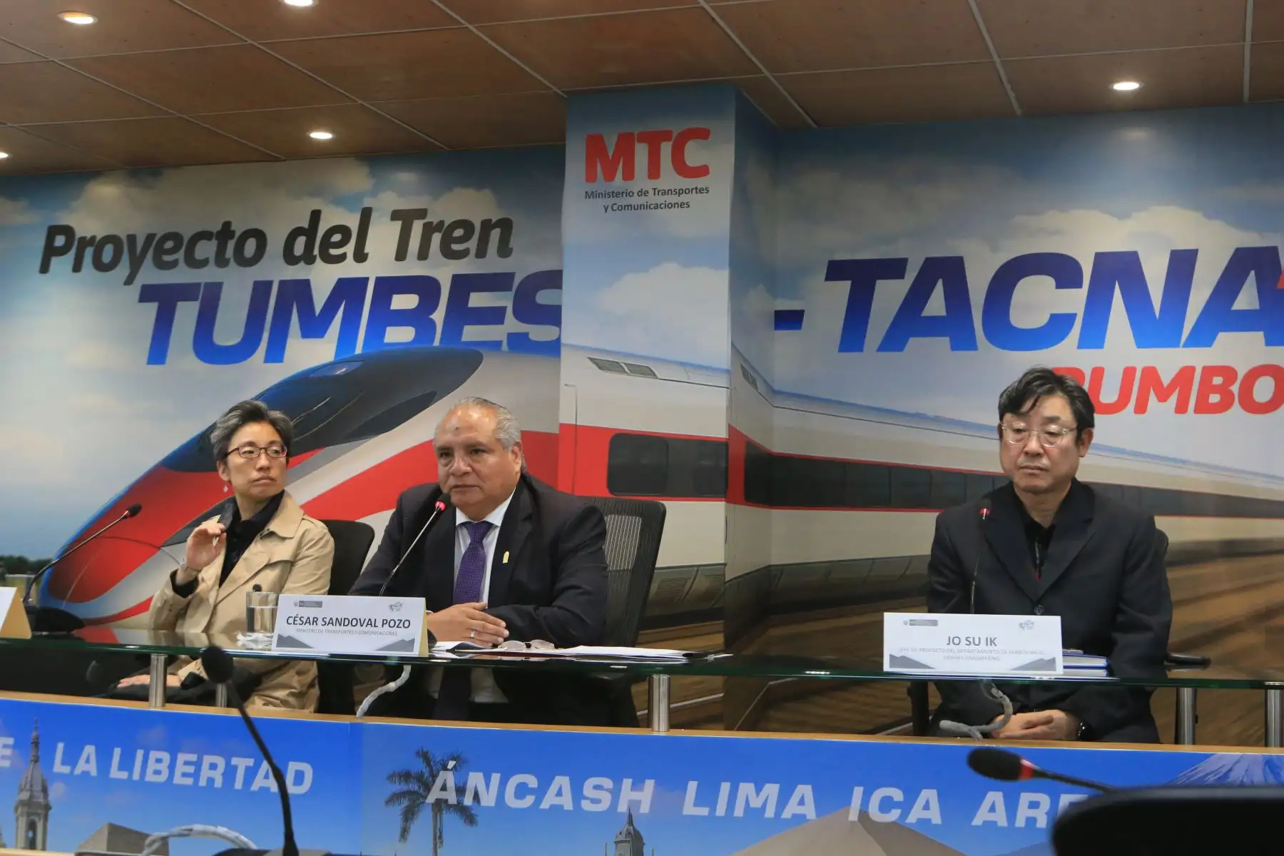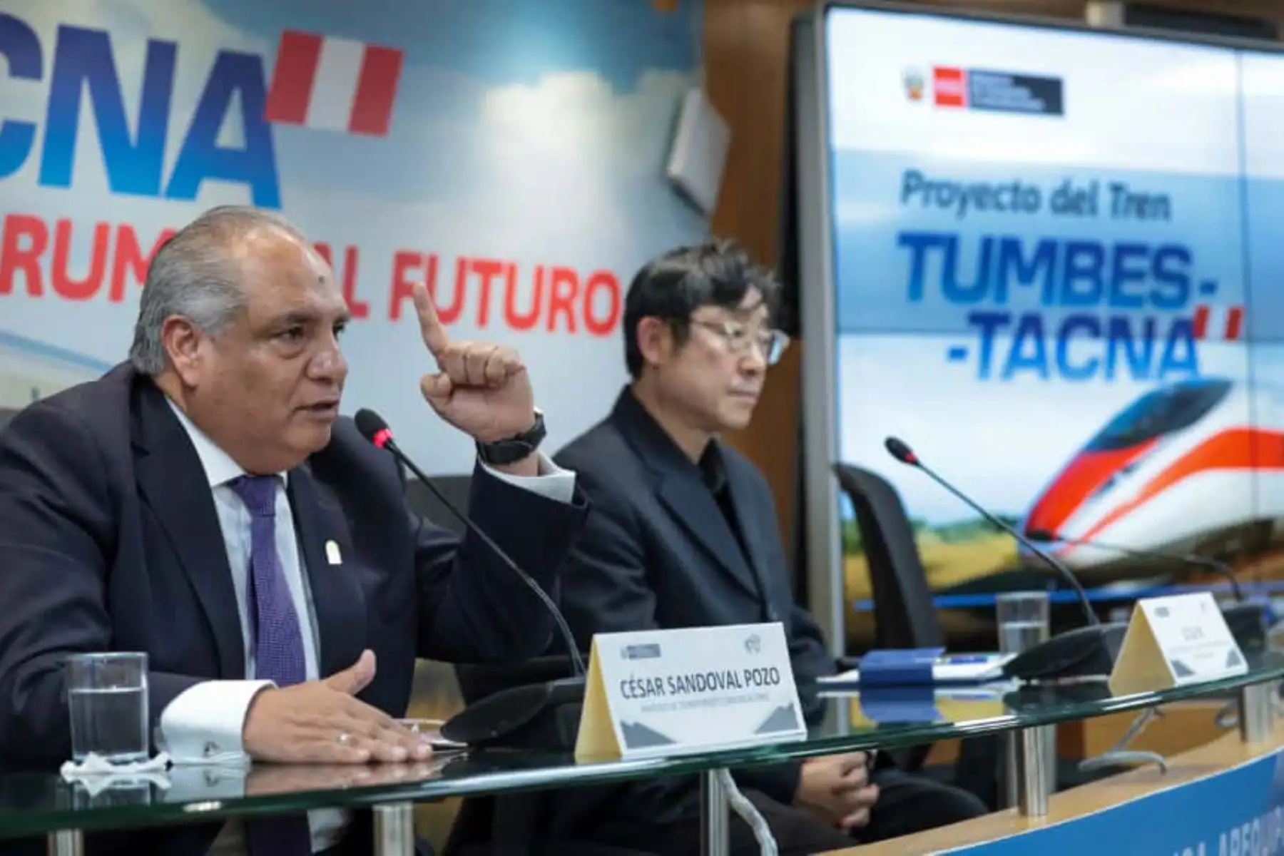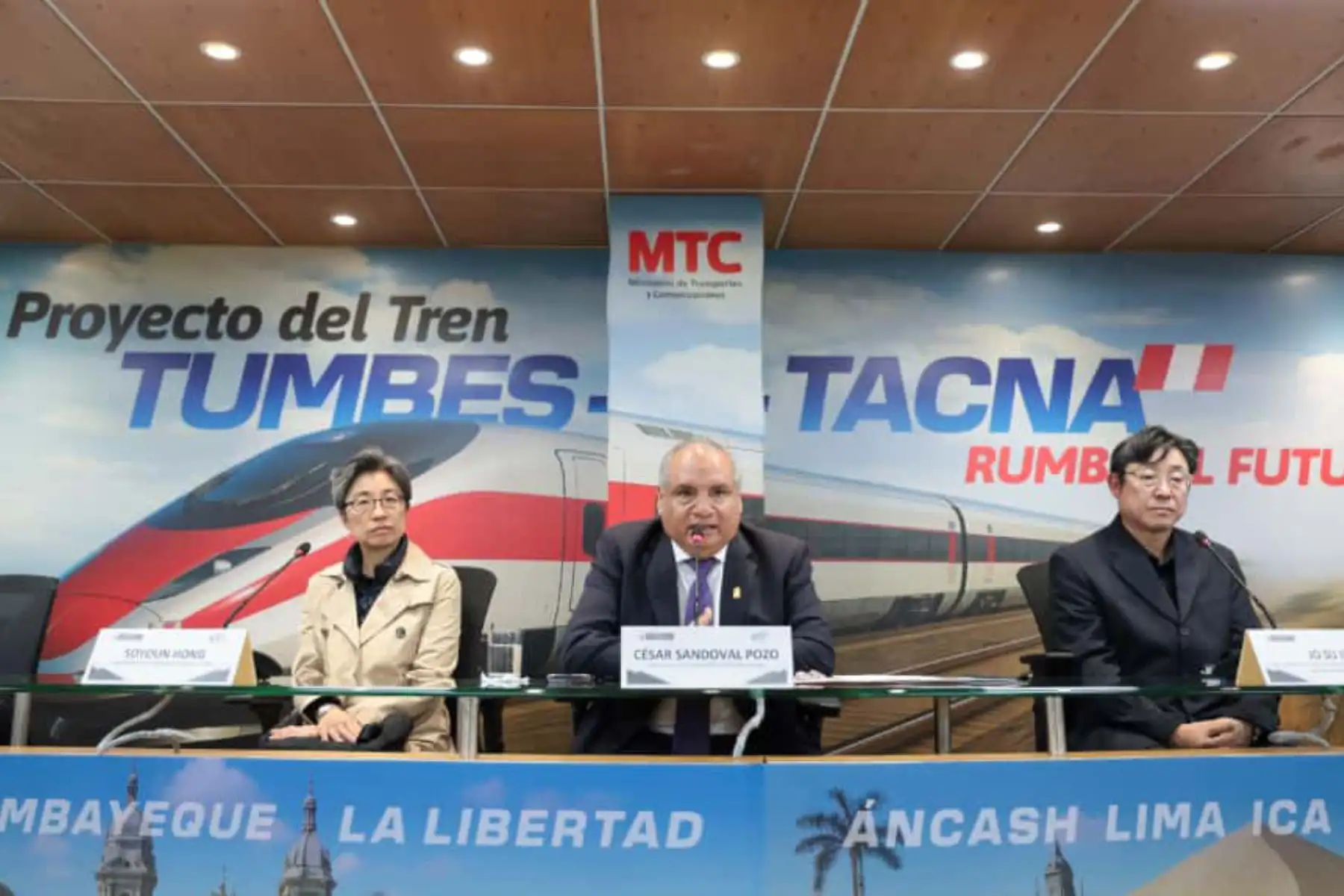03/10/2025 El ministro de Transportes y Comunicaciones, César Sandoval, anunció que la empresa coreana Dohwa Engineering, entregó formalmente al MTC, la carta de intención para encargarse del estudio de prefactibilidad del tren de alta velocidad Tumbes – Tacna.Foto: ANDINA/Héctor Vinces