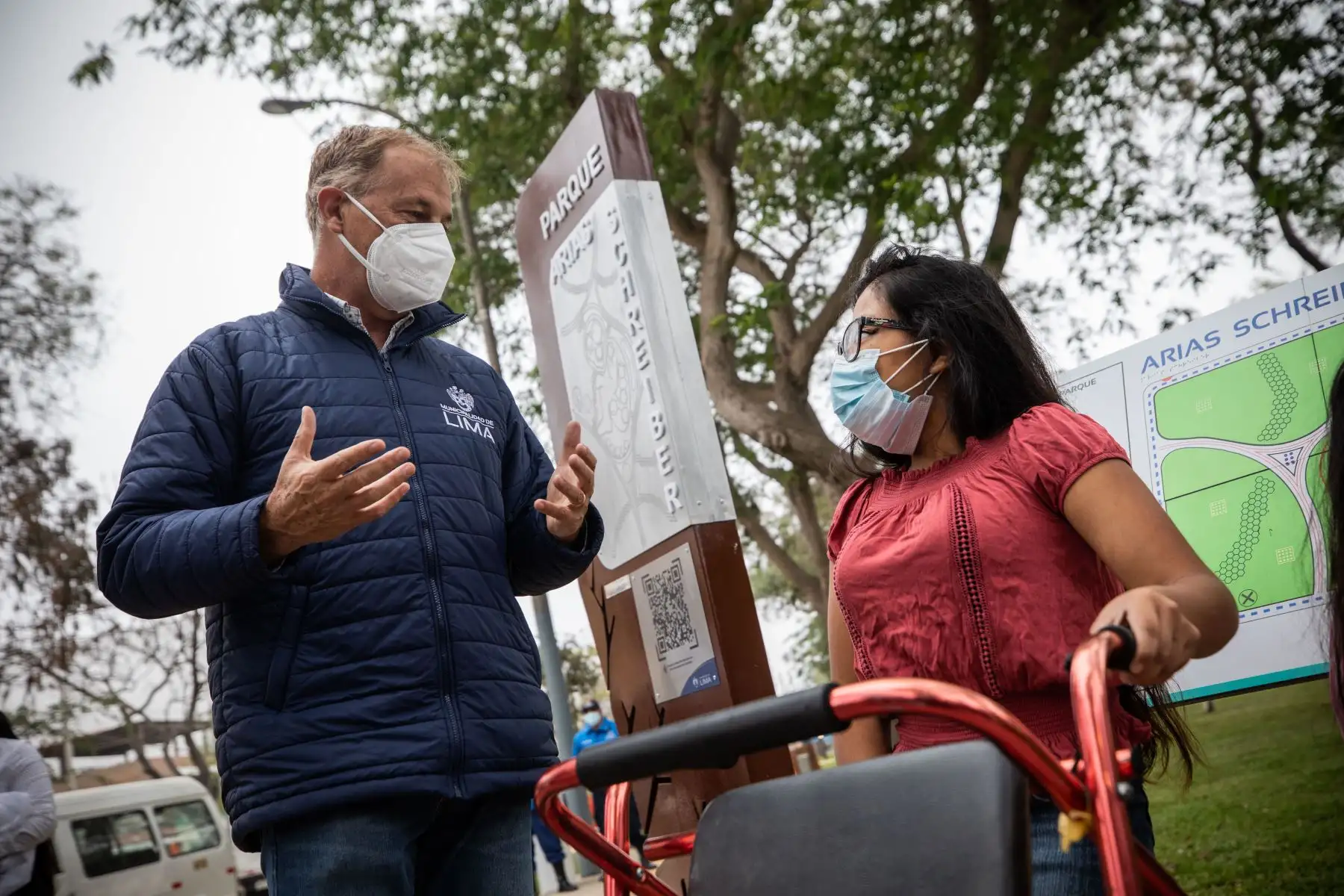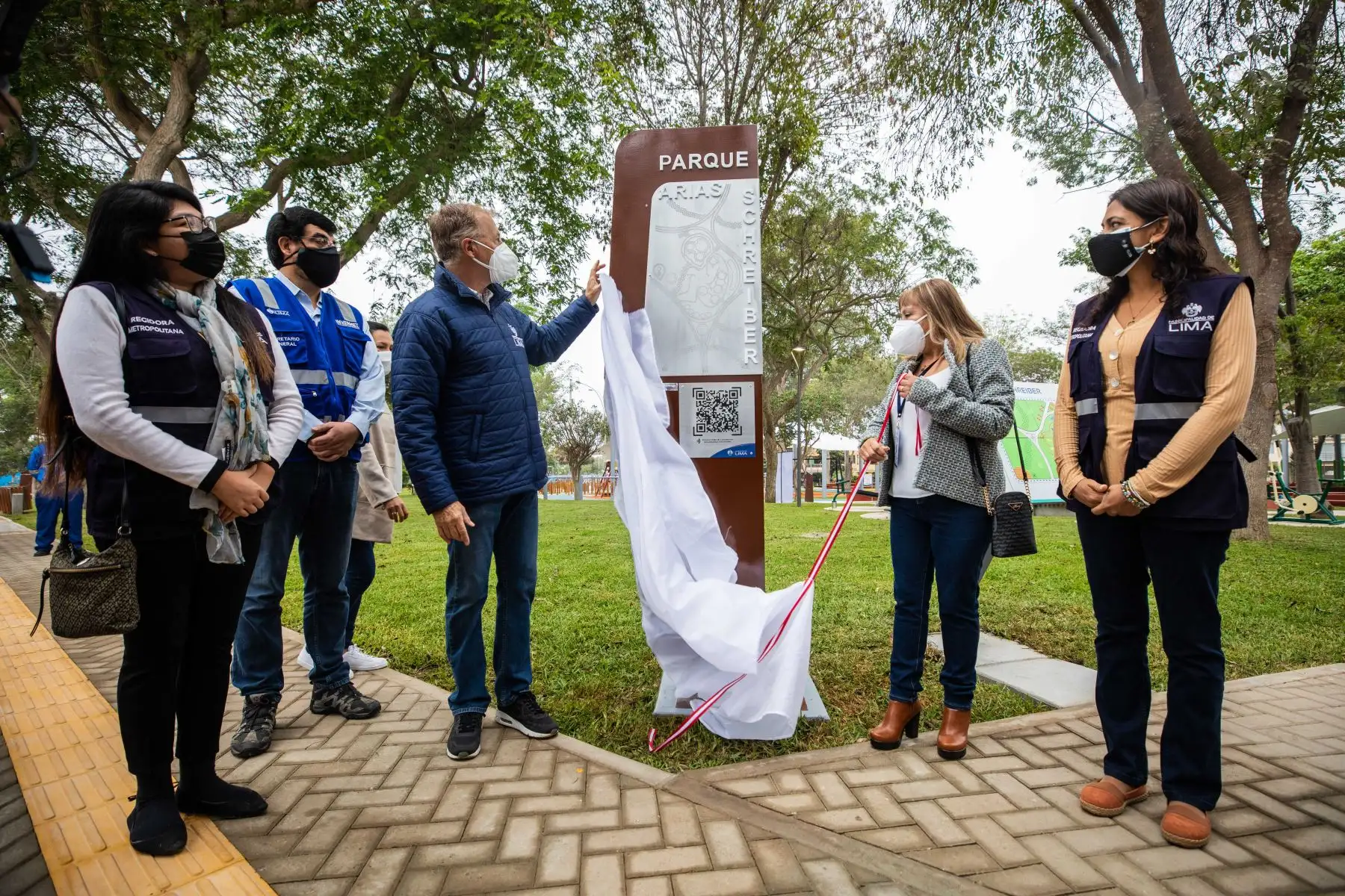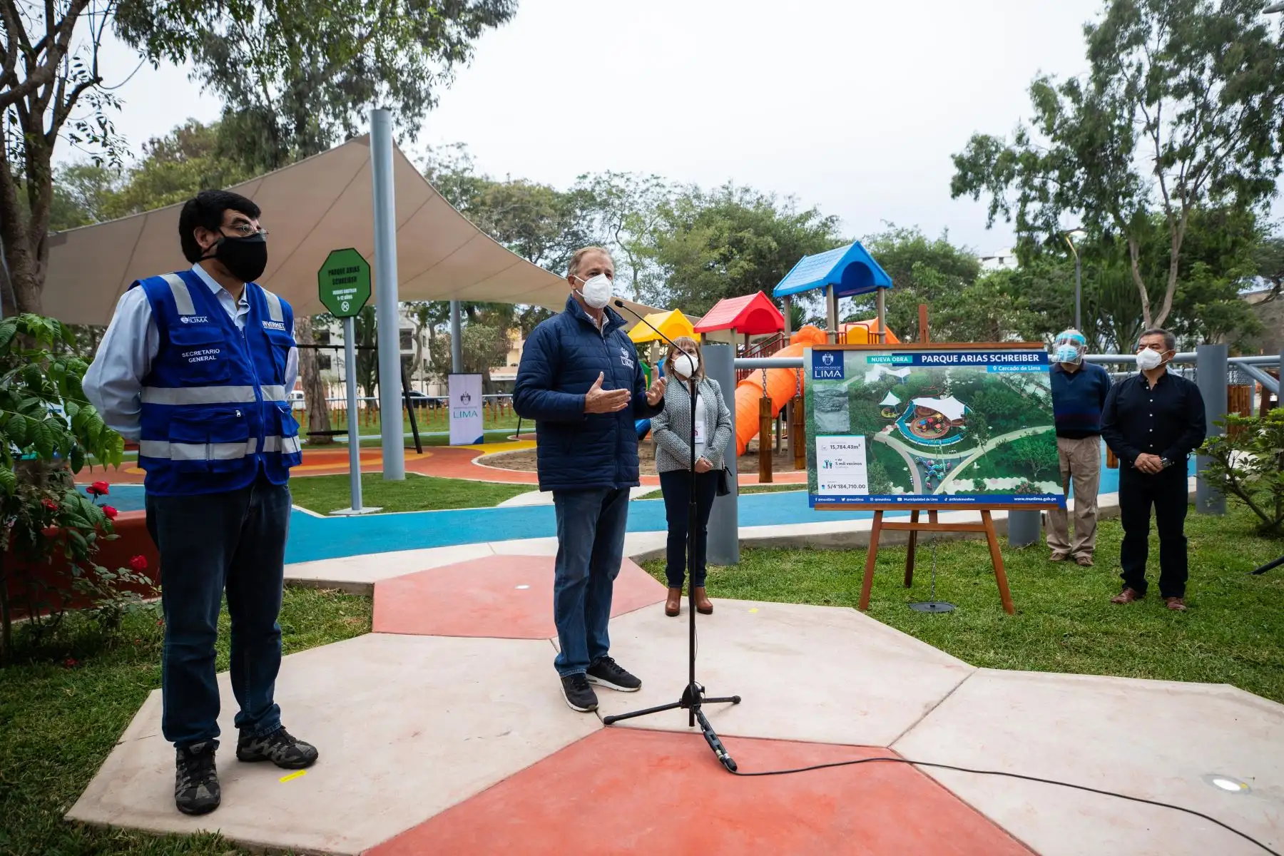 25/05/2021 El alcalde de Lima, Jorge Muñoz, entregó a los vecinos del Cercado de Lima el parque Arias Schreiber, también conocido como el Parque de los Sentidos, un espacio público que busca mejorar la calidad de vida de las personas. Se trata del primer parque totalmente inclusivo, el cual incluye cuentos en braille, juegos y pisos podotáctiles para personas con discapacidad y rampas de acceso para adultos mayores. Foto: ANDINA/Municipalidad de Lima