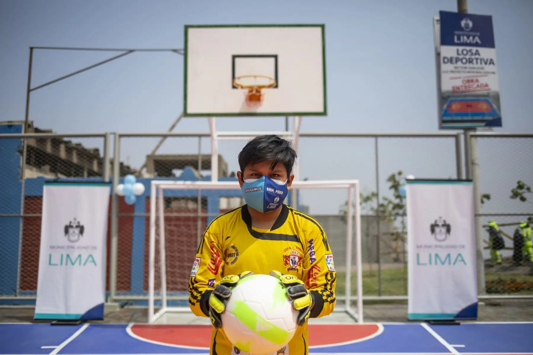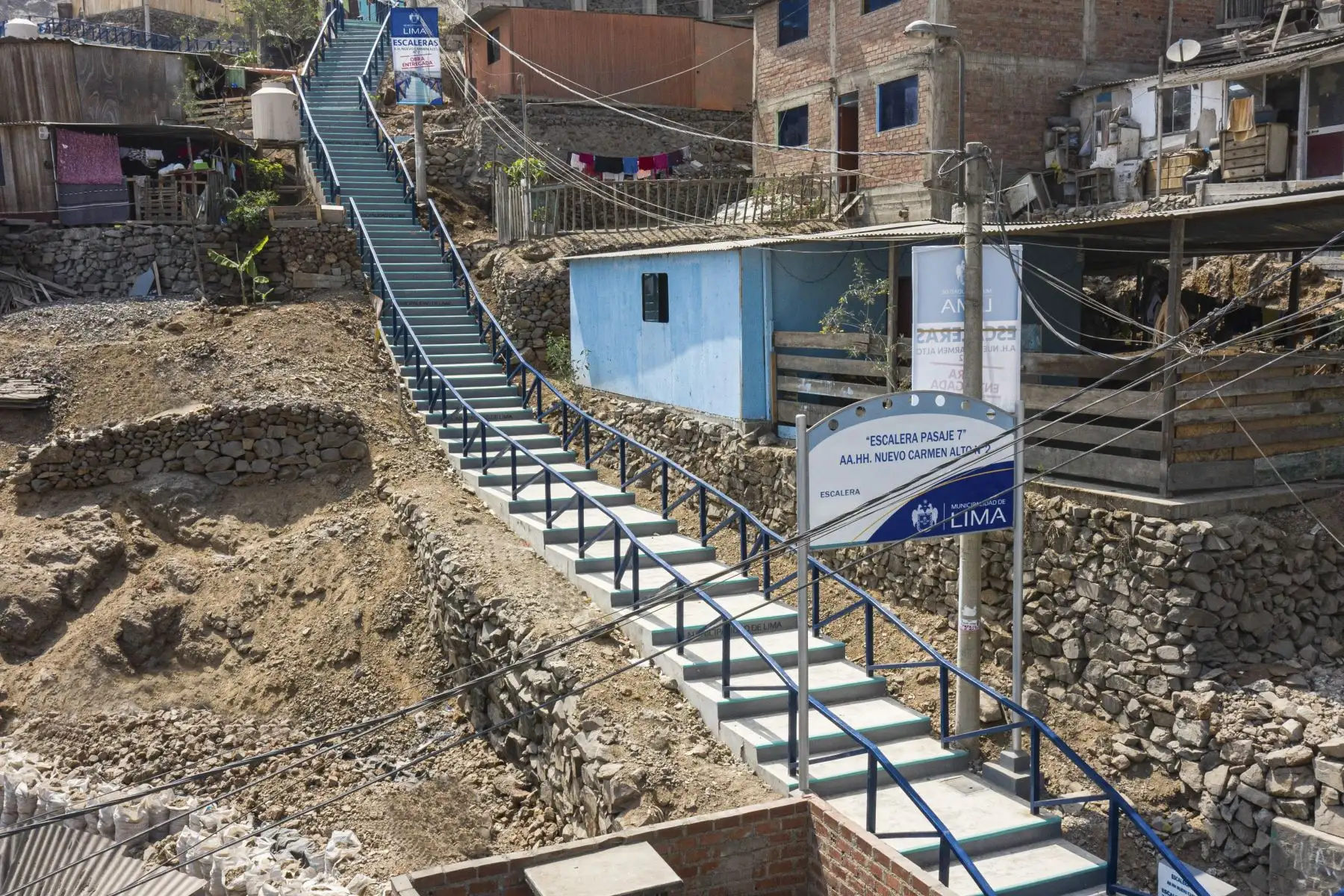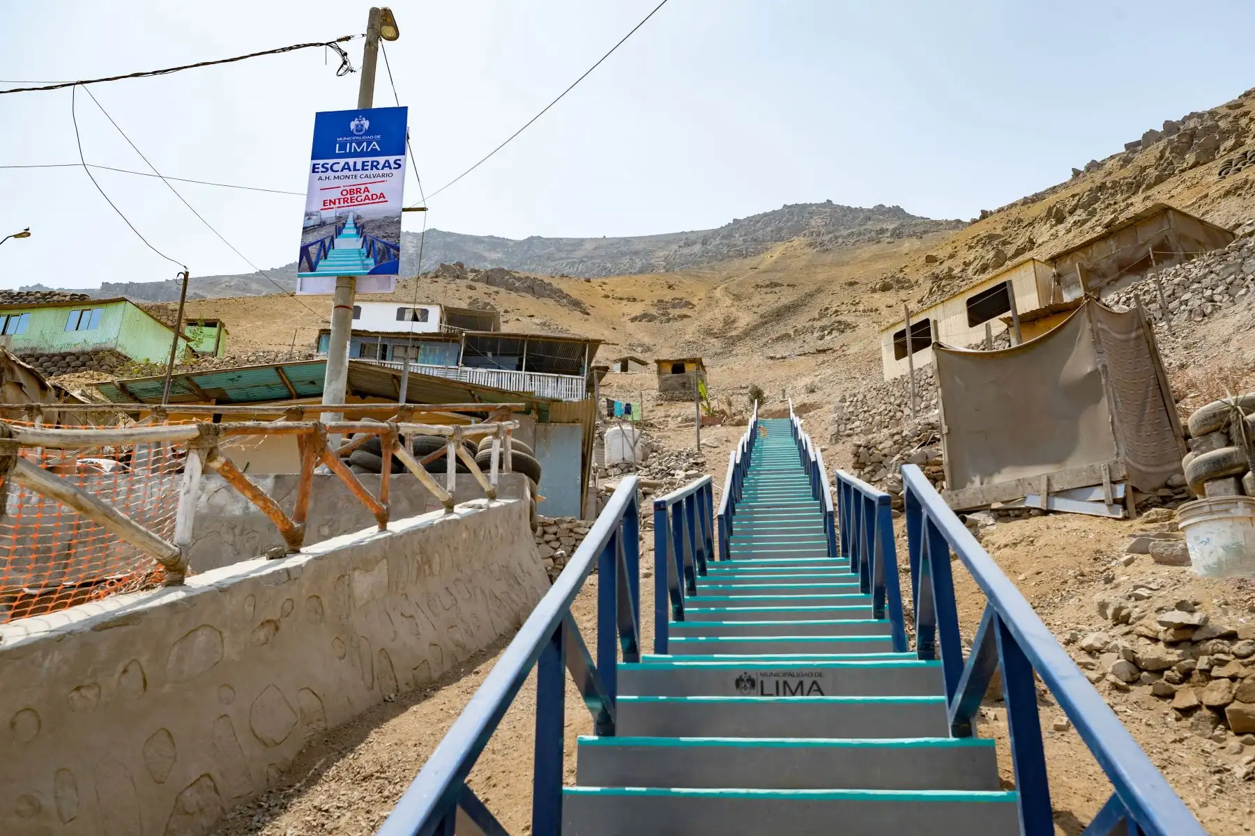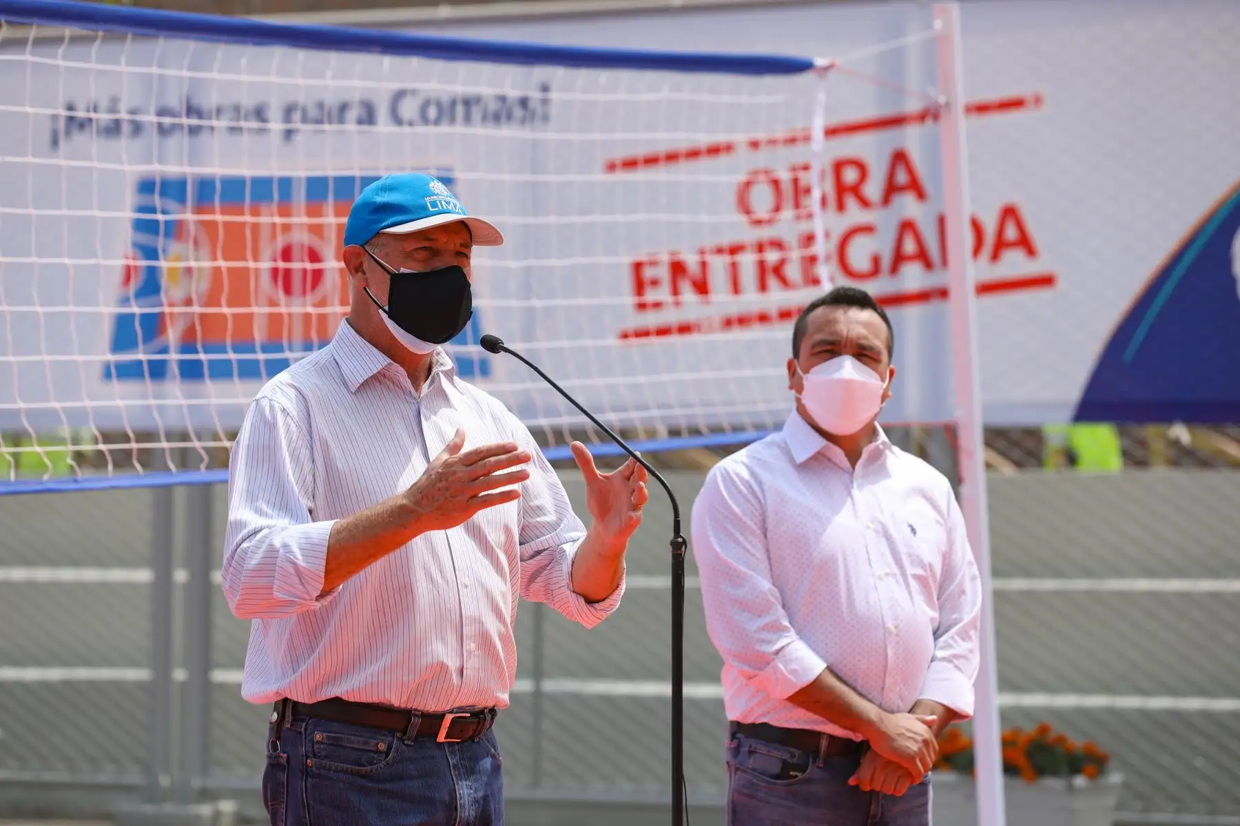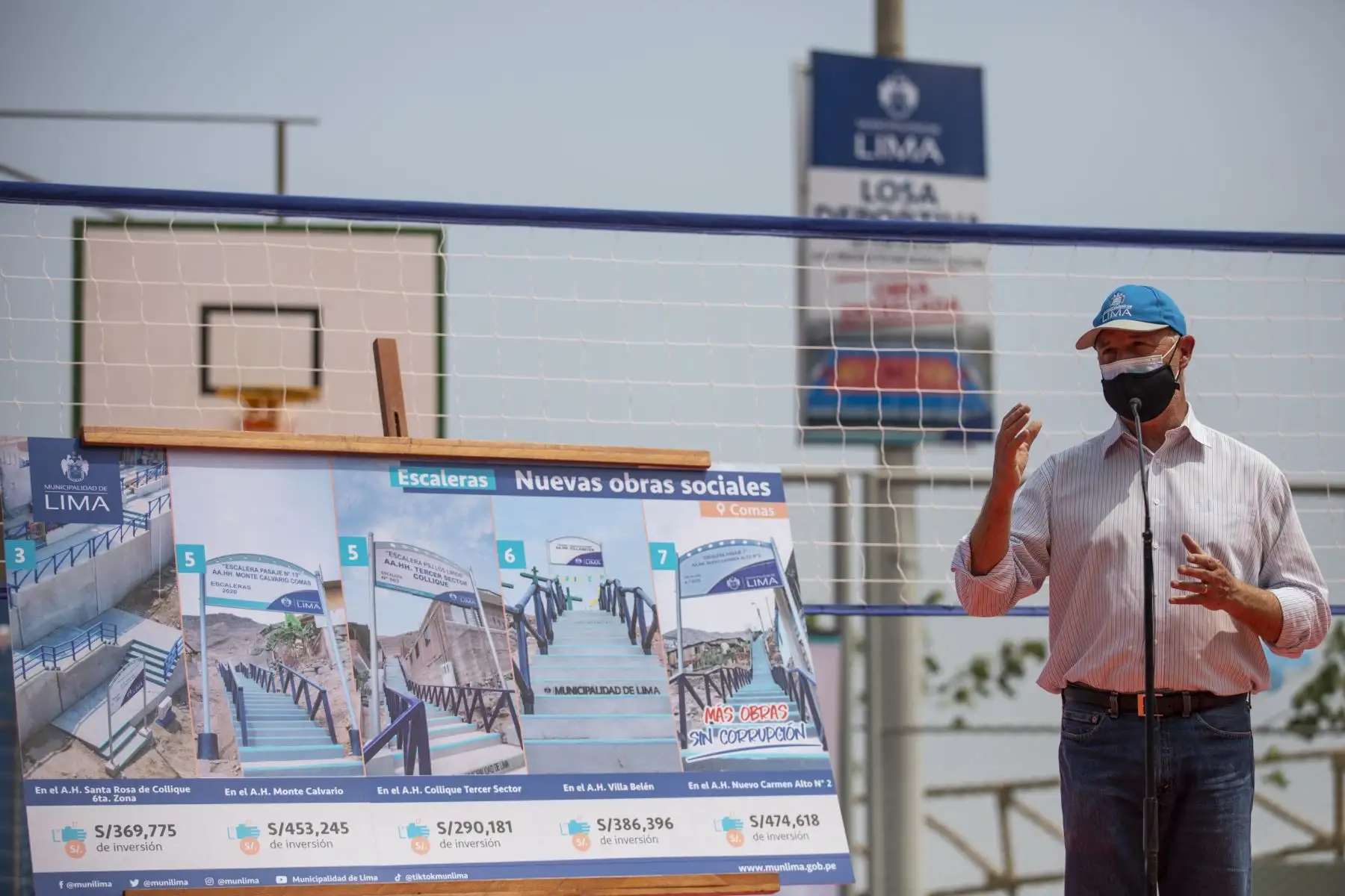 28/04/2021 El alcalde Jorge Muñoz inaugura un conjunto de obras sociales en el distrito de Comas. Entregó escaleras para el acceso peatonal y losa deportiva. Foto: Municipalidad de Lima