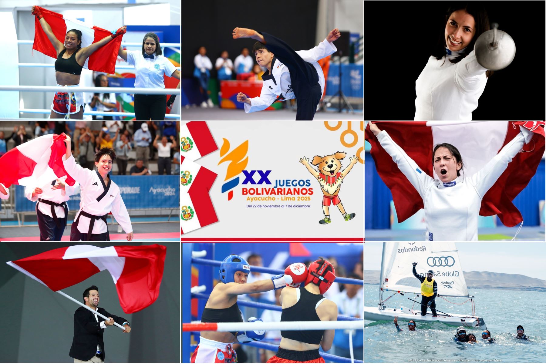 20/11/2025 Los abanderados peruanos para los XX Juegos Bolivarianos Ayacucho y Lima 2025 representan excelencia, perseverancia y profundo orgullo nacional. Stefano Pescheira, medallista olímpico en París, inspira a nuevas generaciones; María Luisa Doig, triple olímpica y referente continental, simboliza disciplina y liderazgo; Mateo Argomedo, figura del taekwondo, y Mavet Yupanqui, campeona de kickboxing, consolidan el talento emergente. Fotos: Composición digital con fotos de archivo