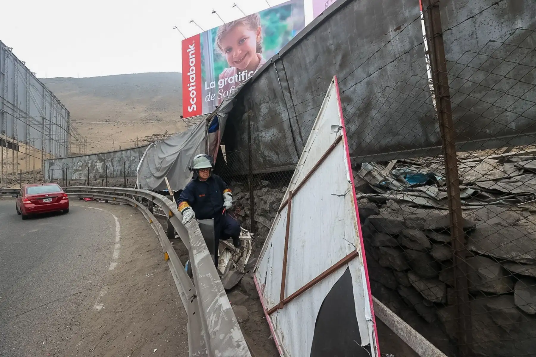 Panel publicitario colapsa en cerro Centinela por fuertes ráfagas de viento en Lima