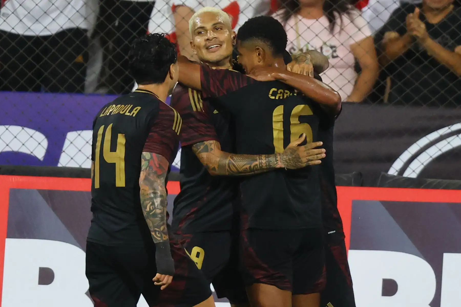22/03/2024 El jugador Gianluca Lapadula de la selección peruana celebra su gol, anotado ante la Selección de Nicaragua, en un partido amistoso que se disputa en el estadio Alejandro Villanueva de La Victoria.