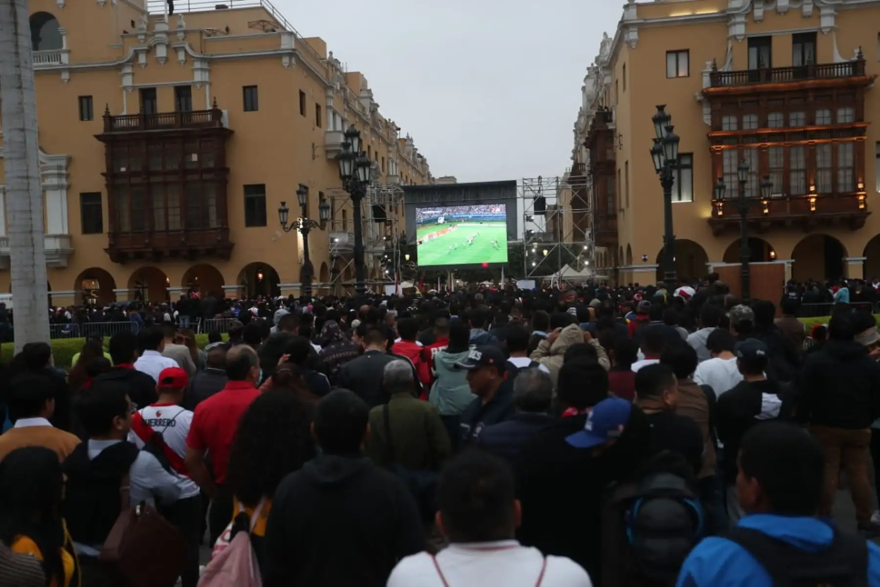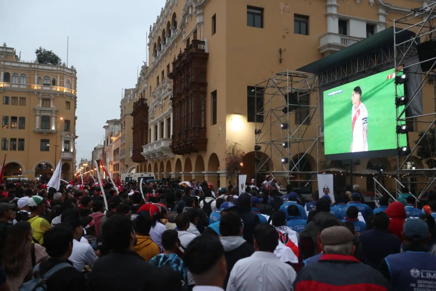 07/09/2023 Los aficionados peruanos esperan el inicio del partido de fútbol de las Eliminatorias Sudamericanas para la Copa Mundial de la FIFA 2026 en Centro de Lima. Foto: ANDINA/Ricardo Cuba