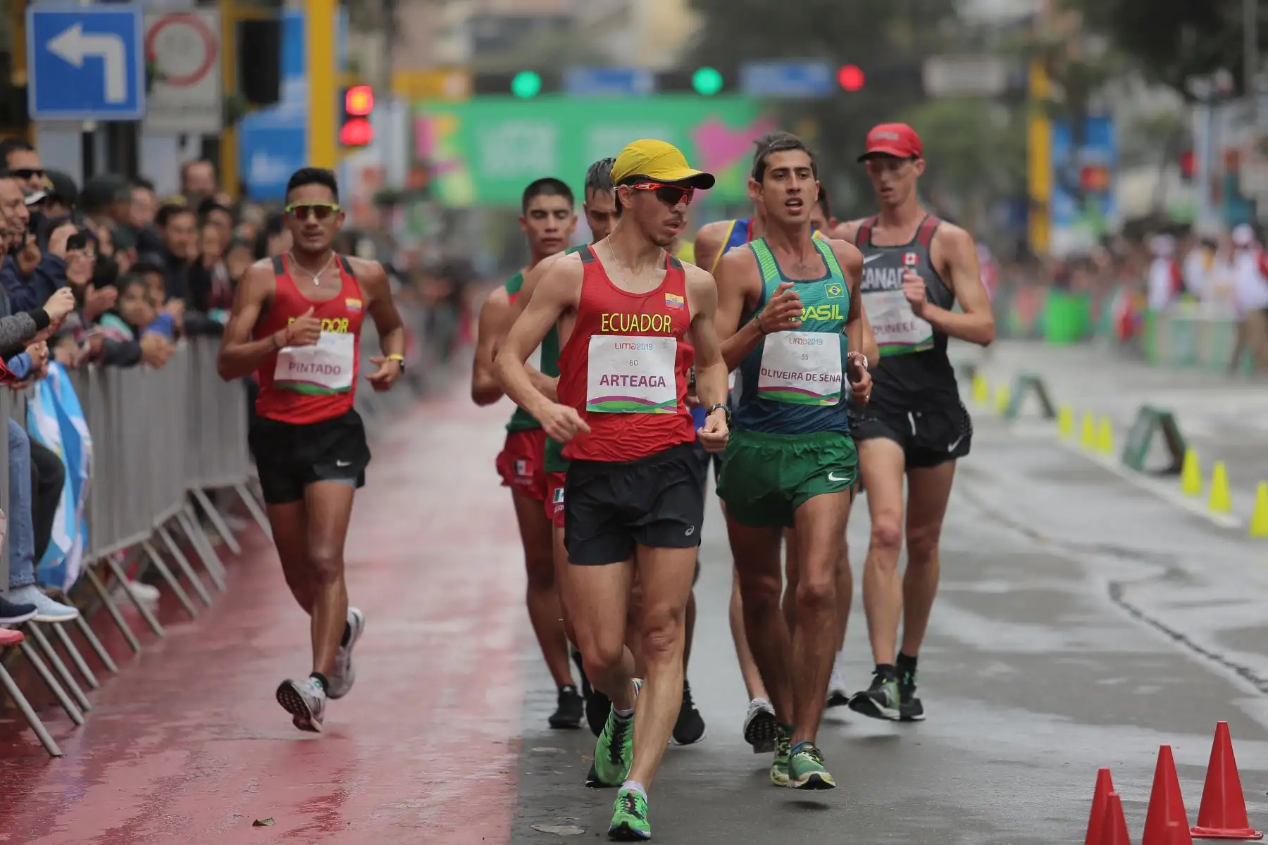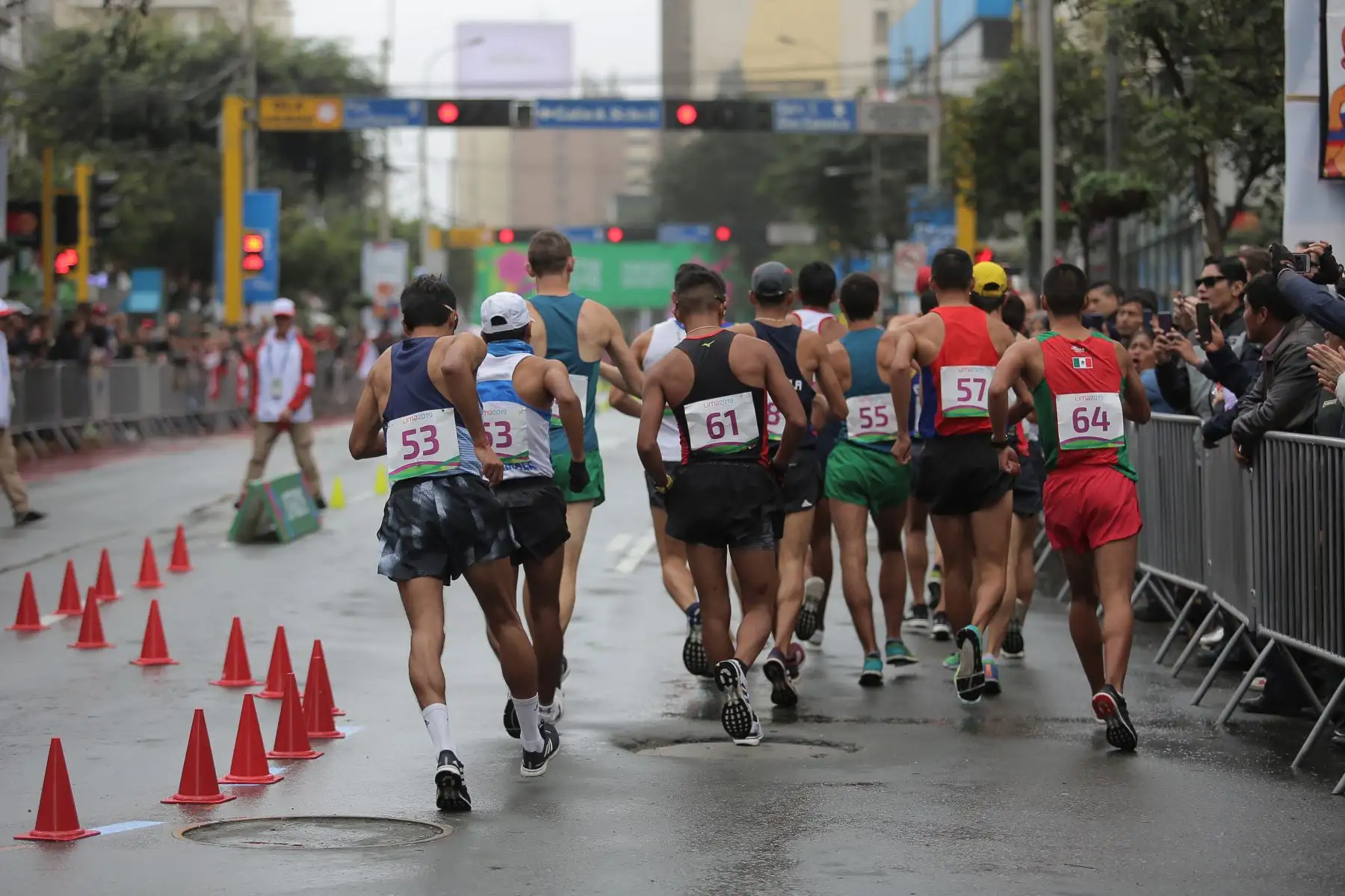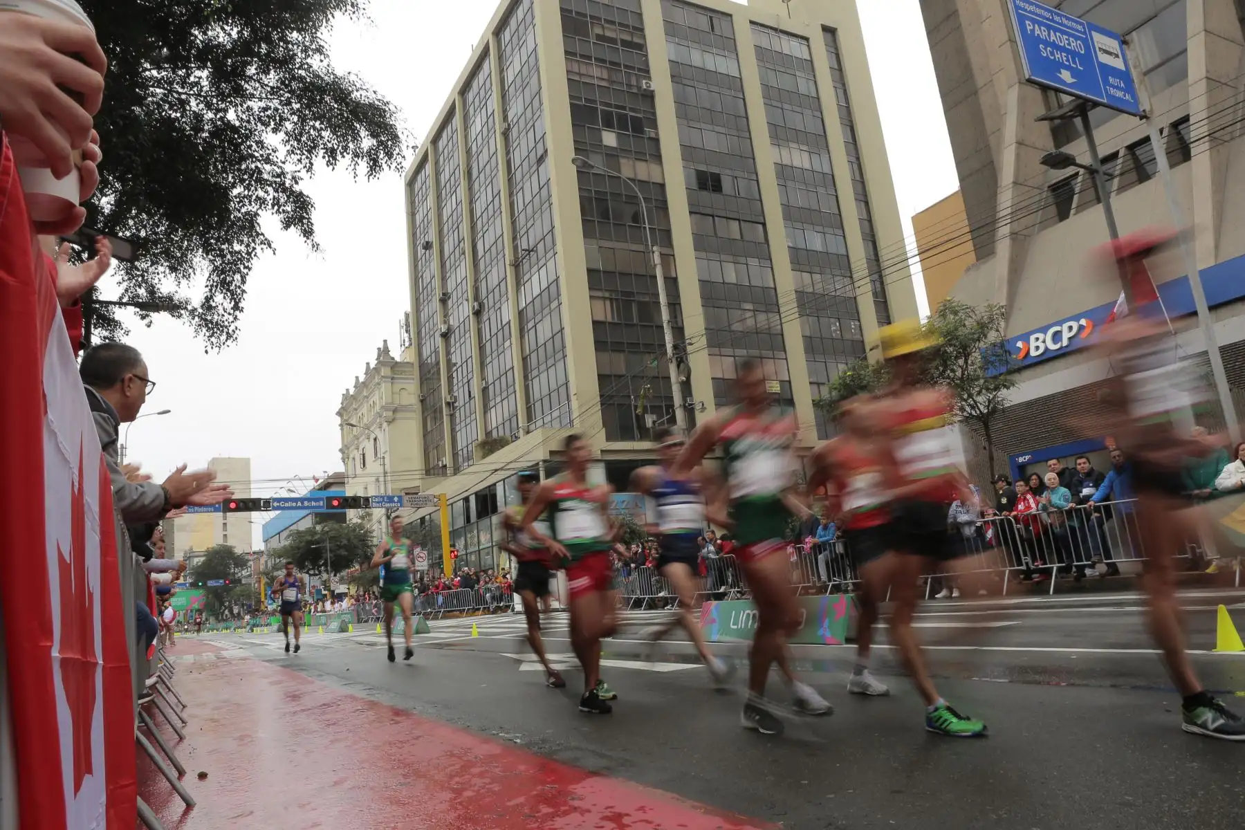 04/08/2019 Atletas compiten en la carrera final de marcha atlética masculina de 20 km durante los Juegos Panamericanos de Lima 2019.