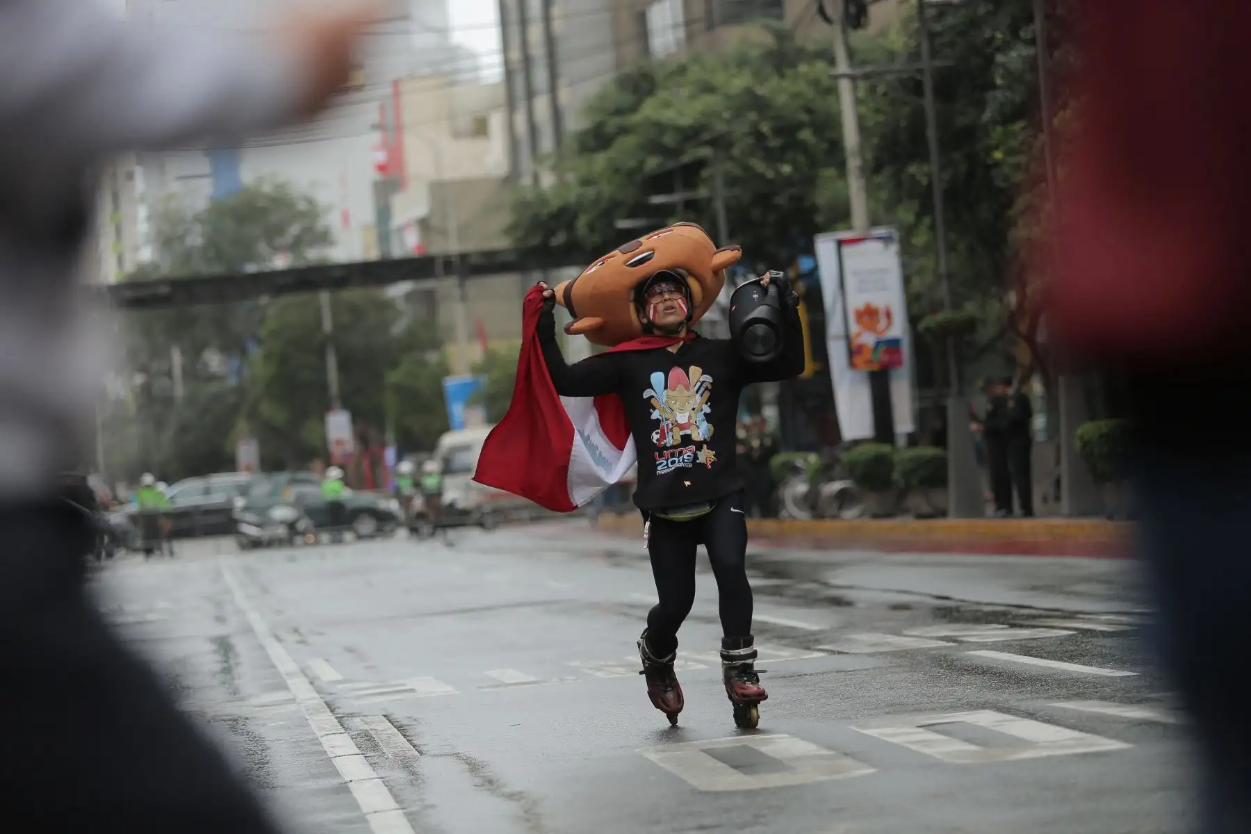 04/08/2019 Peruanos alientan al peruano a José Carlos Mamani en la carrera final de marcha atlética masculina de 20 km durante los Juegos Panamericanos de Lima 2019.
