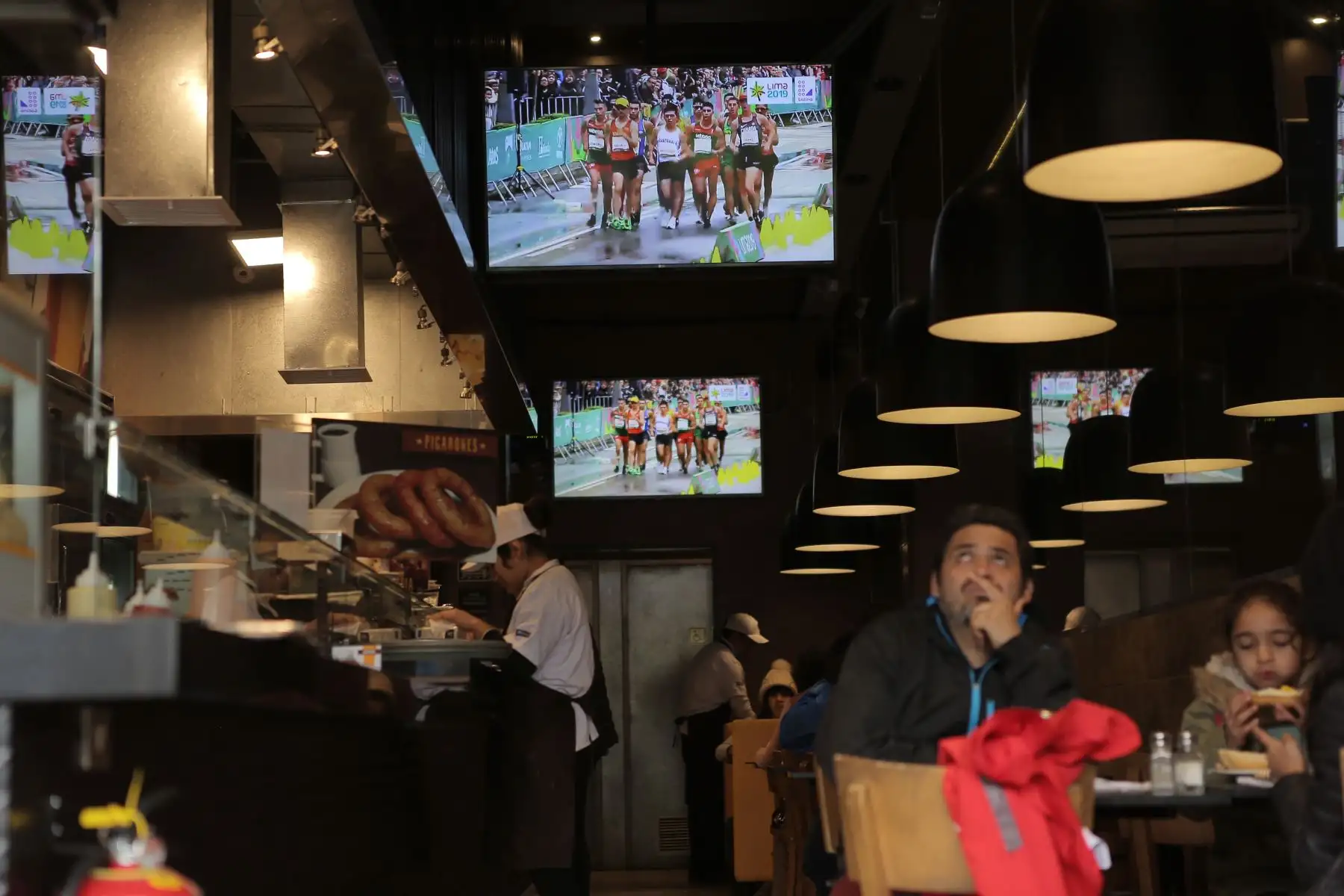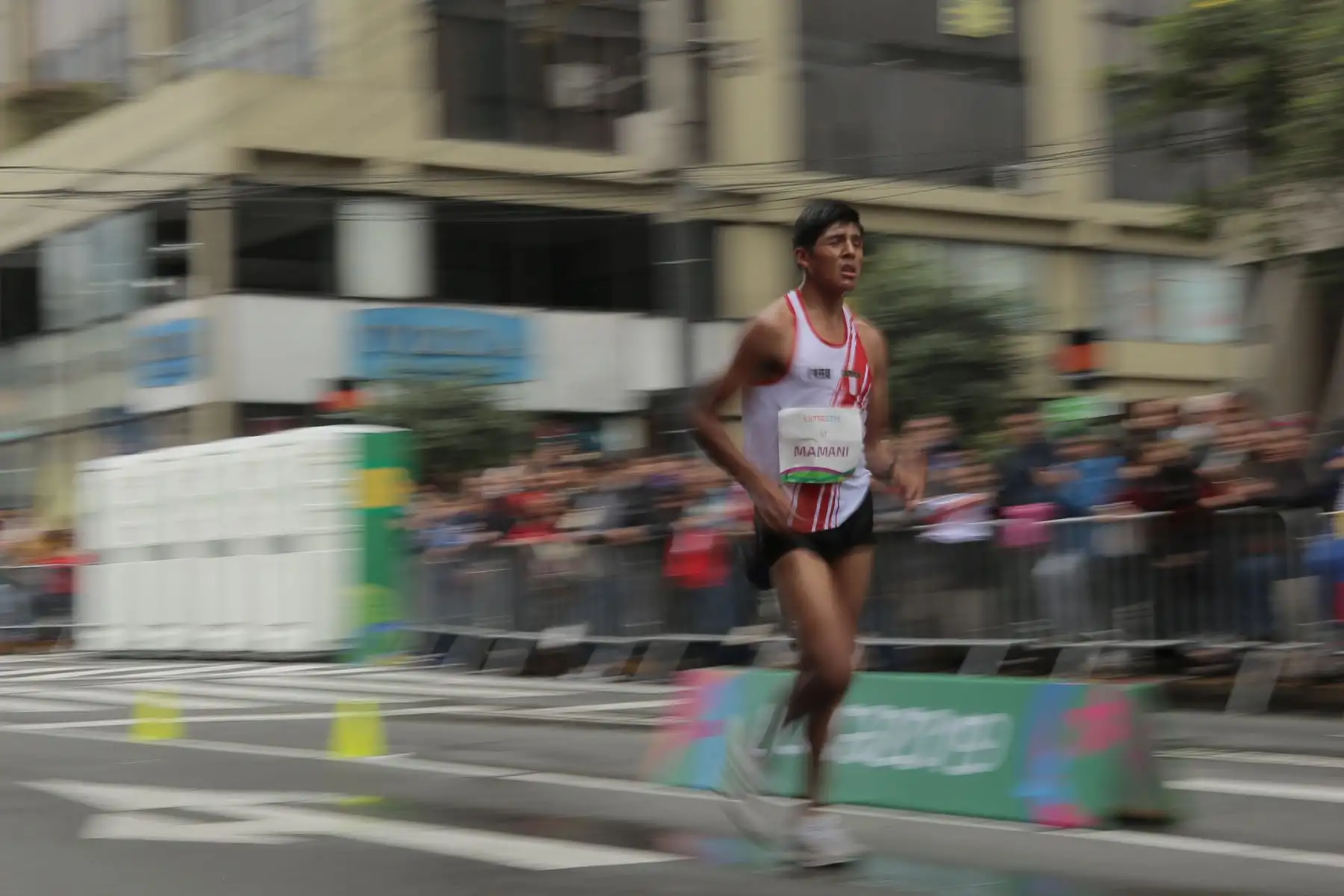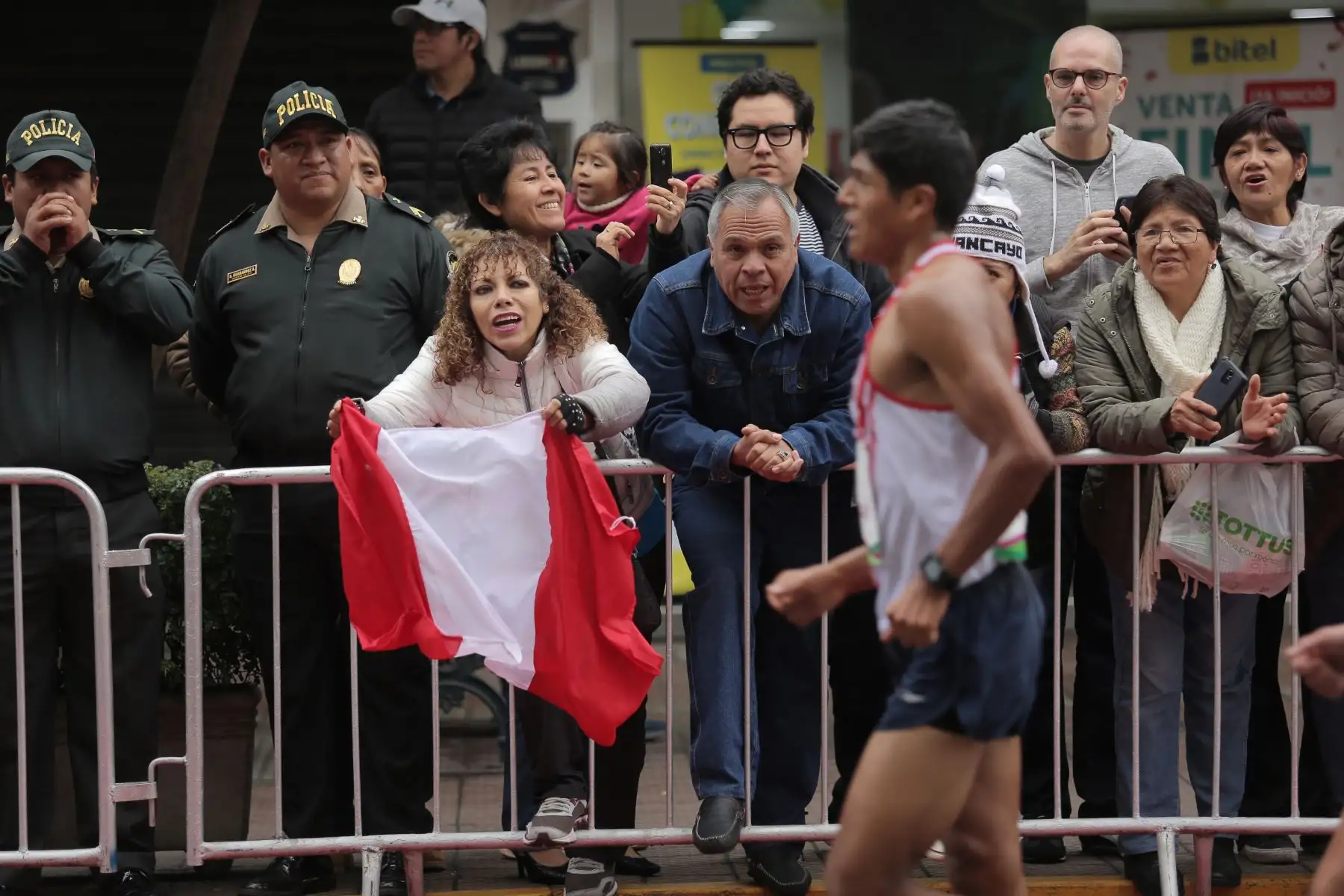 Peruanos alientan a José Carlos Mamani quien compite en la carrera final de marcha atlética masculina