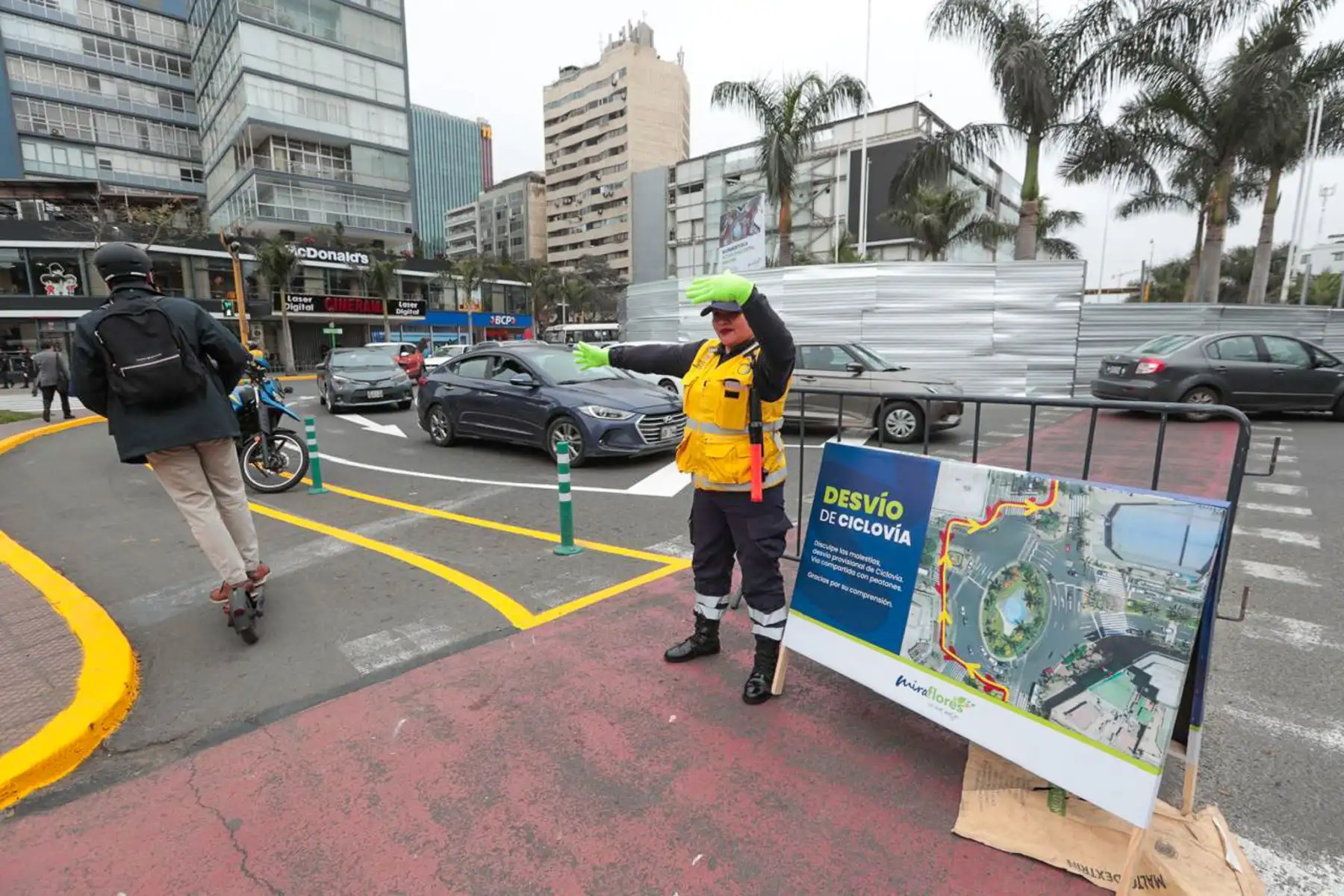 01/10/2025 Los trabajos de modernización en el óvalo central de Miraflores han generado un desvío temporal en la ciclovía. La Municipalidad informó que el desvío es parte de las obras de recuperación del espacio y que se están tomando medidas para mejorar la orientación en los próximos días. Foto: ANDINA/ Verónica Calderón Zuñiga