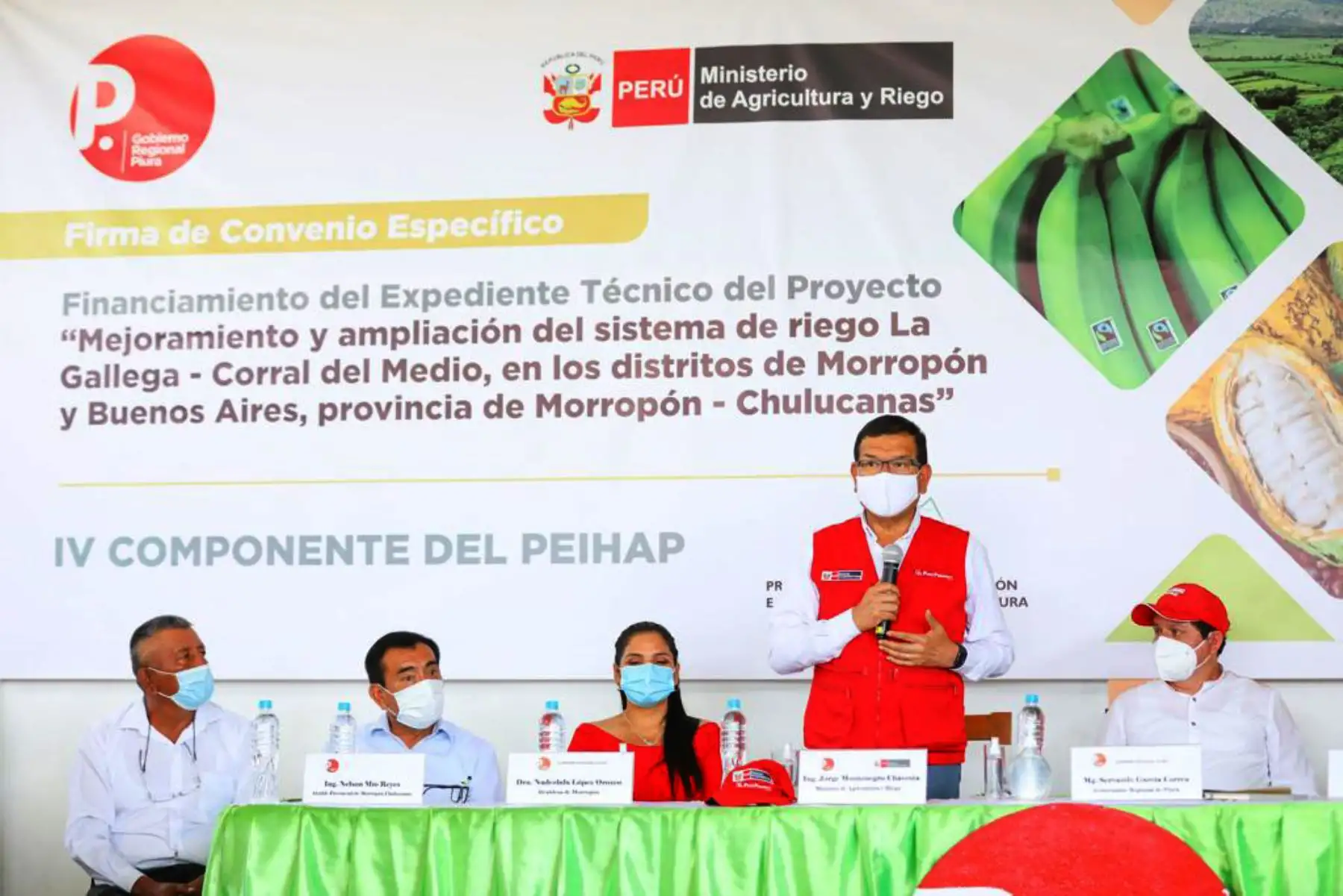 25/10/2020 El ministro de Agricultura Jorge Montenegro firmo convenio con el Gobierno Regional de Piura, para la elaboración del expediente técnico de mejoramiento y ampliación del sistema de riego La Gallega - Corral del Miedo, en los distritos de Morropón y Buenos Aires. Foto: ANDINA/Minagri