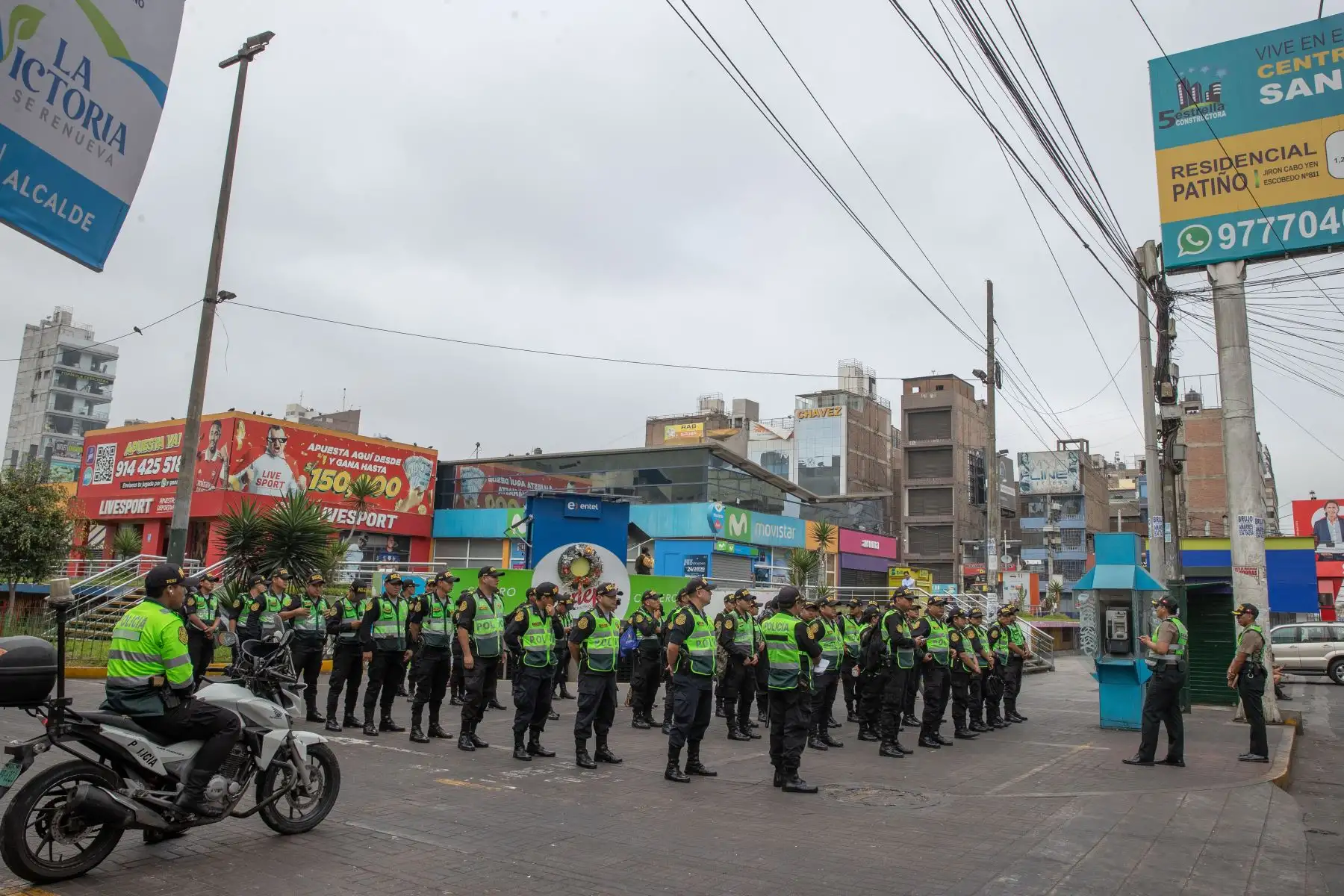 08/01/2024 El Comandante General de la PNP, Jorge Angulo, acompañado por el alcalde de la Victoria, Rubén Cano y el representante de los empresarios de gamarra Diógenes Alva, brindó detalles sobre la "Recuperación de las vías y espacios públicos en el Damero A del emporio de Gamarra” en el distrito de La Victoria. Son 360 efectivos que se desplegarán para garantizar la seguridad. Esta labor cuenta con el apoyo de efectivos municipales de fiscalización y del cuerpo de serenazgo, reforzando la presencia de la autoridad y la vigilancia en la zona.