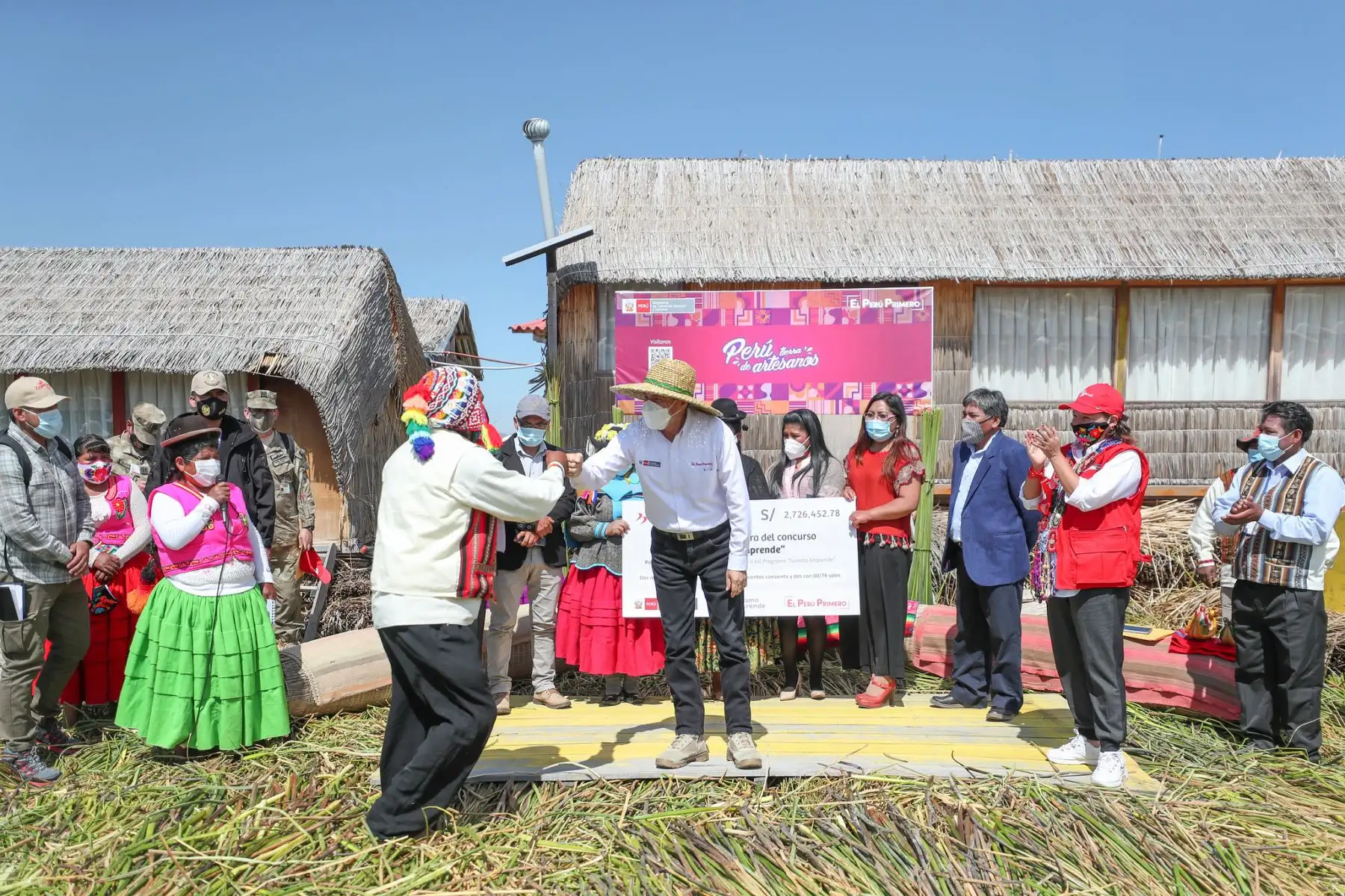 03/11/2020 El premier Walter Martos y la titular del Mincetur visitan la región Puno para participar en la entrega de cheques a artesanos ganadores de Turismo Emprende. Además, inaugurarán obras de mejoramiento del distrito de Atuncolla, que permitirán potenciar los servicios turísticos en la región. Foto: PCM