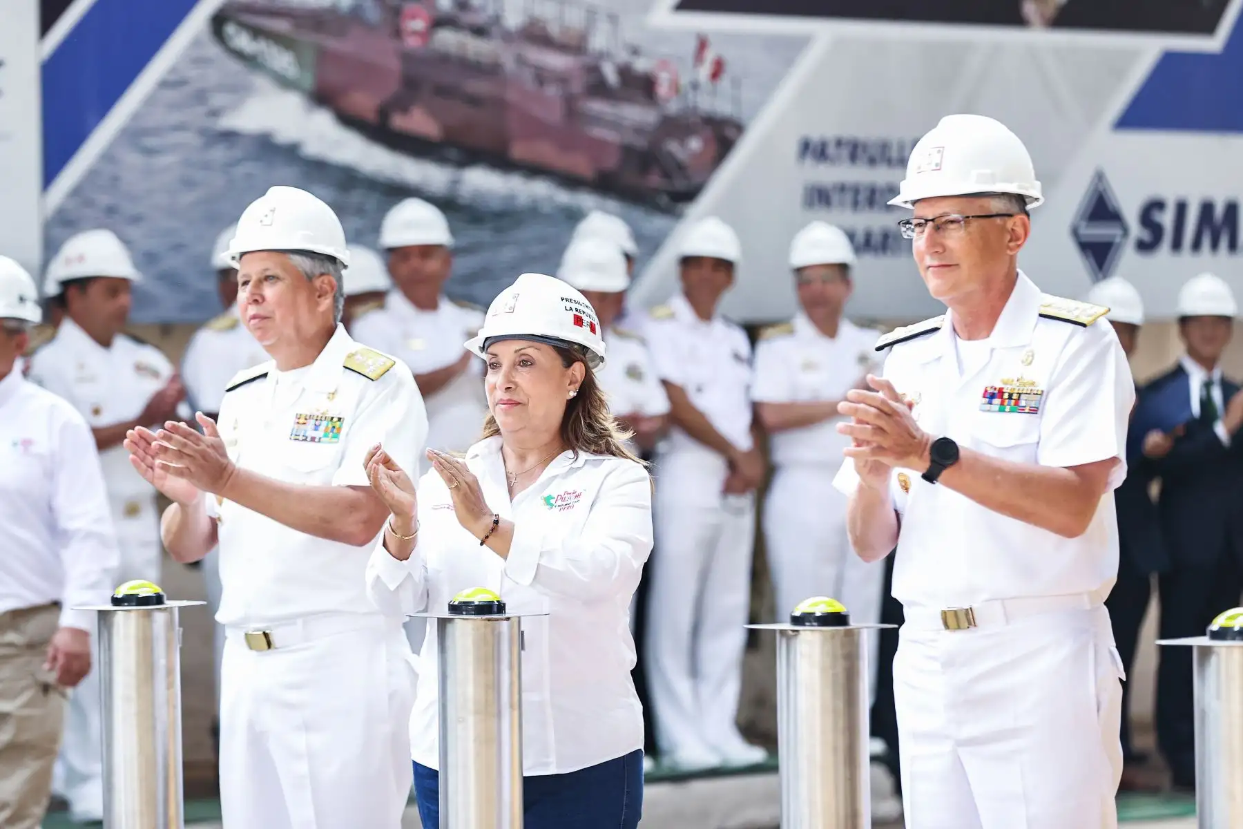 10/01/2025 La señora presidenta de la república, Dina Ercilia Boluarte Zegarra, participó en la Ceremonia de Corte de la Primera Plancha y Puesta de Quilla en Unidades Navales. Foto. ANDINA/ Prensa Presidencia