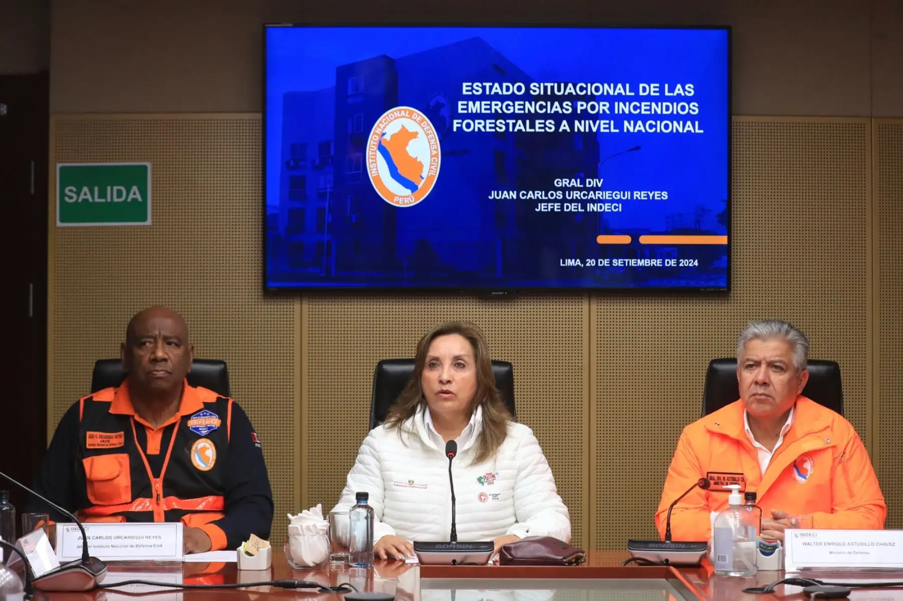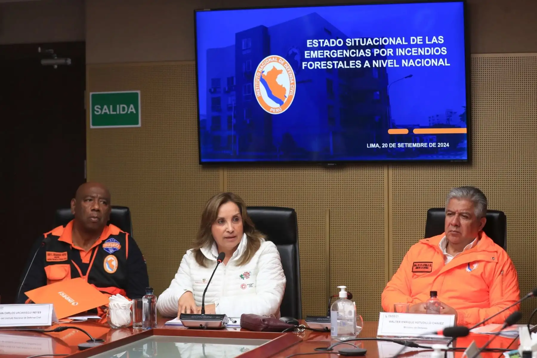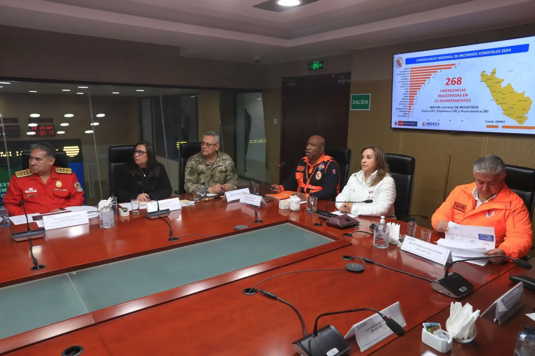 20/09/2024 Desde el COEN, la presidenta de la república, Dina Boluarte, dirige las acciones para el control de los incendios forestales que vienen afectando a diversas regiones del país. Foto: ANDINA/ Prensa Presidencia