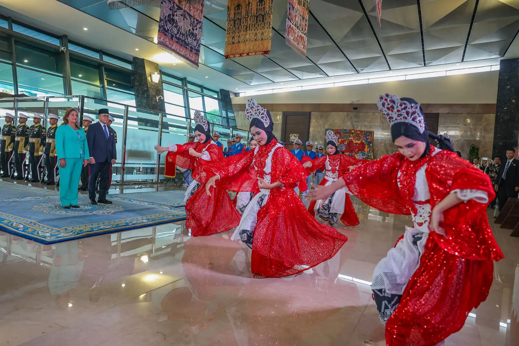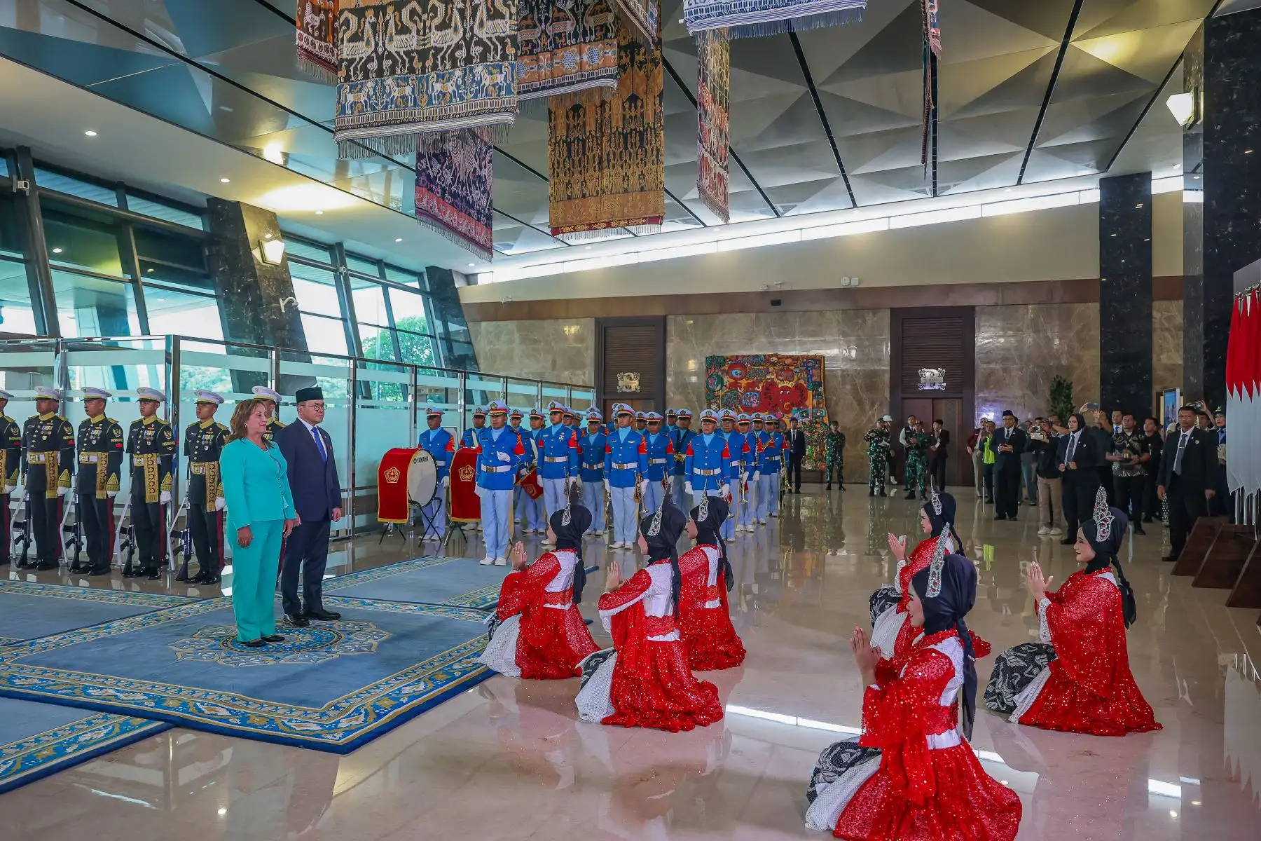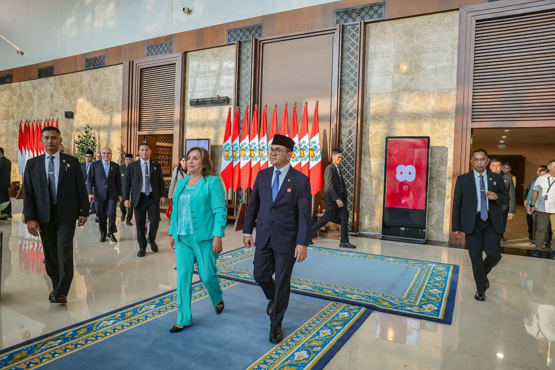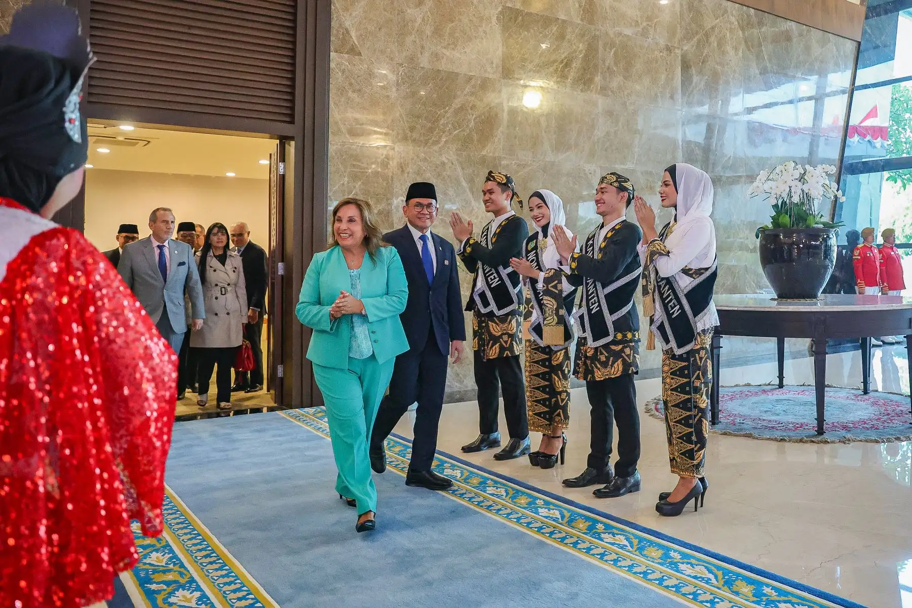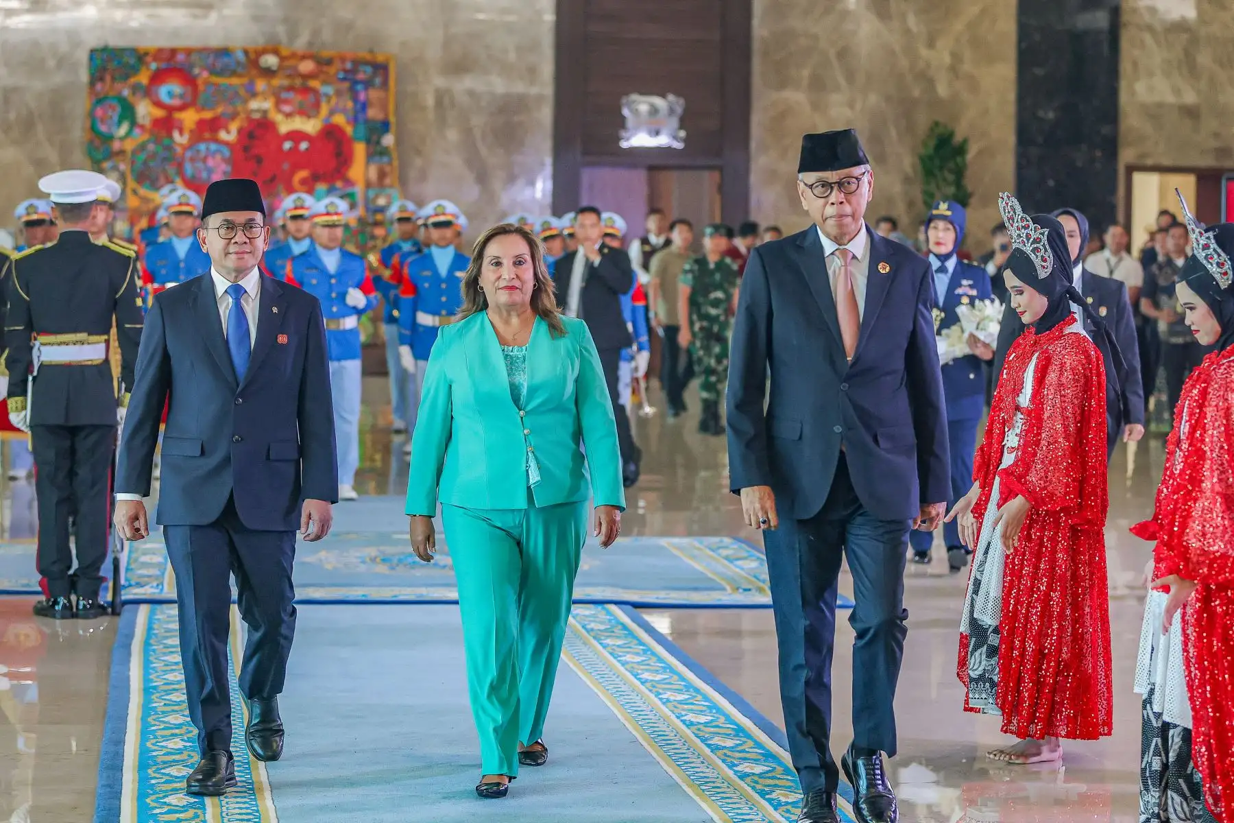 Presidenta Dina Boluarte es recibida con honores a su arribo a Indonesia