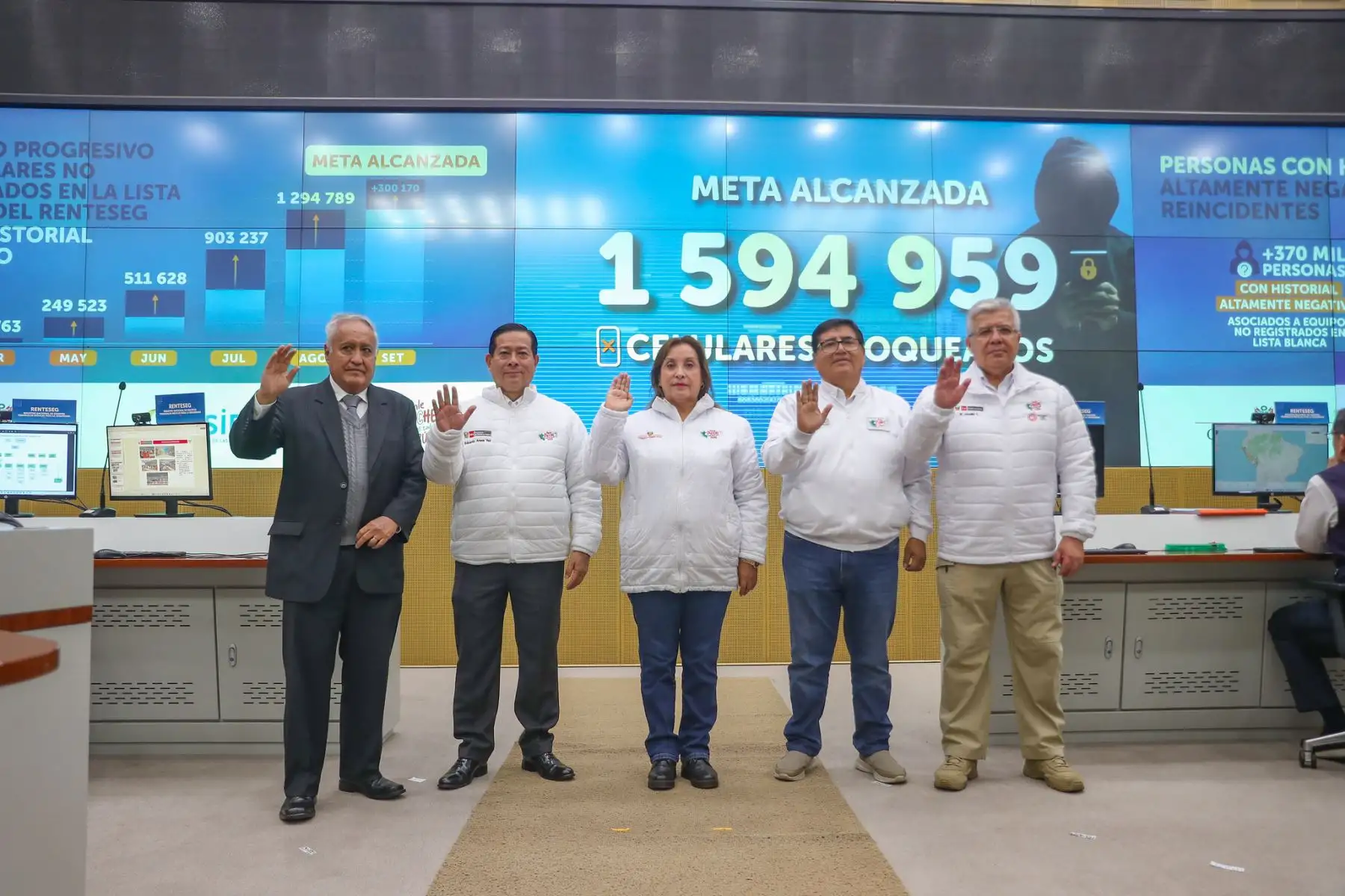 06/10/2025 La presidenta Dina Boluarte participa en el bloqueo de más de 1.5 millones de equipos móviles no registrados en la lista blanca del Registro Nacional de Equipos Terminales Móviles para la Seguridad (Renteseg) y que cuentan con historial negativo.